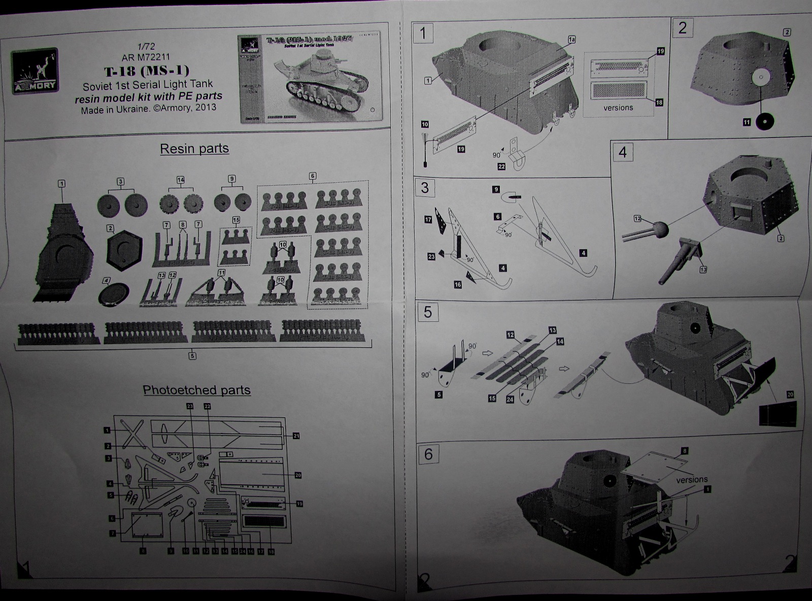 Модель упакована в стандартную для смолы небольшую коробочку. Загрузка - вертикальная. Внутри - пакетик с деталями, платой травления и инструкция.