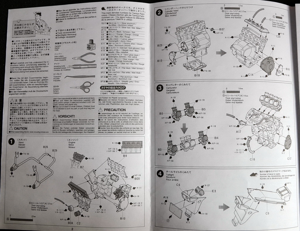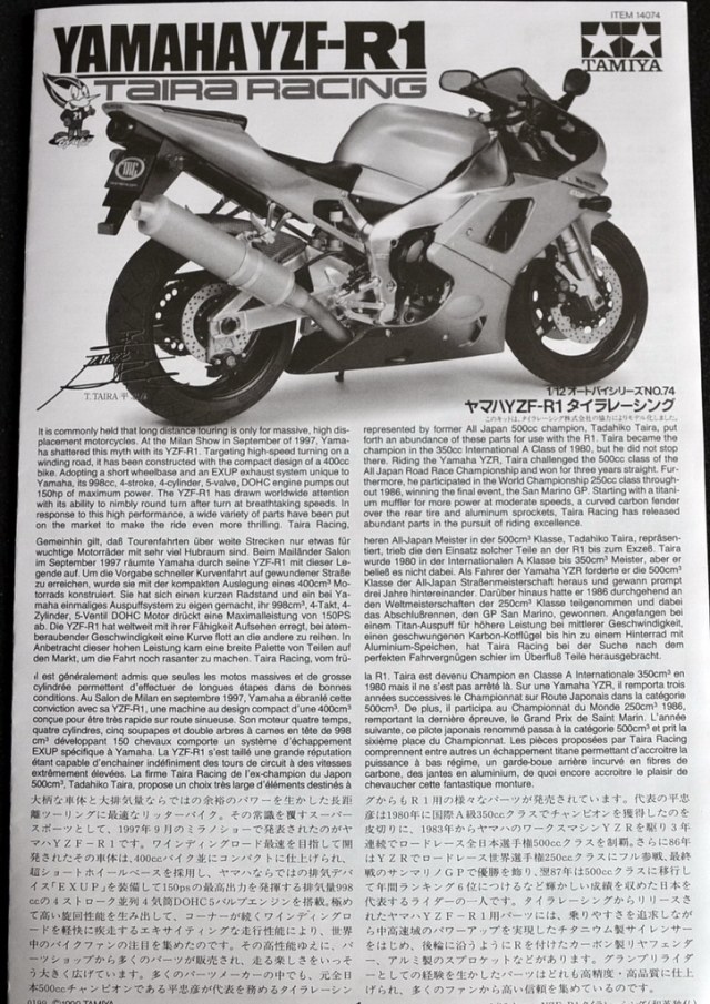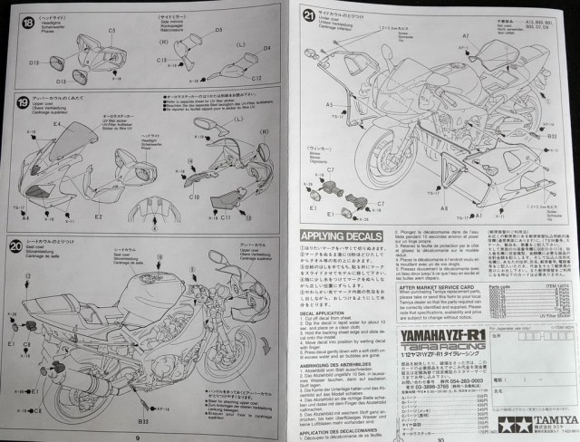 Инструкция выполнена в черно-белом цвете, как всегда для Тамии последовательно и понятно. На отдельном листе представлена схема нанесения декалей.