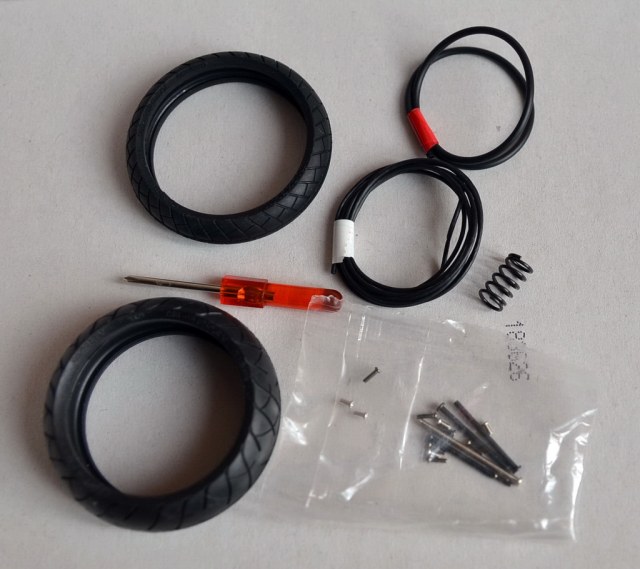 А где фото упомянутых в описании "2 колеса, 2 шланга разного диаметра, крепеж, пружина и отвертка" ?