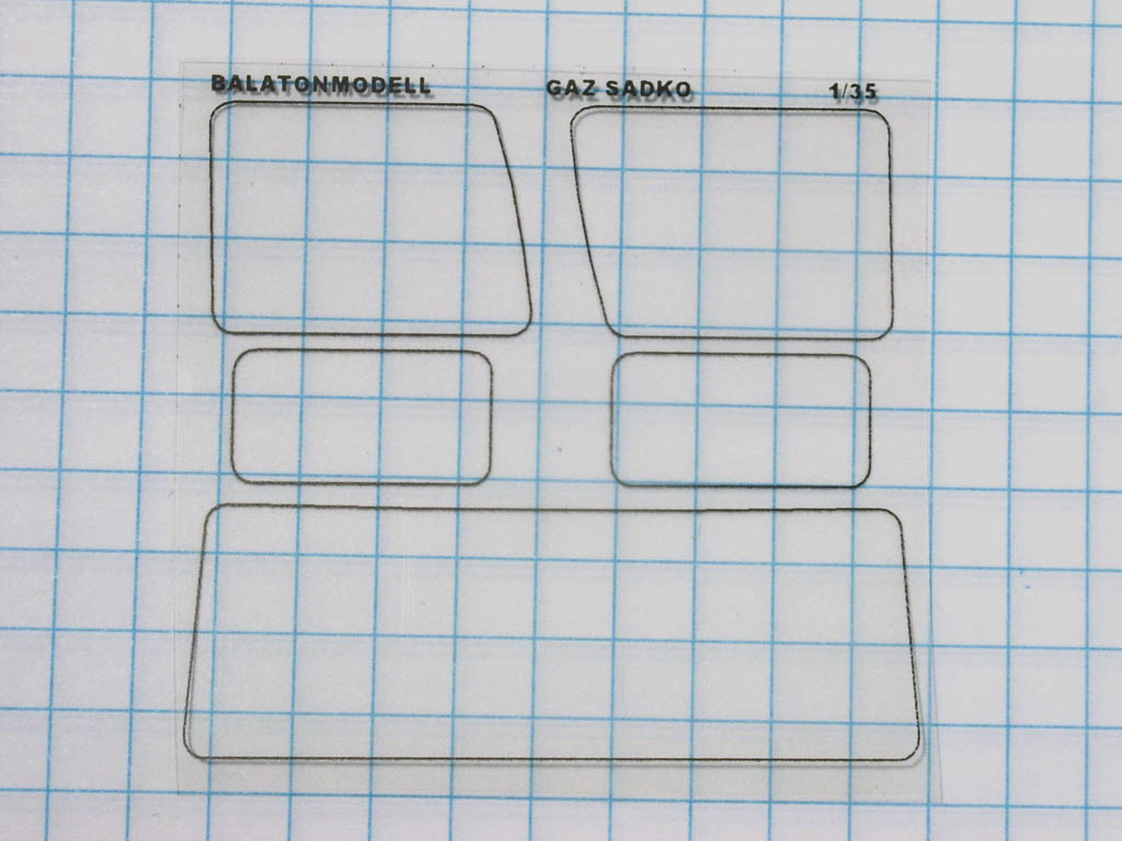 Остекление дано в виде тонкой пленки. Стекла фар - из прозрачной смолы. Их сразу заменю на "Эльфовские", т.к. эти какие-то мутные.