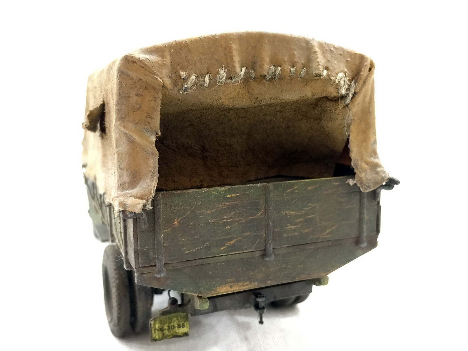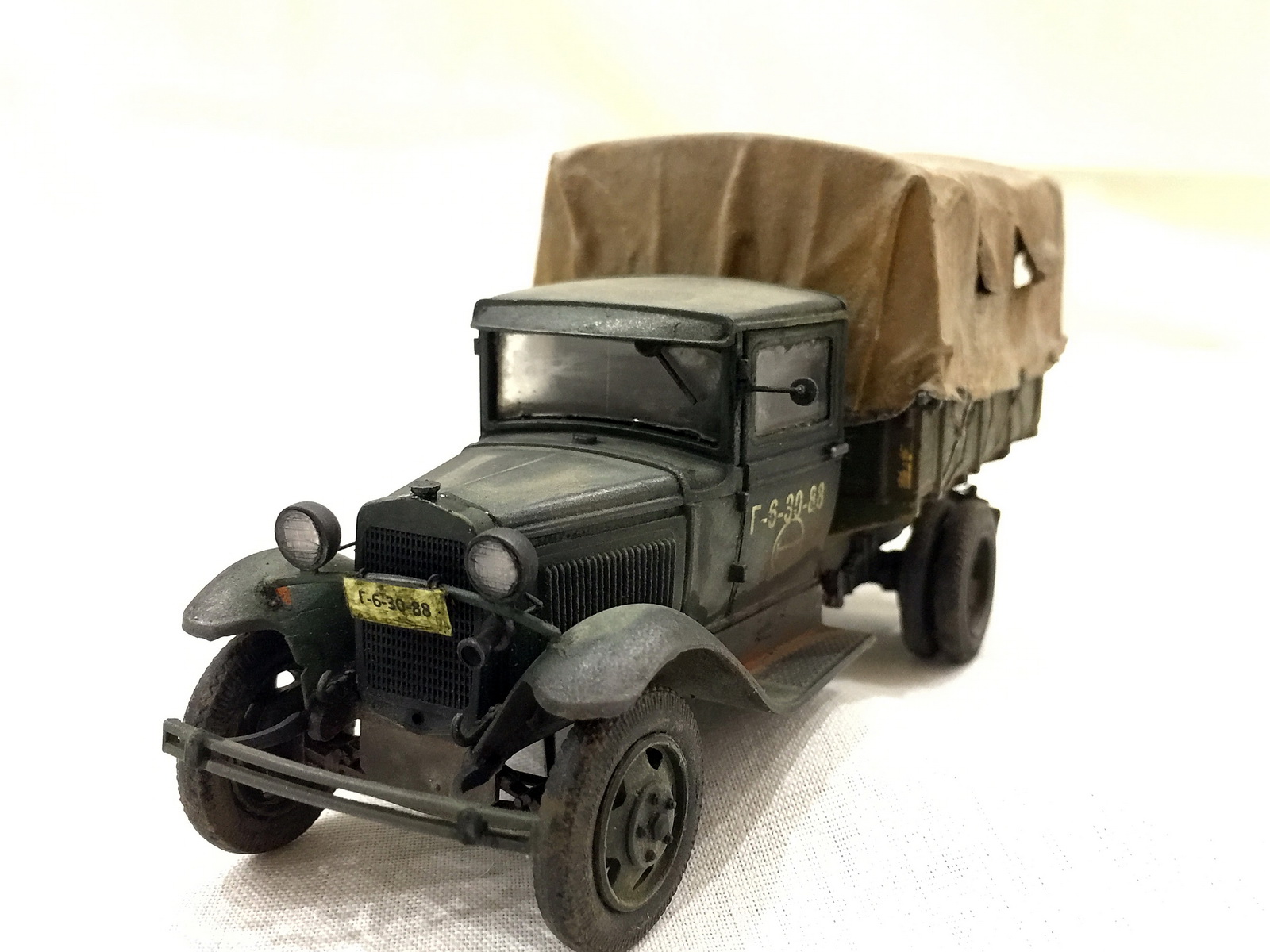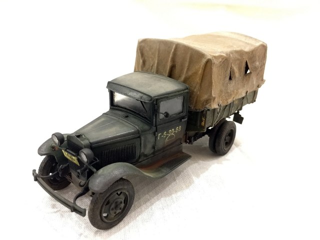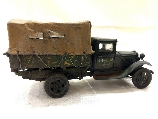 Модель от Звезды. Нареканий особых не вызвала. Красил красками от А-модель, смывал тоже ей же. От себя был брезент ,хомуты крепления продольных балок кузова, проводка к фарам и гудку.