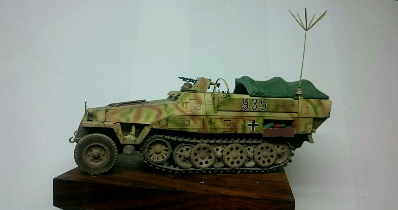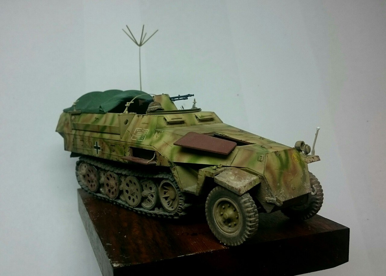 Доброго времени суток,представляю свой очередной проект. Данная модель - моя вторая попытка собрать Д-шку( 1-я есть в личных).Оказывается,что пионерпанцерваген- вещь на каропке довольно редкая,относительно других вариантов. Модель от Драгона,порадовала отличной деталировкой. Траки поставил те,которые были на литниках- мэджики показались просто отвратительными,впихнул двигатель от звезды и накидал внутрь барахлишка,которого практически не видно хд. Думаю,что со временем он пойдет на диораму. Машина - собирательный образ ханомагов учебной танковой дивизии "Леер", период Битвы за Кан. Окрашена полностью тамией,смывка от пасифик 88, пигменты и фильтр - миг. Тонировка художественным маслом. К сожалению не обошлось без недочетов,да и не все получилось так,как я задумывал изначально. Особо сильно гадить не стал. С уважением.