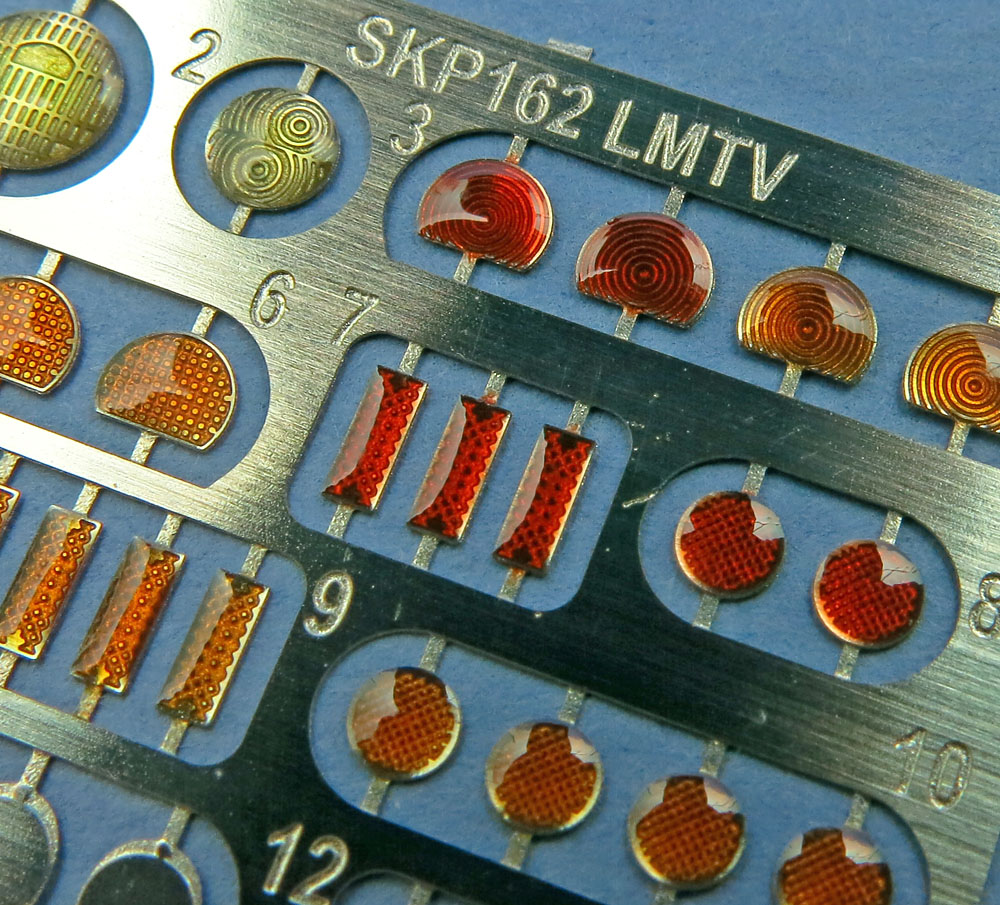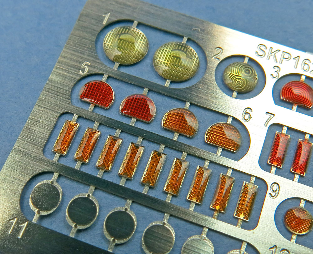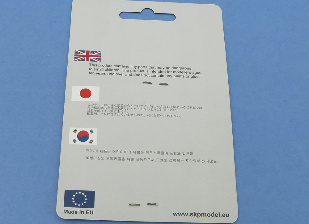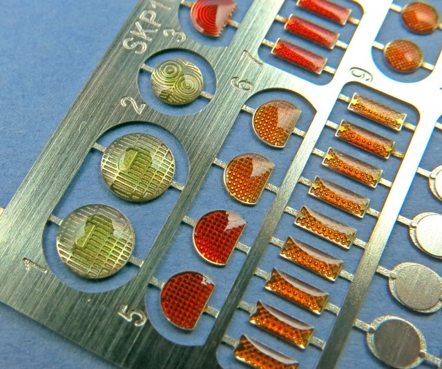 В небольшом пакетике, пристеплерреном к картонке живет небольшая плата травления с окраской и рефлекторами из прозрачной смолы поверх.