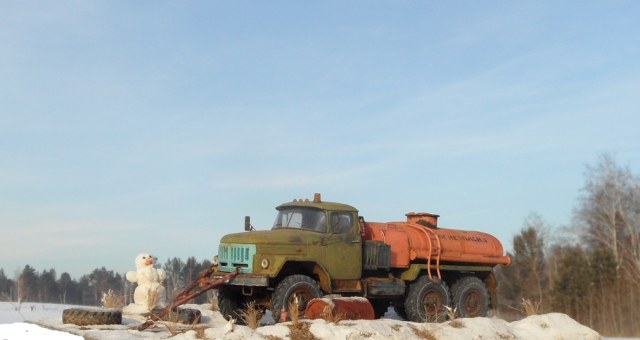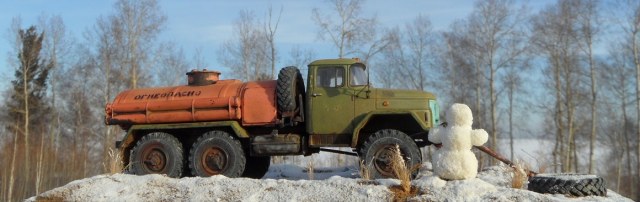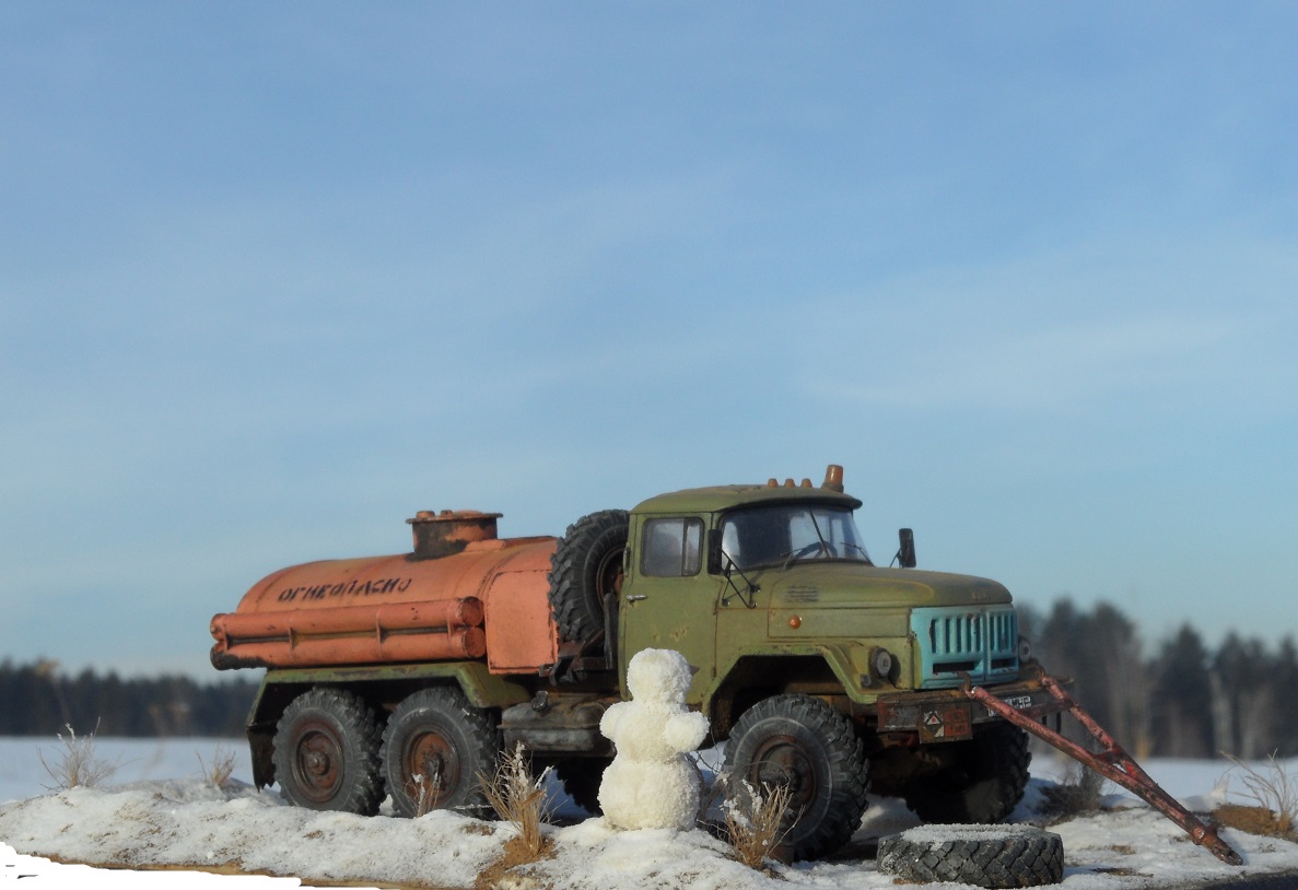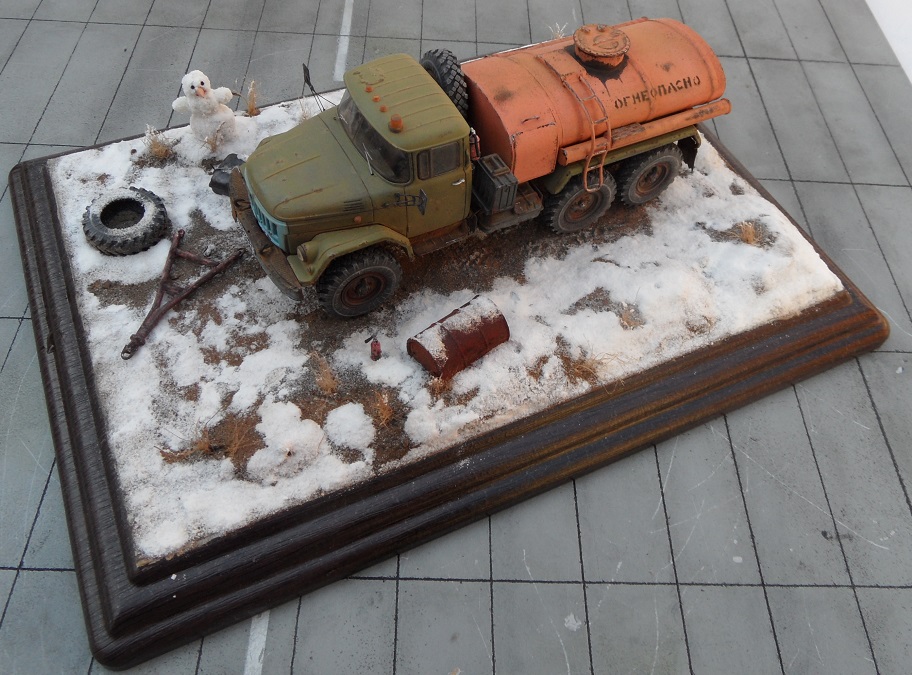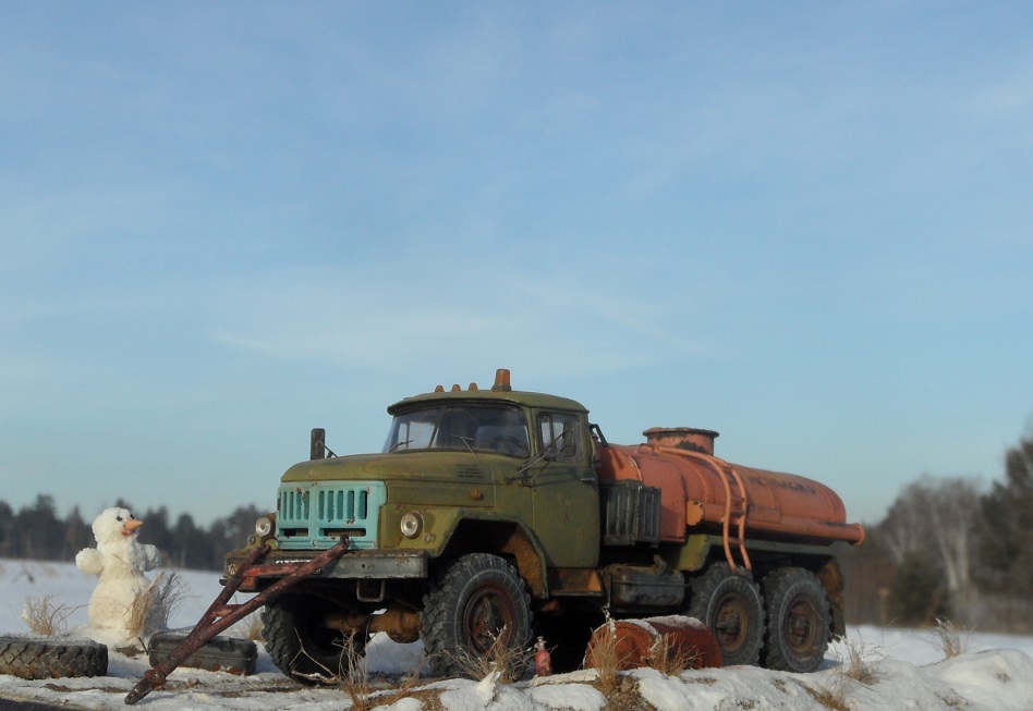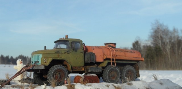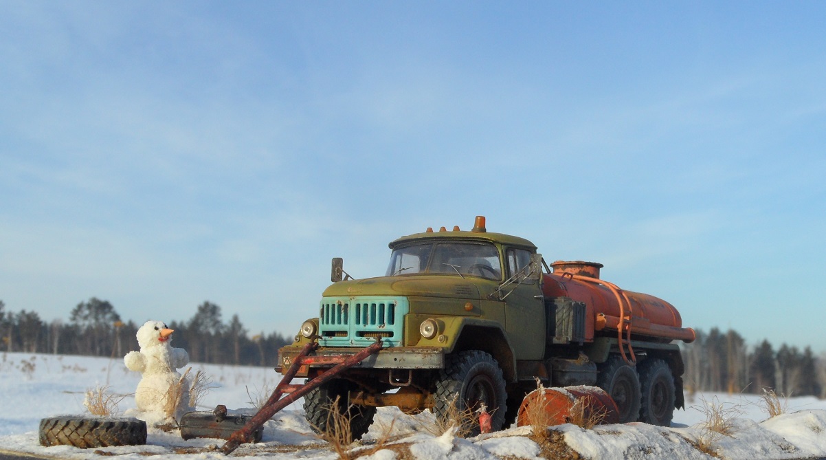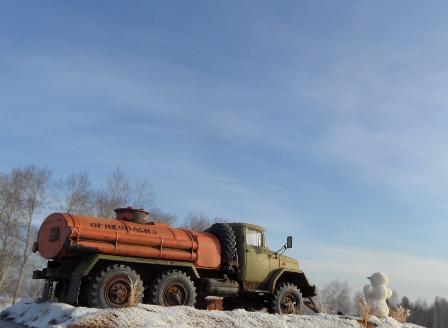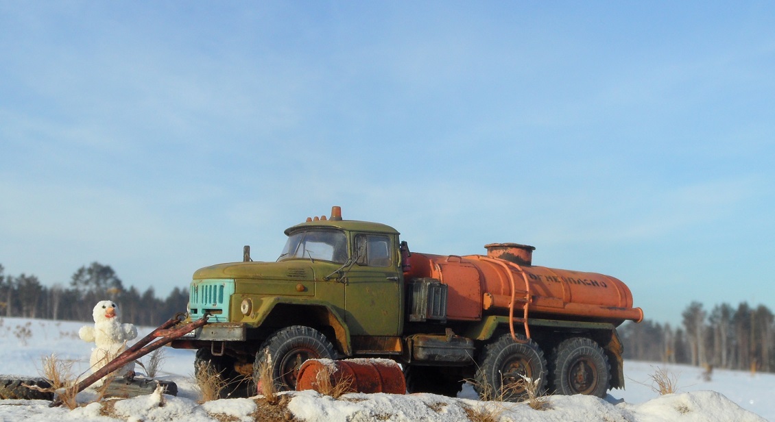 Отличный ЗиЛ и отличный снег! Но, в череде дифирамбов можно и покритиковать чуточку: почему на машине снега нет совсем? На бочке рядом снег есть, и снеговик выглядит совсем не подтаявшим - как будто его свежим снежком присыпало. В общем: на ЗиЛе снега не хватает, хотя бы талые остатки в уголках подножек, у лобового стекла и на бампере. В остальном гармония