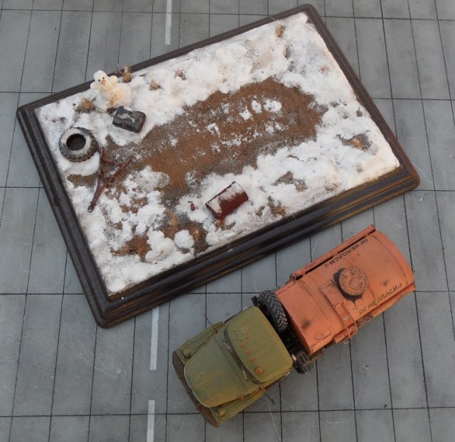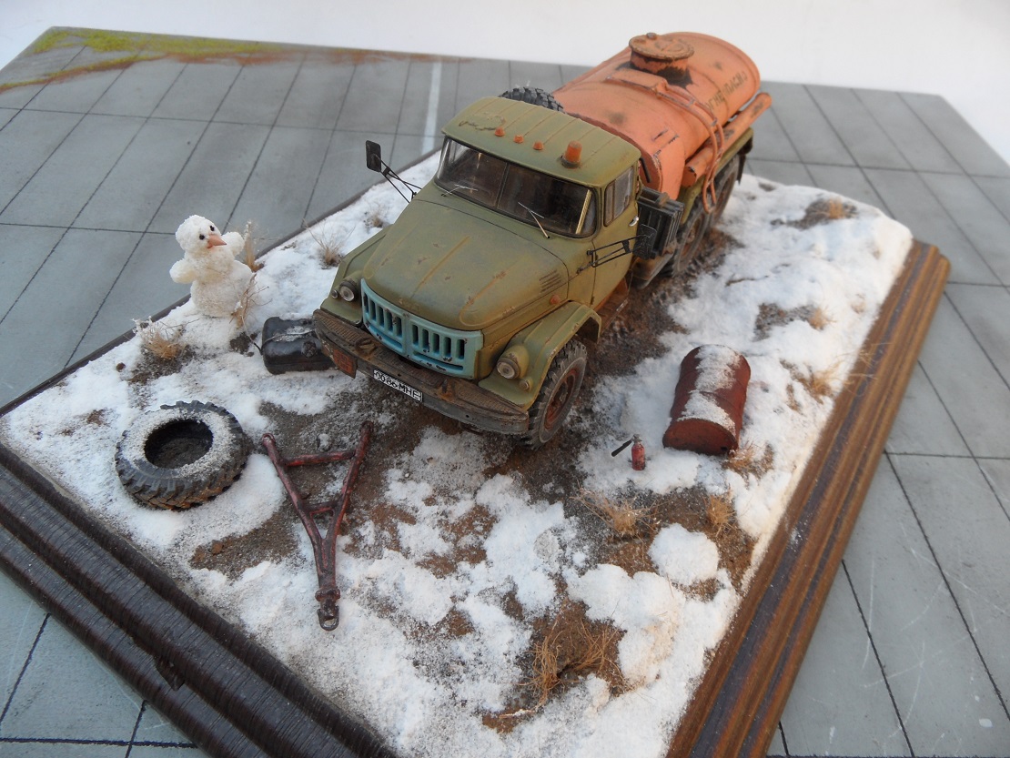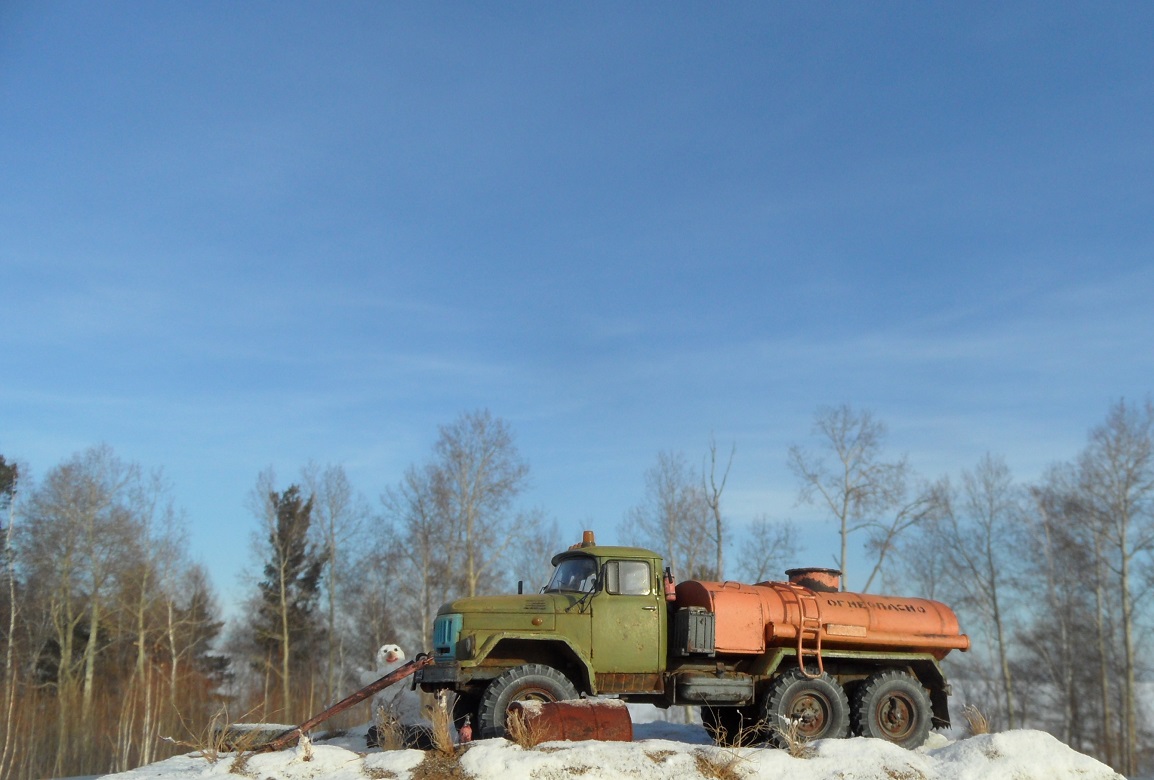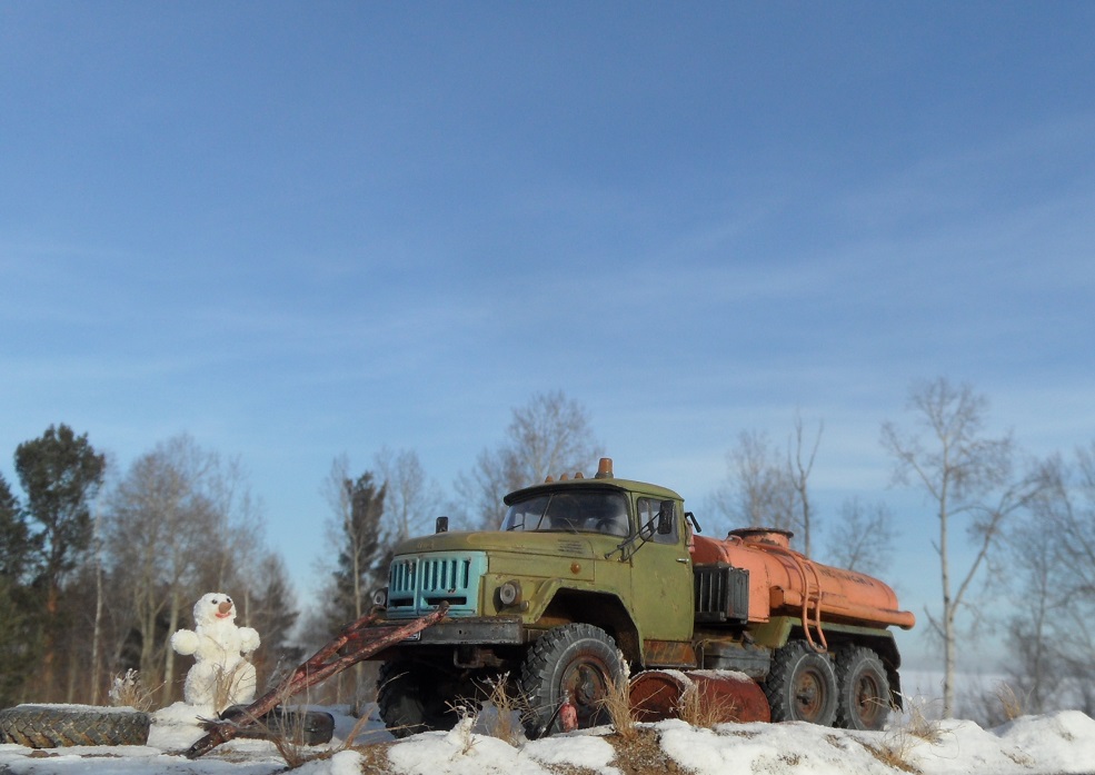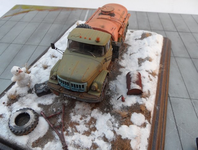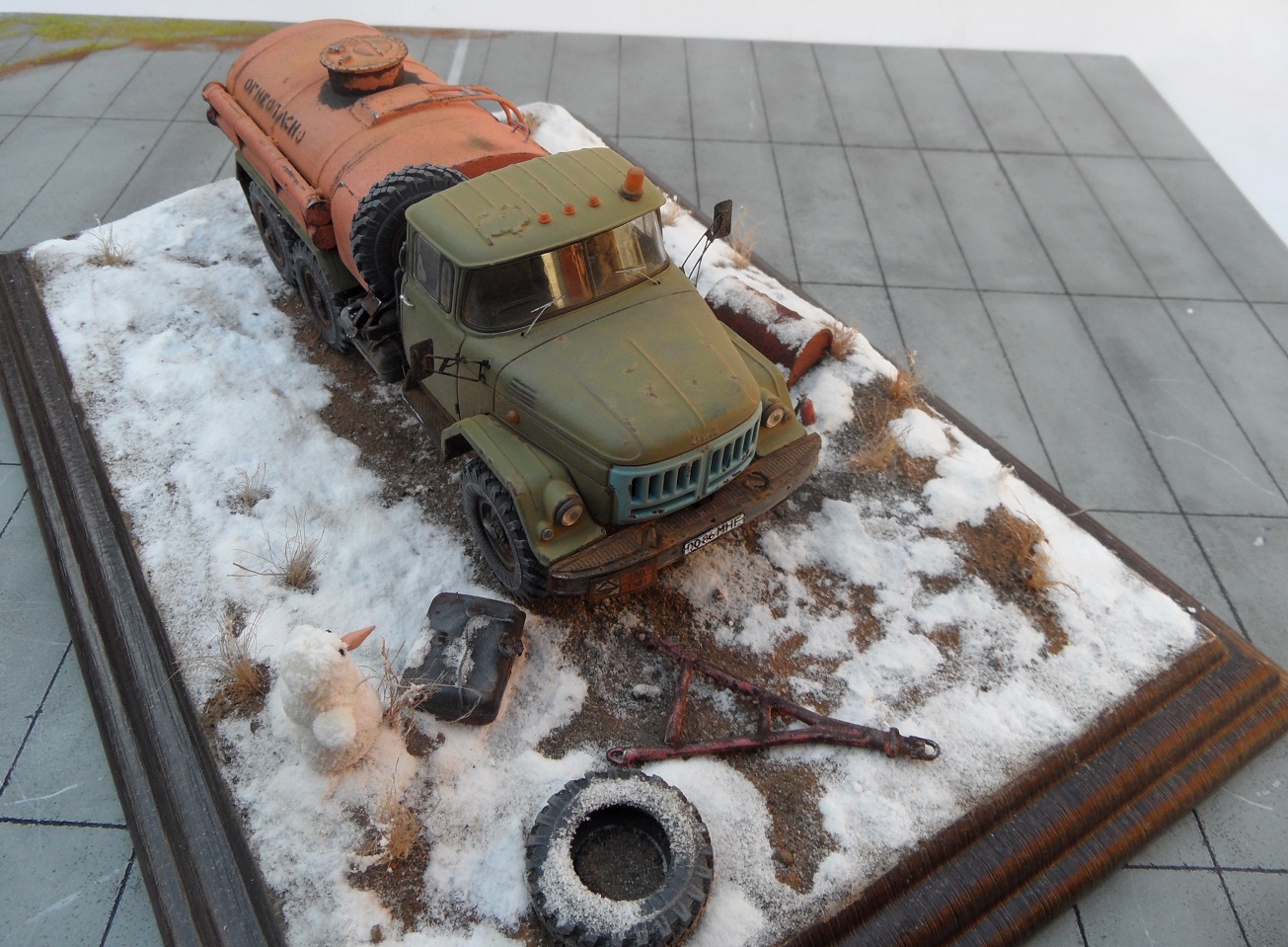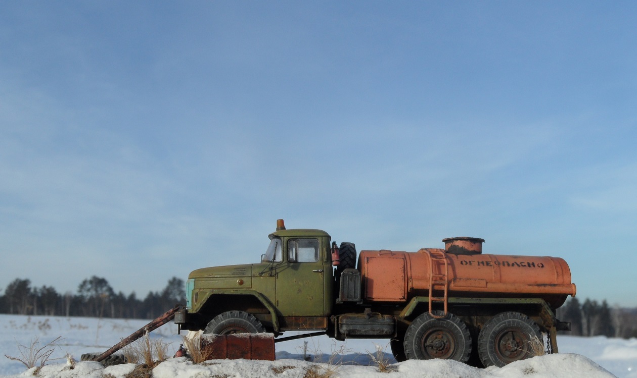Отличный ЗиЛ и отличный снег! Но, в череде дифирамбов можно и покритиковать чуточку: почему на машине снега нет совсем? На бочке рядом снег есть, и снеговик выглядит совсем не подтаявшим - как будто его свежим снежком присыпало. В общем: на ЗиЛе снега не хватает, хотя бы талые остатки в уголках подножек, у лобового стекла и на бампере. В остальном гармония