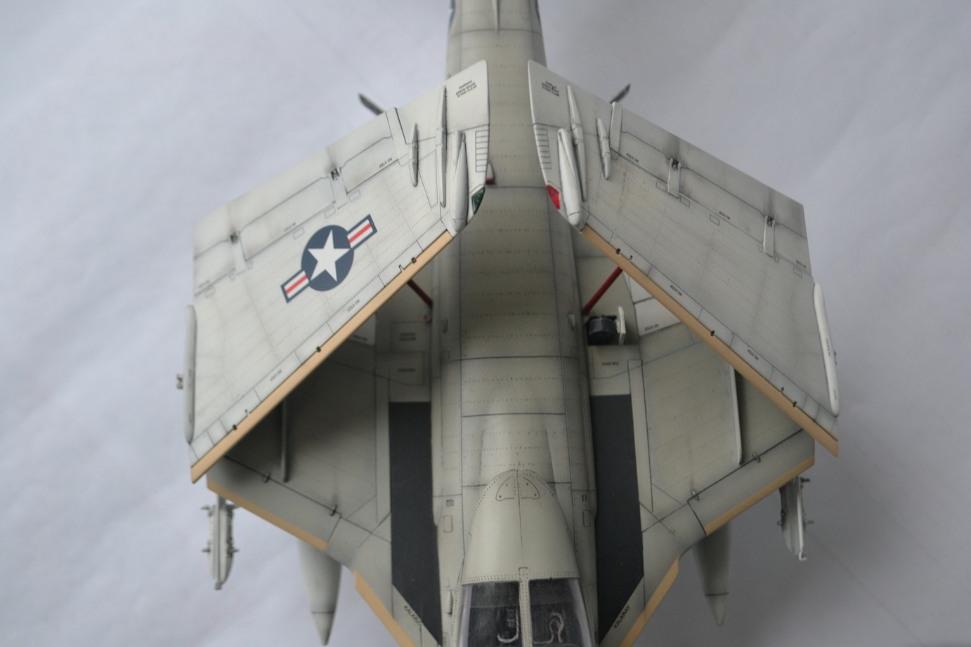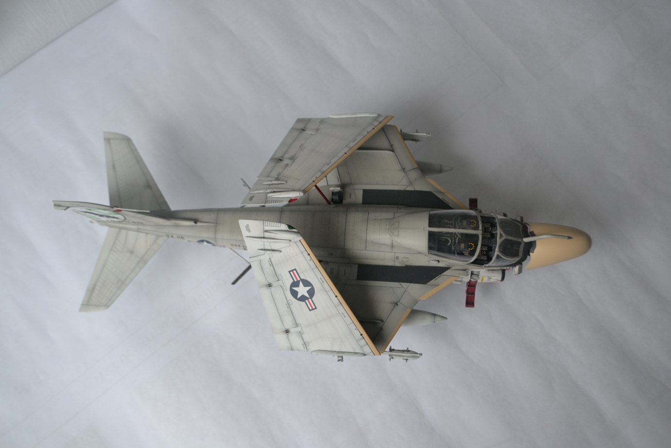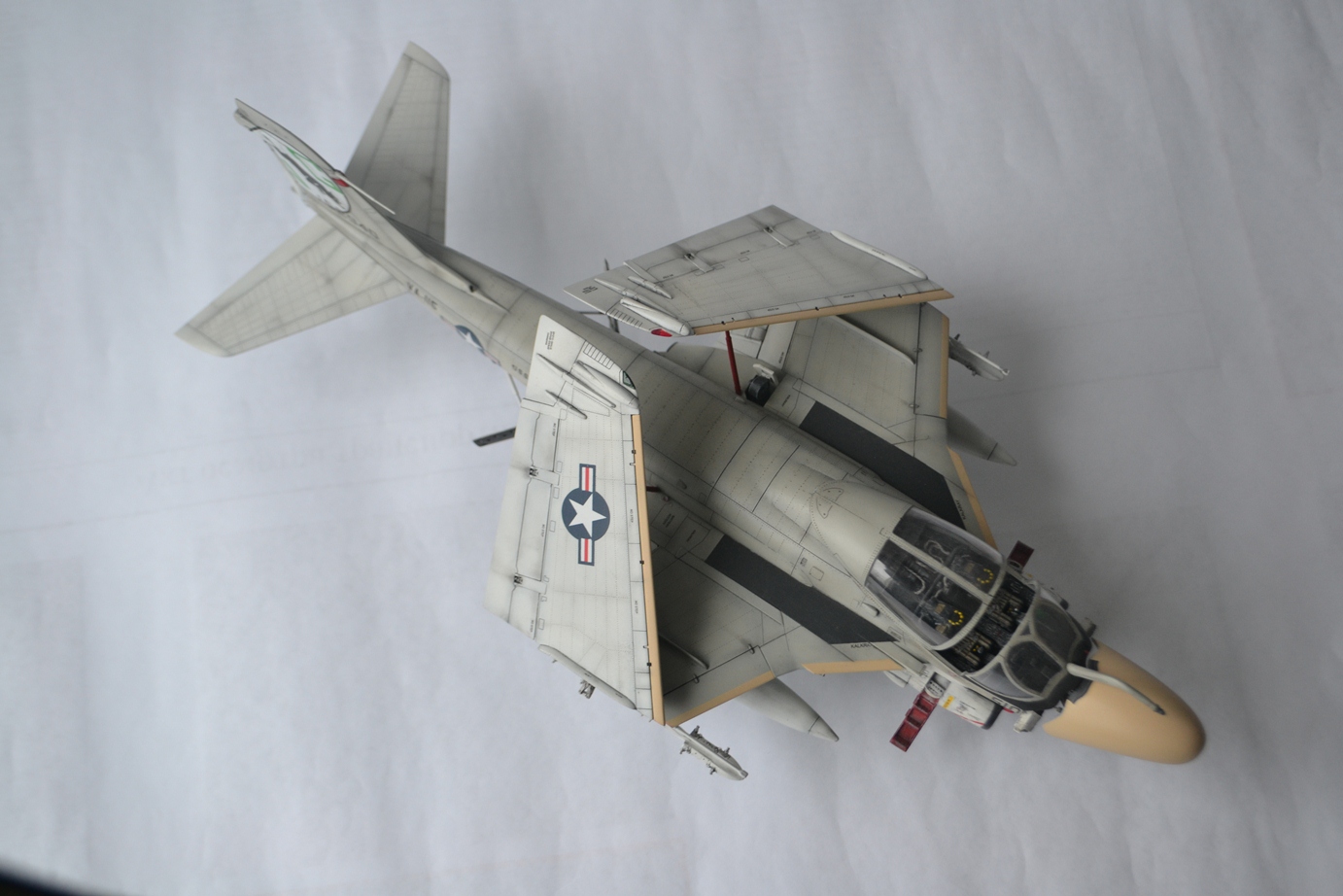 Нормальный Интрудер получился, жаль в сети его фото днем с огнем не найти - знали-бы что так быстро собьют то обязательно-бы поснимали. Есть предположение что окантовки в/з черными на нем не были, ну и стекла "маячка" (anti-collision light) на киле на модели по-моему переразмерены.