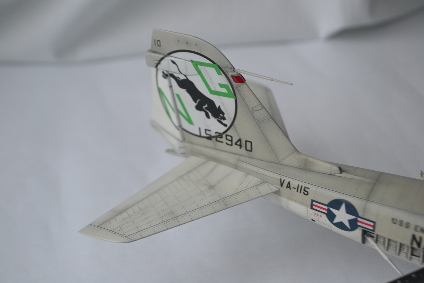 Если не считать черные окантовки каналов в/з, а это спорный момент и он ничуть не портит модель (я и писал - предположение, так как на фото А-6 из VA-35 того периода черных окантовок не наблюдается, если у кого имеется с черными то поделитесь коллеги ) то основной бросающийся в глаза промах это надпись с одного борта VA-35 а с другого VA-115, вот я о чем. Не о привязке речь. Гляньте на приведенное в пример фото др.борта и Вы поймете.