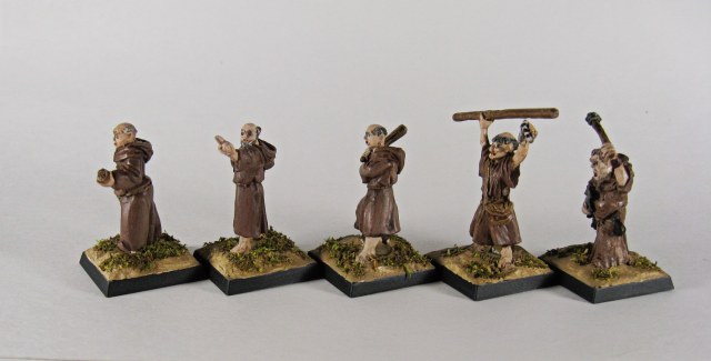 PЗдравствуйте. Вот решил отдохнуть от киверов, этишкетов, панталон. Боевые монахи из Соанских болот, прибывших в Арканар, для подавления мятежа Серых рот.) 28 мм.