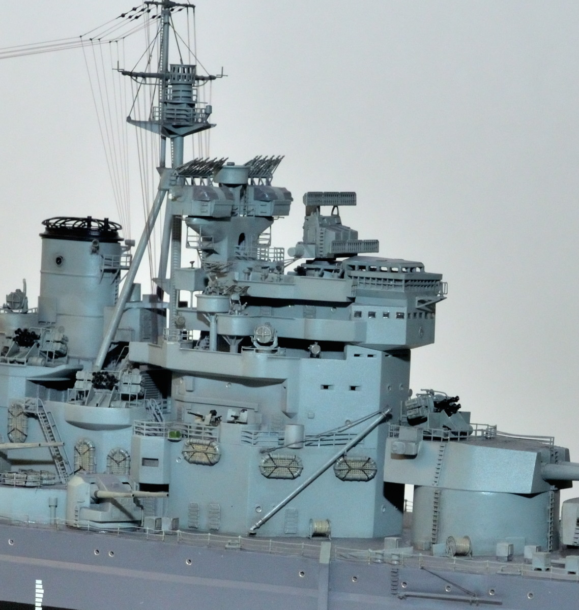 У меня если и есть что то что мне понравилось меньше остального, то это наверное цвета покраски (или фото тон не правильно передали). В принципе сейчас считается этот вариант (приложен) самым правильным. Т.е. в данном случае, борта темнее той же краской, а надстройки - светлее (причем той же краской что борт, там правильный ультрамариновый оттенок есть, а надстройки больше в зеленый оттенок тянут). Идея этого конкретного камуфляжа Г10-Г45 в первую очередь контрастность. Борт сливается с темным морем, а надстройки со светлым небом. У американцев был свой вариант - МС 22 - но там темно синий борт. Может я бы обшивку как то сделал по борту ещё... И как вы писали, то да - палубу всю красить....ну и все. В остальном все очень нравится!