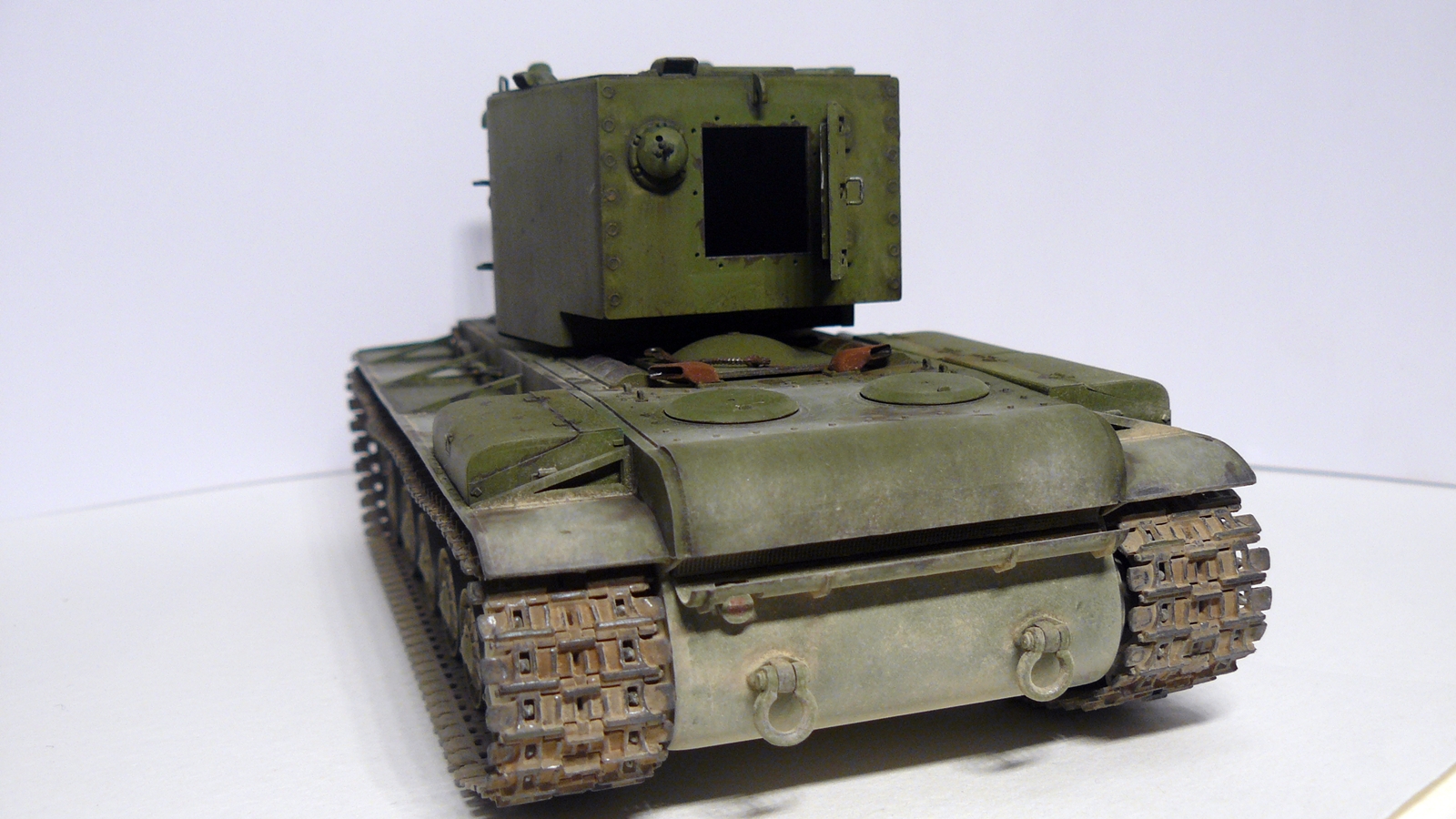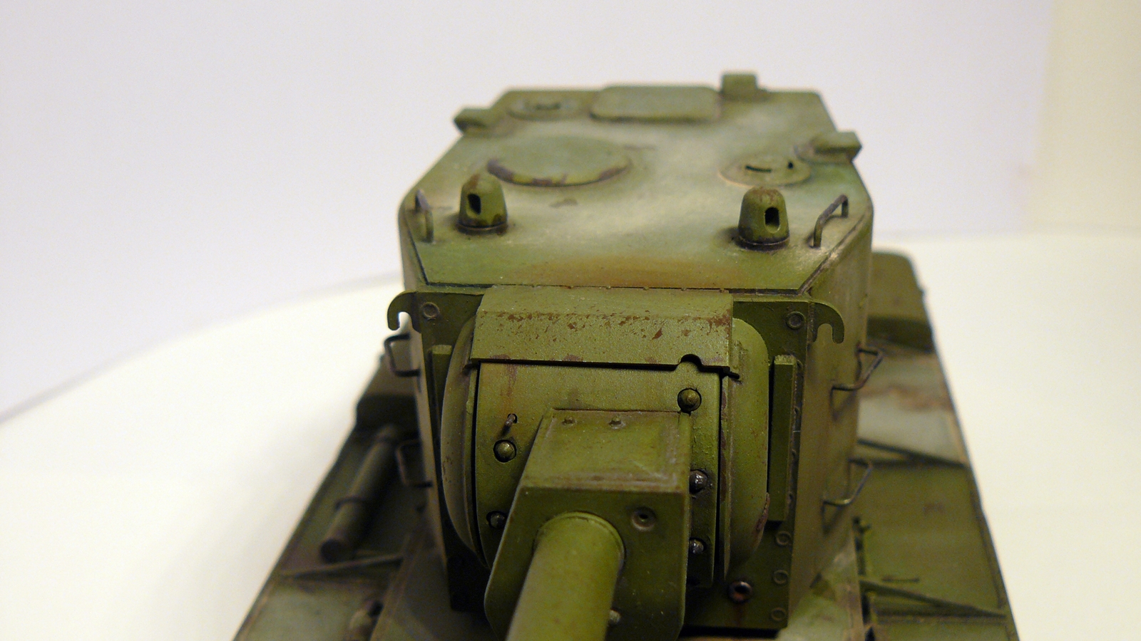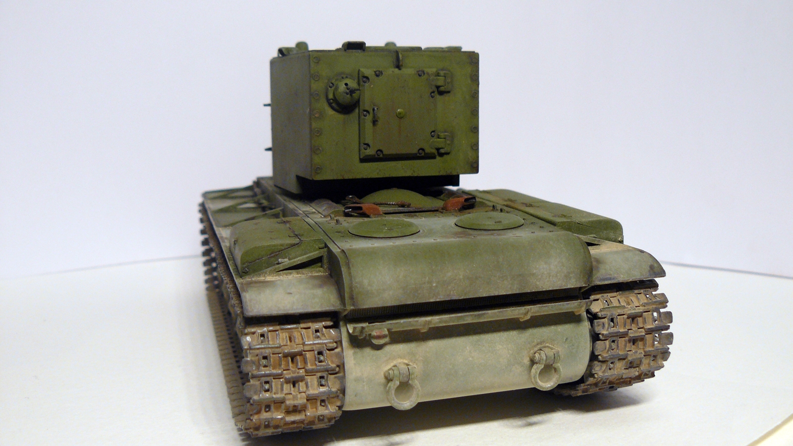 Мне понравился внешний вид.База хорошо смотрится.Выхлопа не хватает-это точно(думаю он многое объединил бы по общему стилю исполнения).Матчасть с нарушениями(это уже много раз обсуждалось по Звезде),а именно:-не верный вид задней скруглённой бронеплиты,-катки должны быть без рёбер усиления,-тубус с банником на этой машине-не актуален,-крюки на башне-тоже надо срезать.Все эти ошибки сам повторил в своей КВ.С уважением