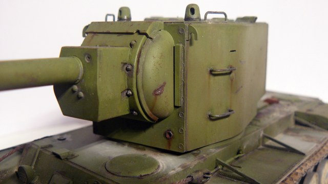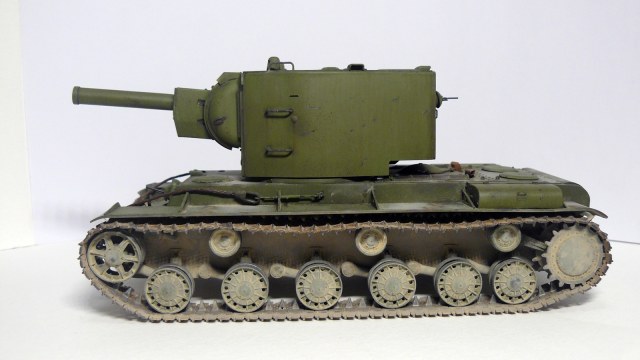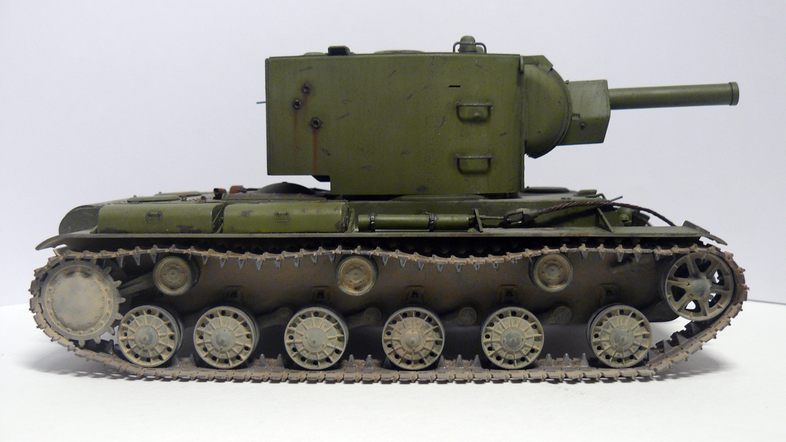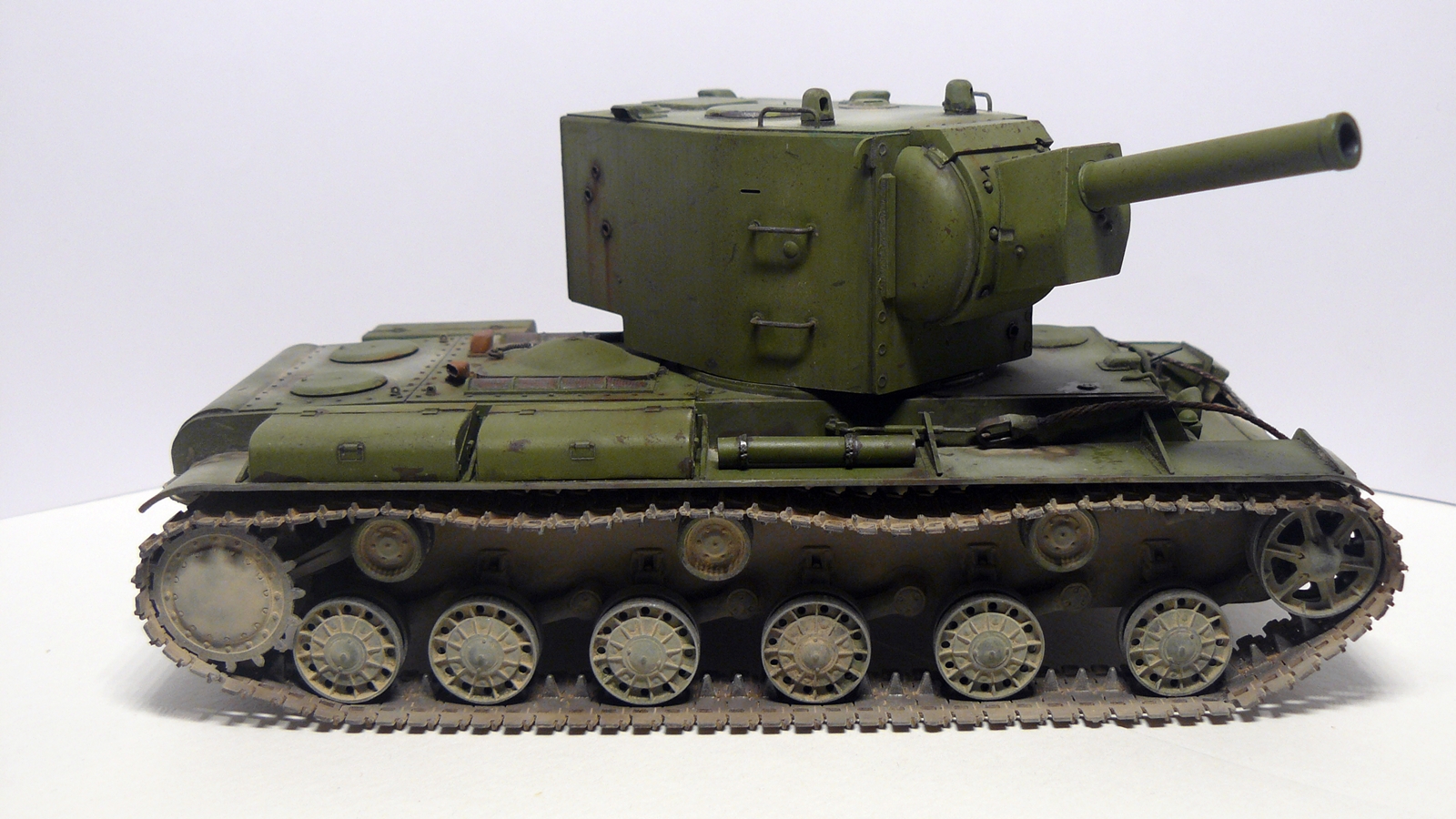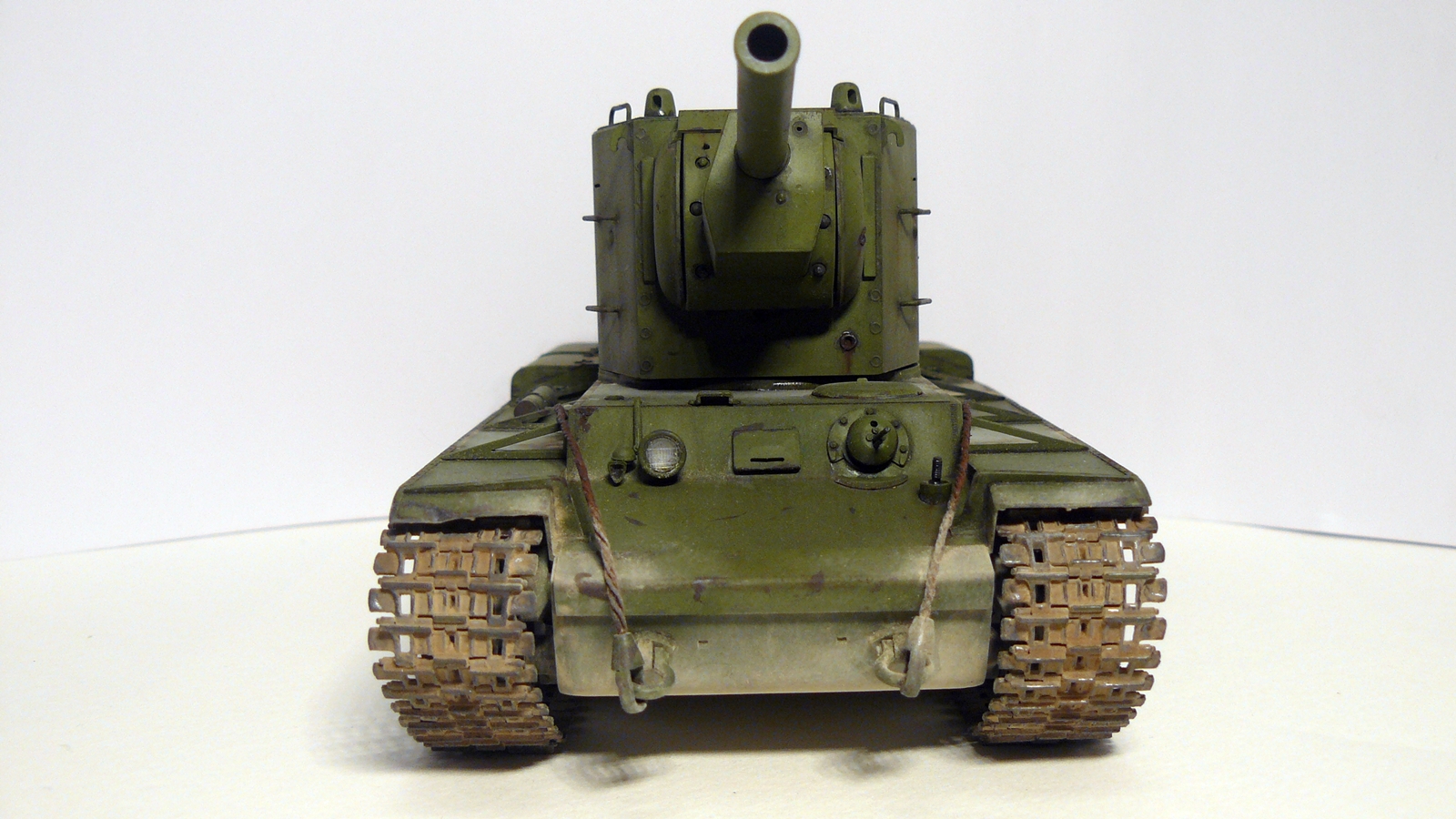 Мне понравился внешний вид.База хорошо смотрится.Выхлопа не хватает-это точно(думаю он многое объединил бы по общему стилю исполнения).Матчасть с нарушениями(это уже много раз обсуждалось по Звезде),а именно:-не верный вид задней скруглённой бронеплиты,-катки должны быть без рёбер усиления,-тубус с банником на этой машине-не актуален,-крюки на башне-тоже надо срезать.Все эти ошибки сам повторил в своей КВ.С уважением