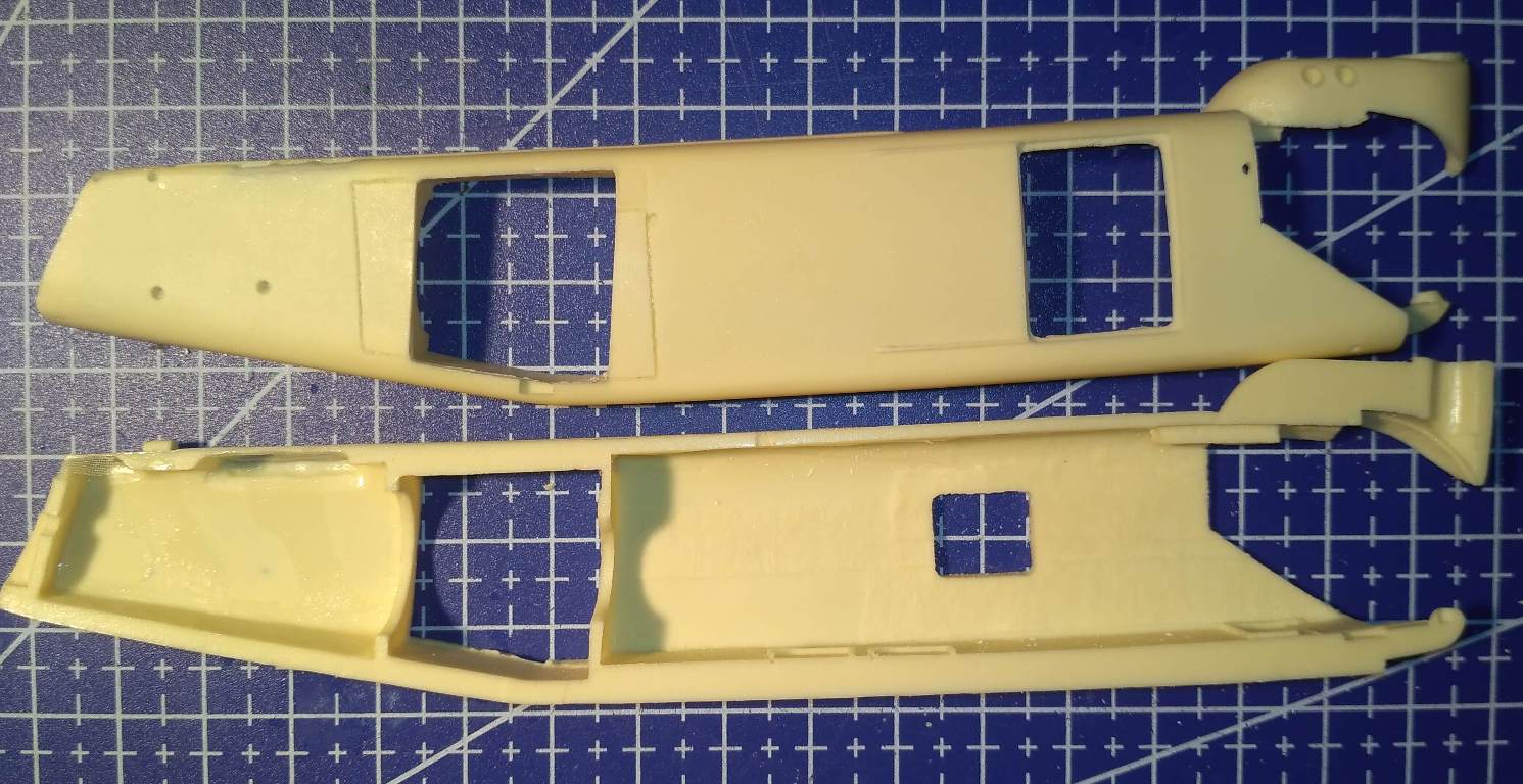 литье основных деталей набора не самое ужасное, но и далеко не идеал. стенки фюзеляжа разной толщины, к месту стыка половинок они образуют гребень.