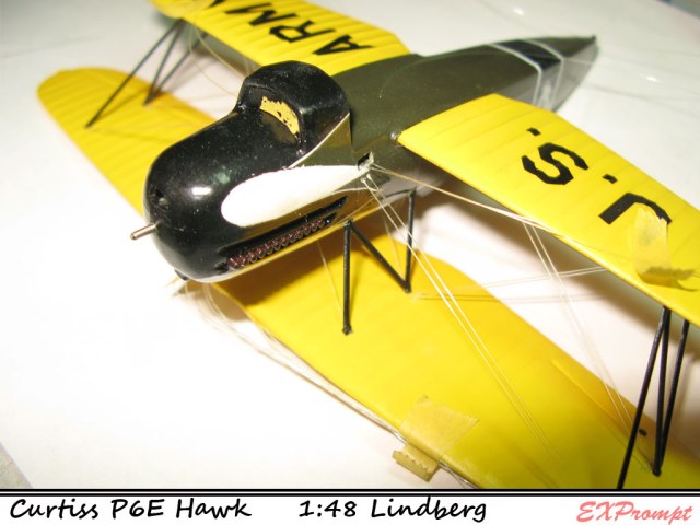 Далее Клеим бипланную коробку стойки.. сразу растяжки фюзеляж-верхенее крыло клеим с верху вниз там где прицел и над движком.