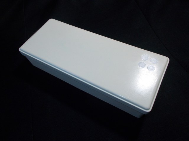 Дека и гриф и накладка на гриф изготовлены из деревянных линеек; накладка на деку, звукосниматели, струнодержатель из пластика; лады и струны - гитарные струны; колки - бумага, струны, зубочистки(из них же ручки тона и громкости); Футляр - советская пластиковая коробочка от чего-то