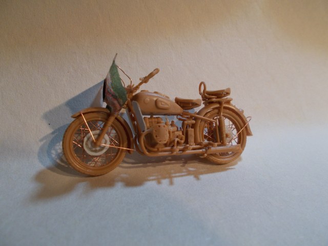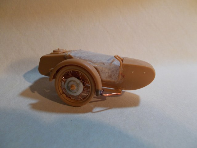 В основе набор М-72 от Звезды. В фильме участвует несколько мотоциклов, ориентировался по конкретному кадру