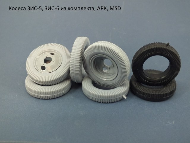 Оружейник OR35w007ЗИС-6. В целом повторяют предыдущие колеса, но ступицы задних колес отлиты отдельными деталями. Ну и соответственно больше колес и 2 запаски.