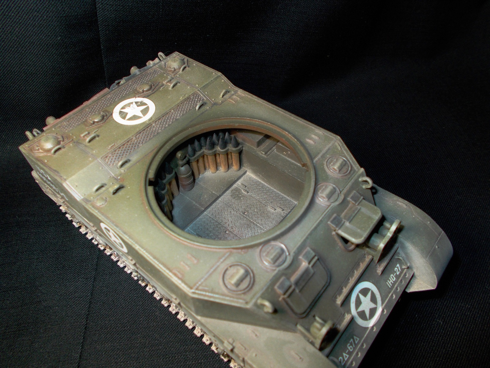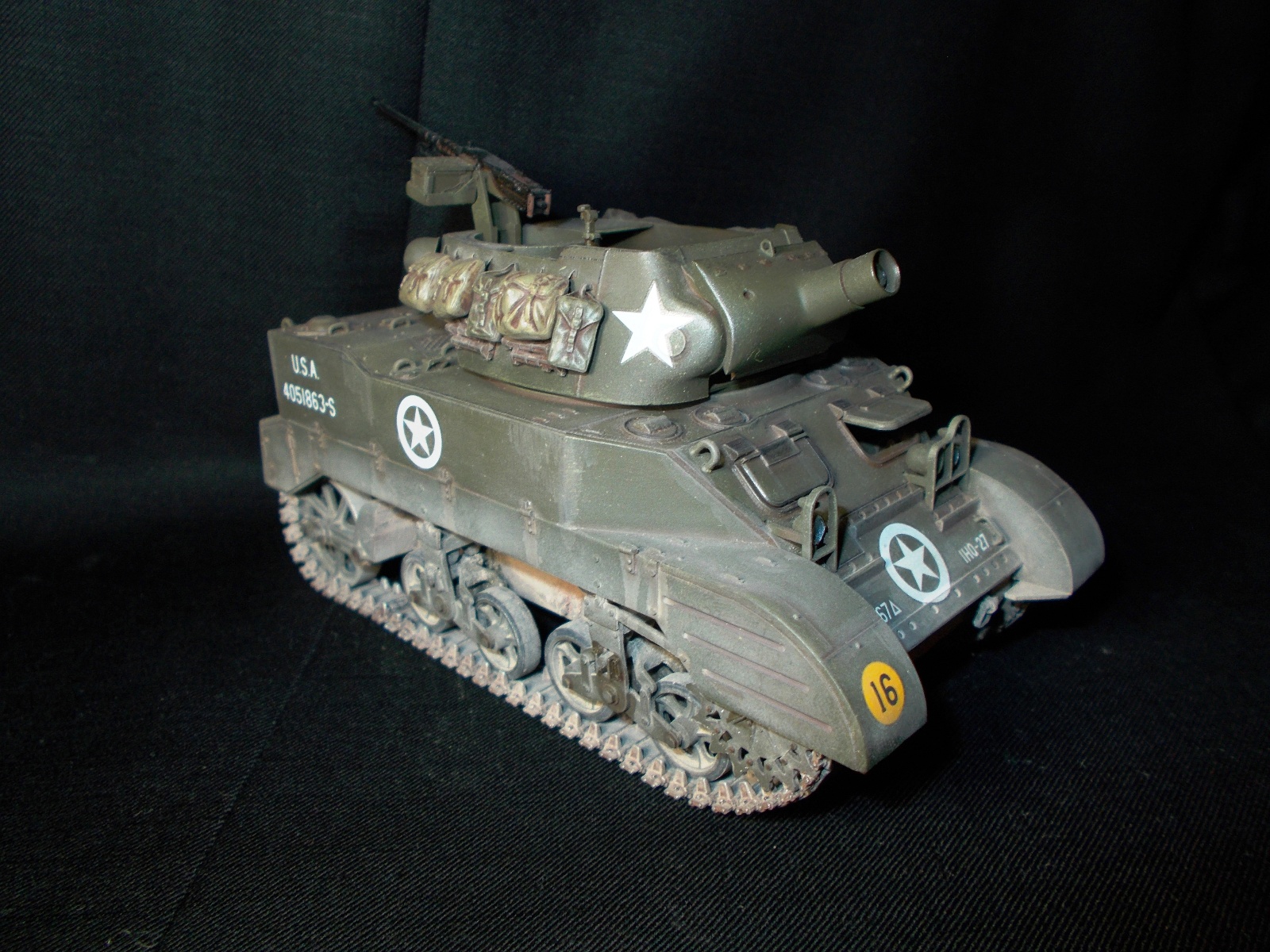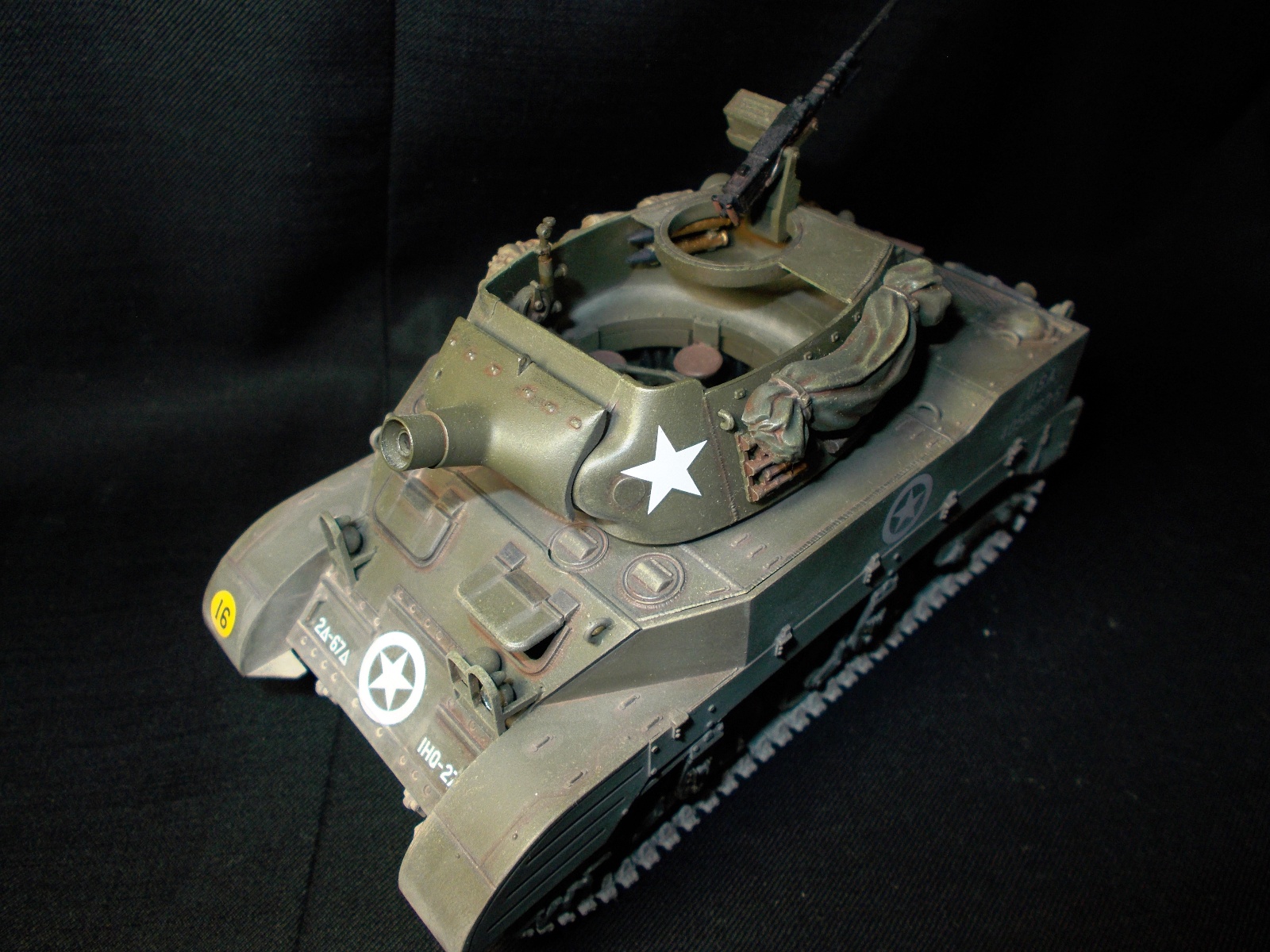 Фары негде было достать, оставил родные. Обвес взял из набора тамии, не знаю что в нем такого плохого. Про пулемет не вижу ничего такого. Фотограф из меня всю жизнь аховый...