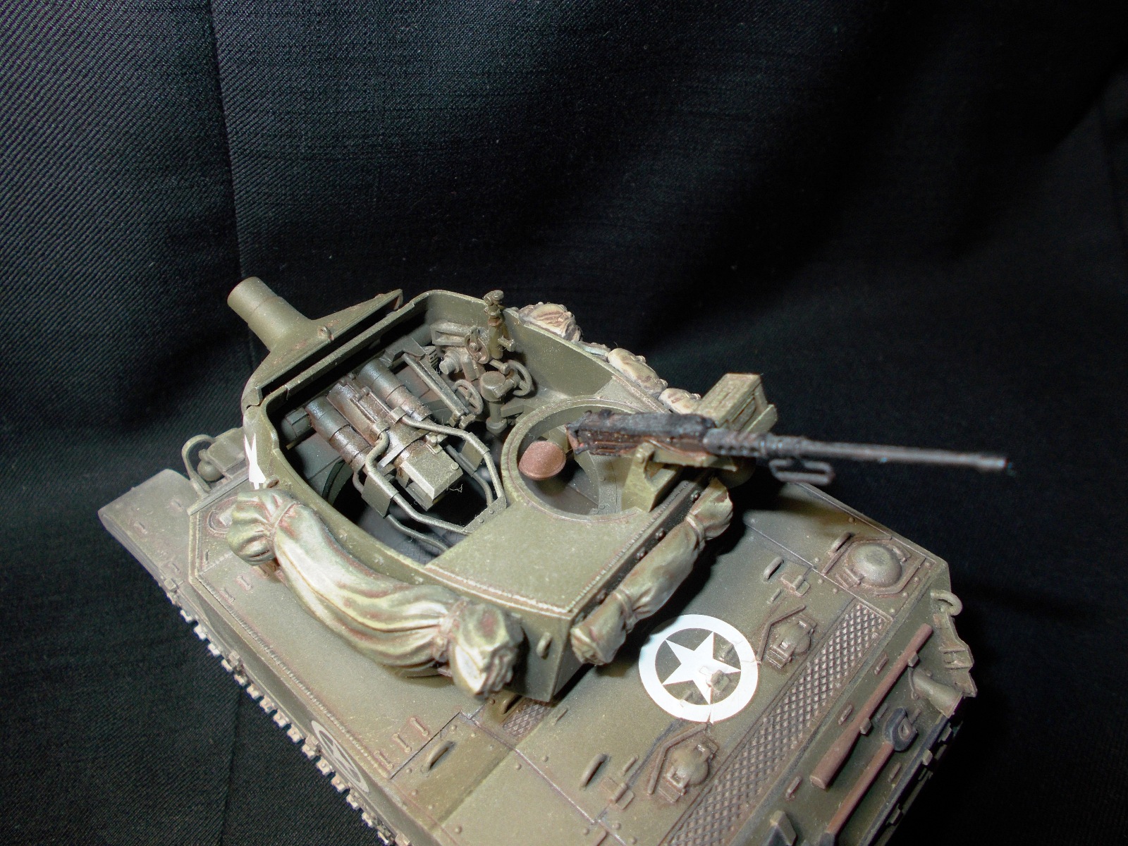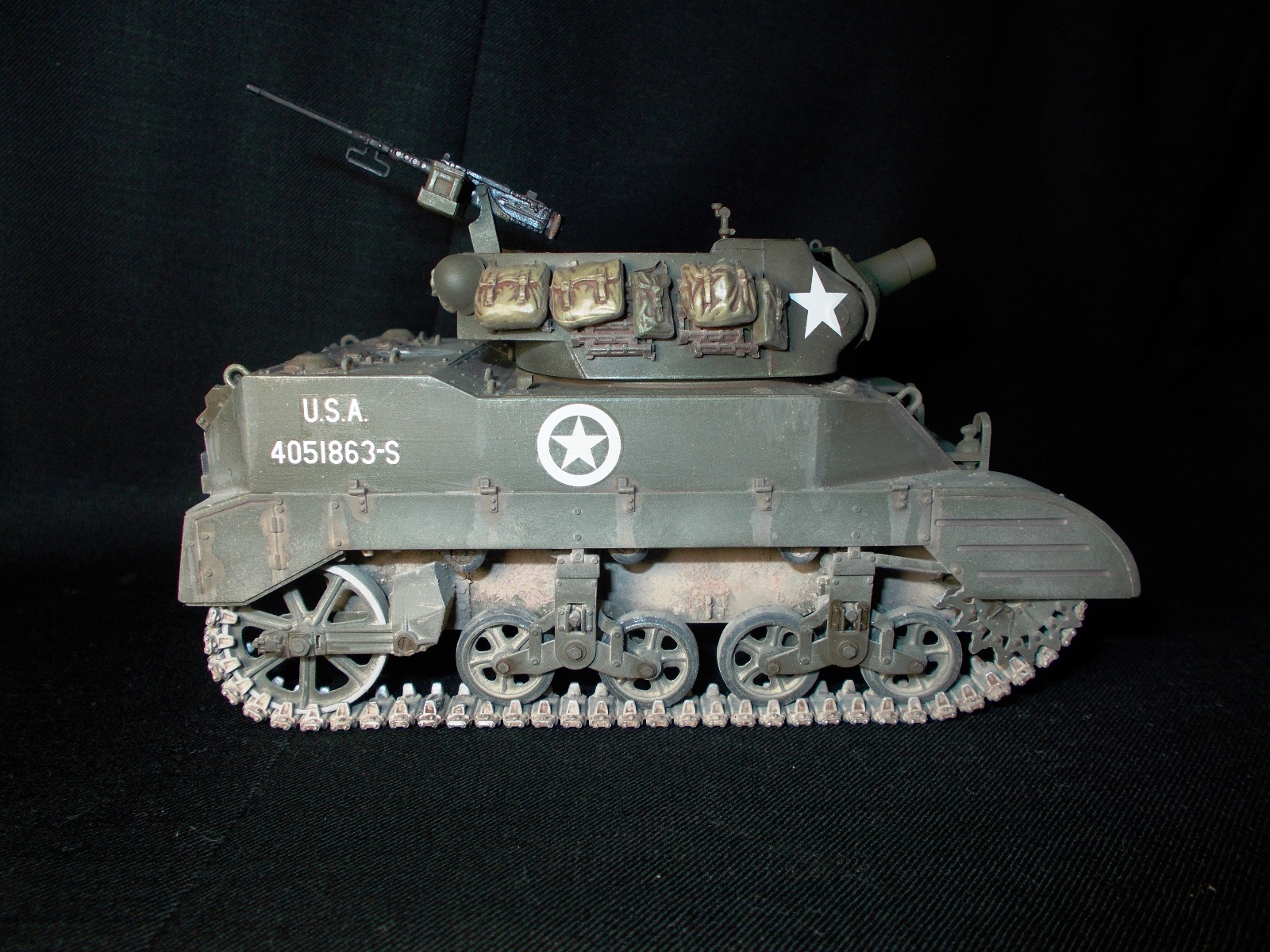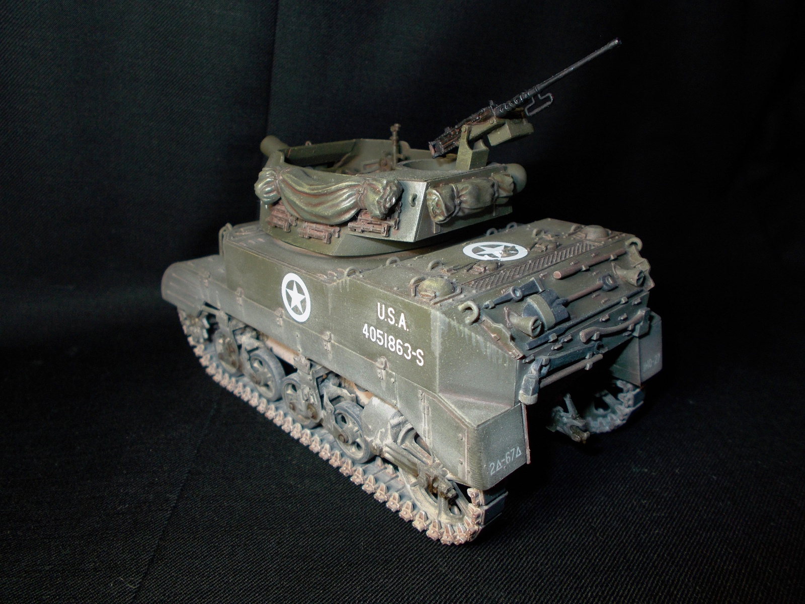Фары негде было достать, оставил родные. Обвес взял из набора тамии, не знаю что в нем такого плохого. Про пулемет не вижу ничего такого. Фотограф из меня всю жизнь аховый...