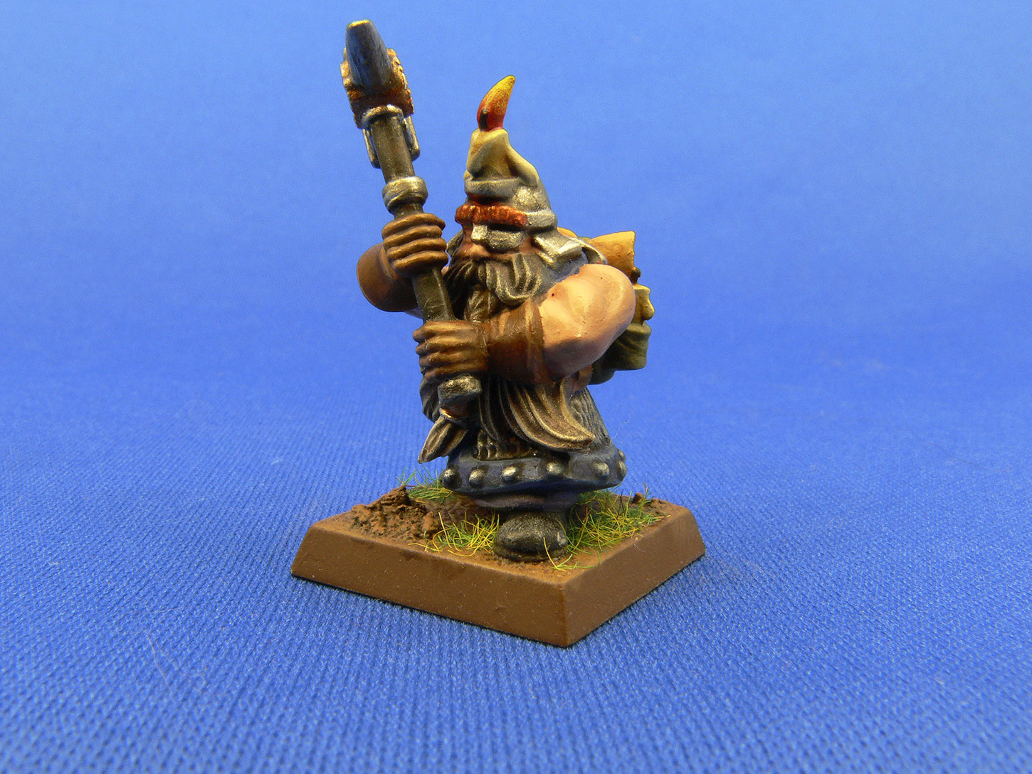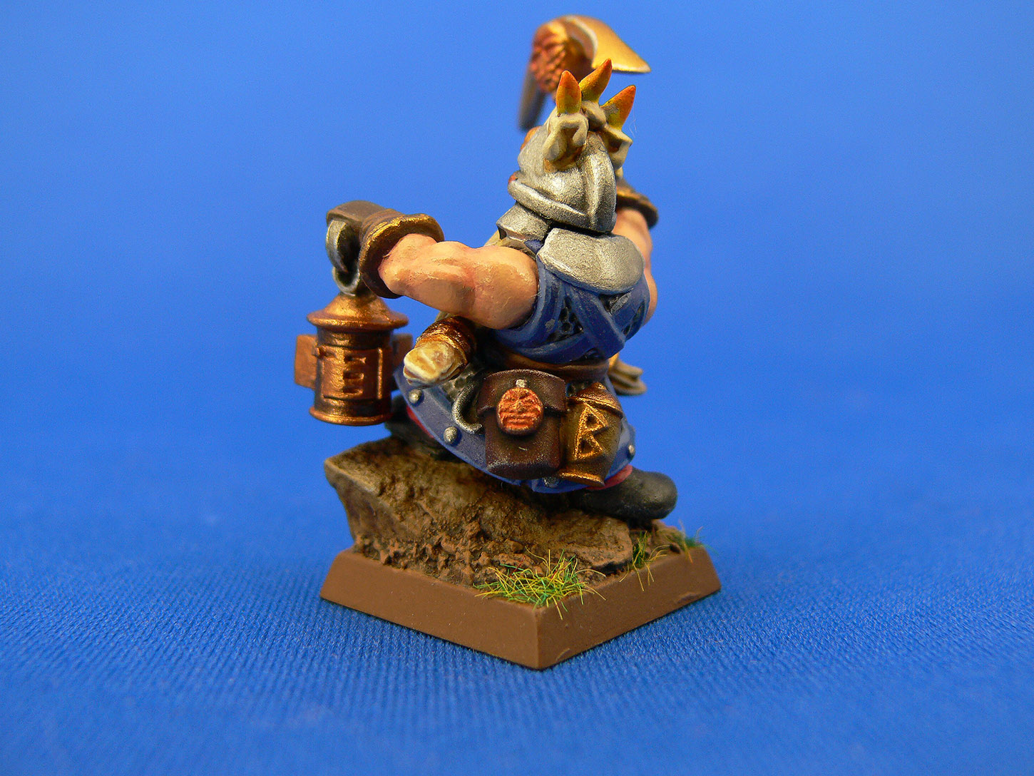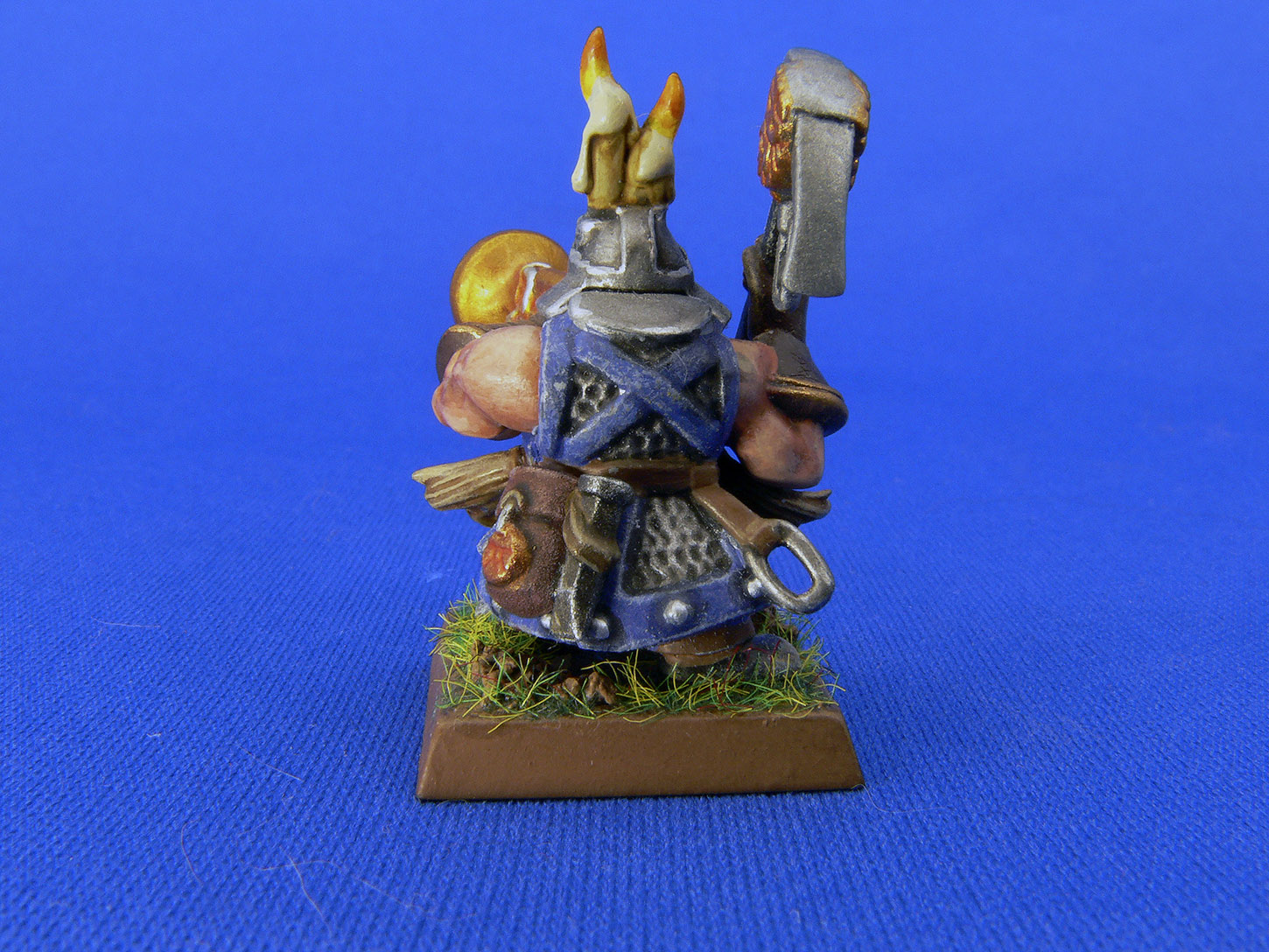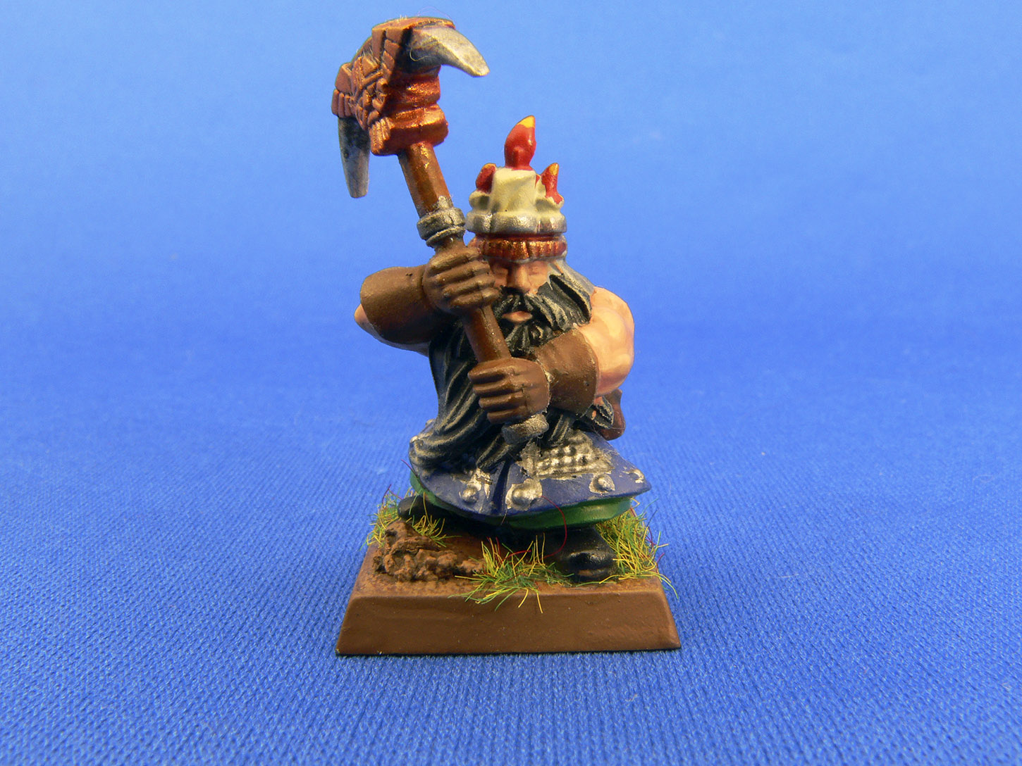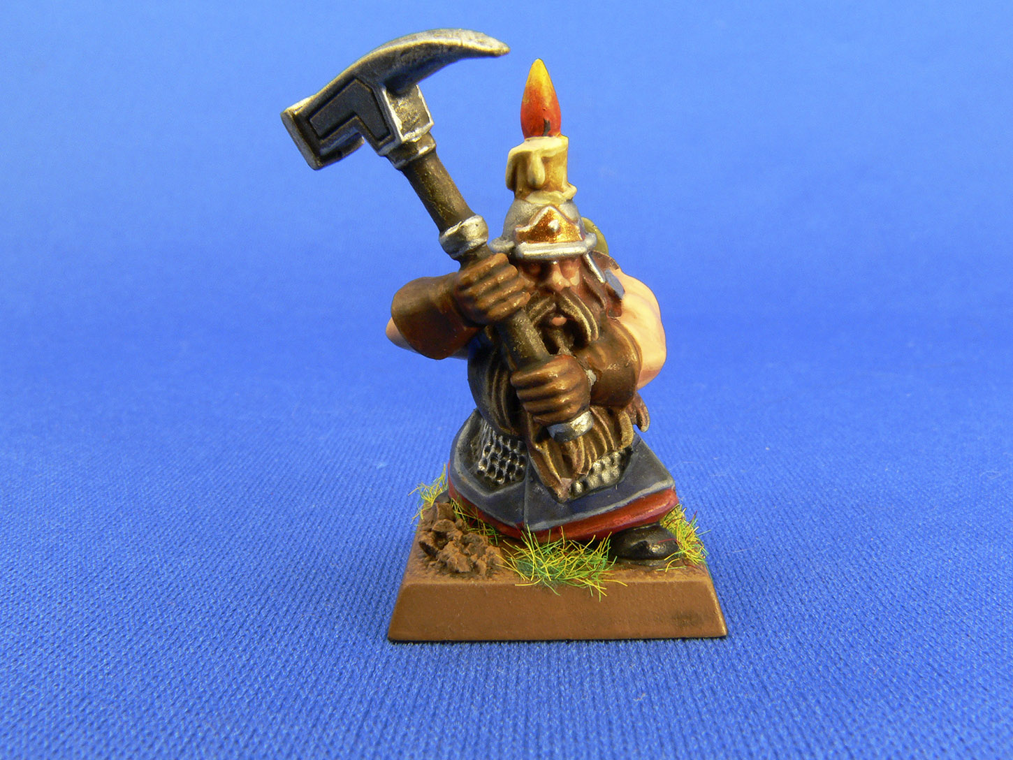 Красить гномов не так уж тяжело, но есть свои сложности. Сначала грунтуем гнома (тамиевской грунтовкой из баллона). Затем красили в базу: бороду, кольчугу, рубашку, оружие и т.д. После этого красили смывкой. Краску и смывку использовали Citadel.