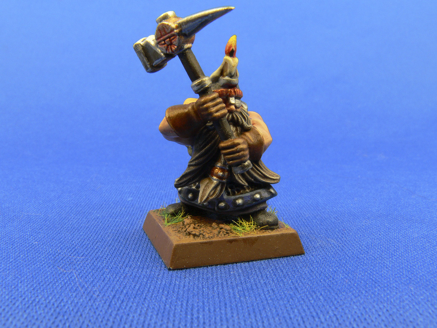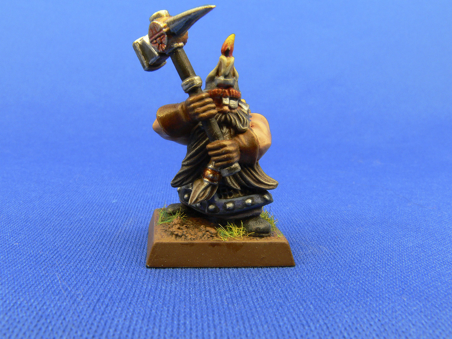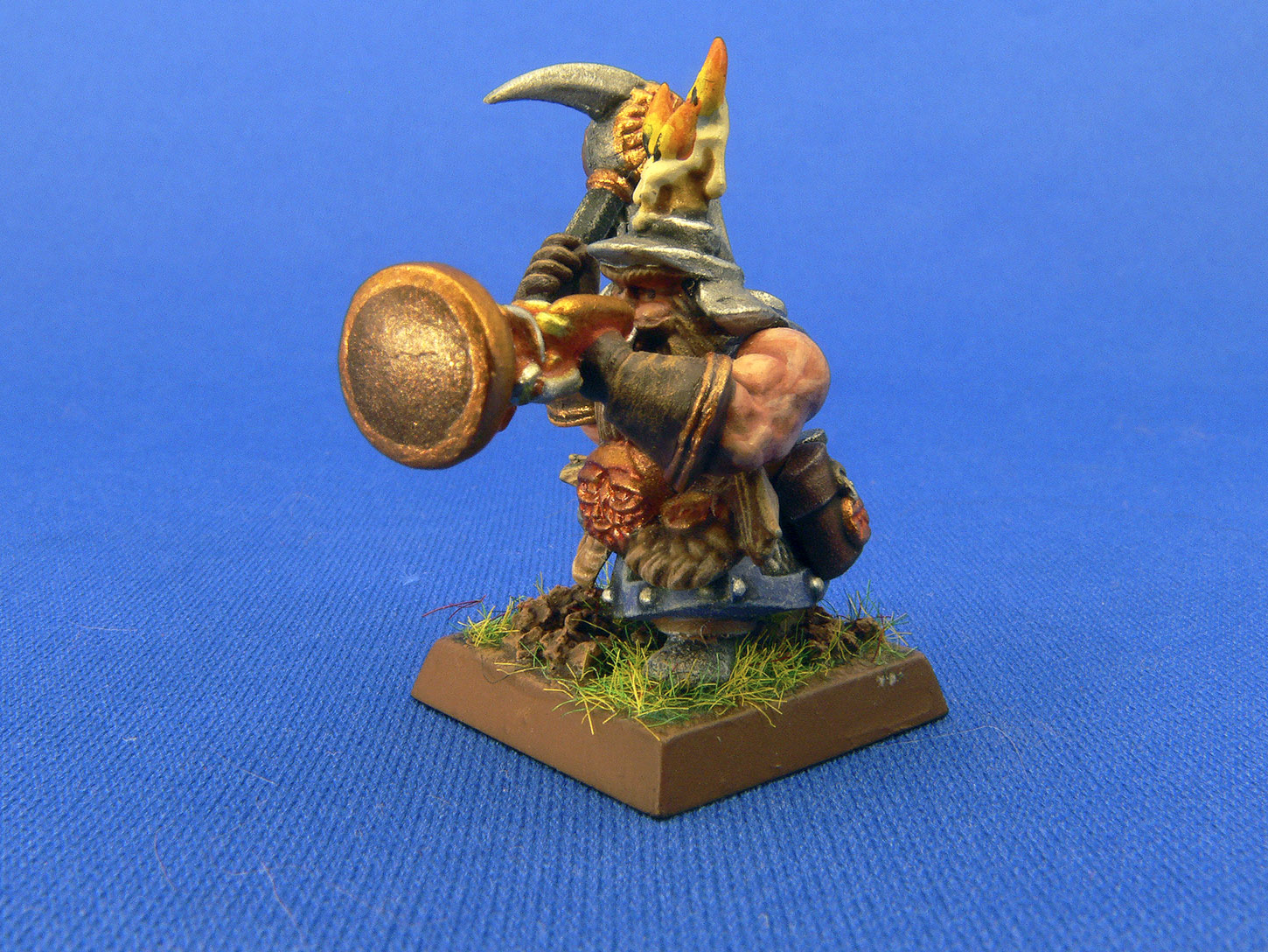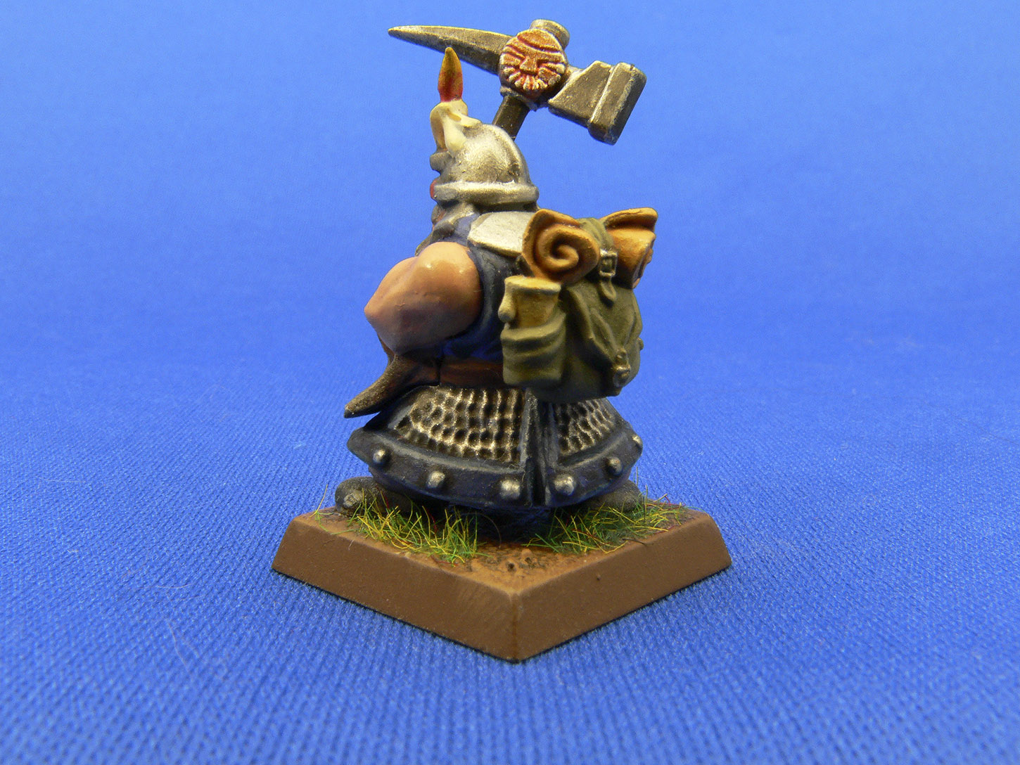 Красить гномов не так уж тяжело, но есть свои сложности. Сначала грунтуем гнома (тамиевской грунтовкой из баллона). Затем красили в базу: бороду, кольчугу, рубашку, оружие и т.д. После этого красили смывкой. Краску и смывку использовали Citadel.