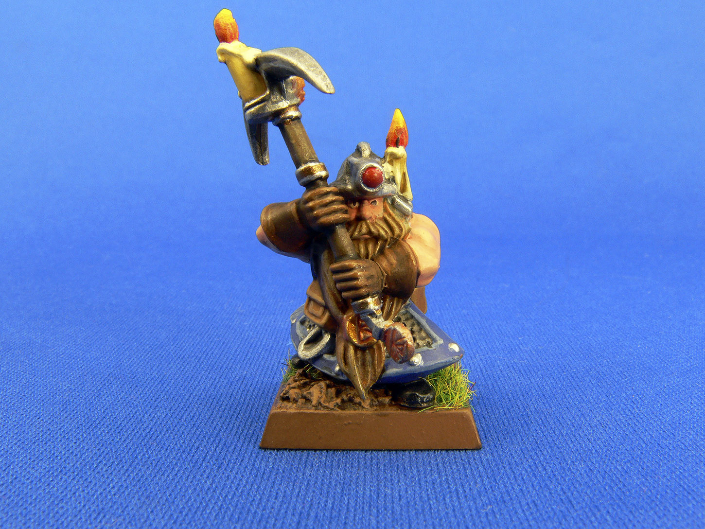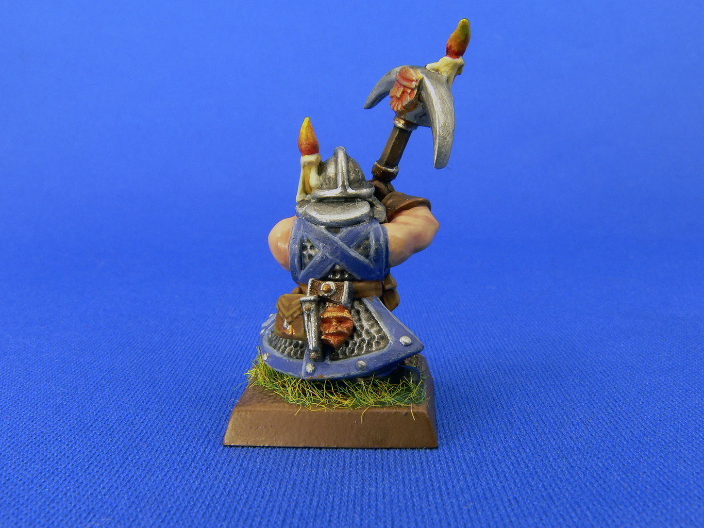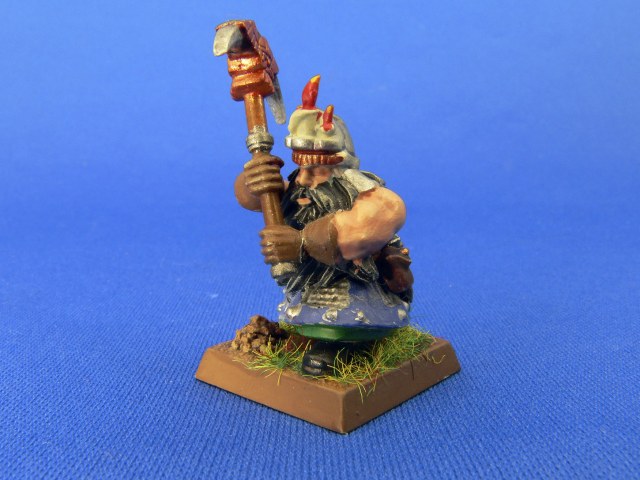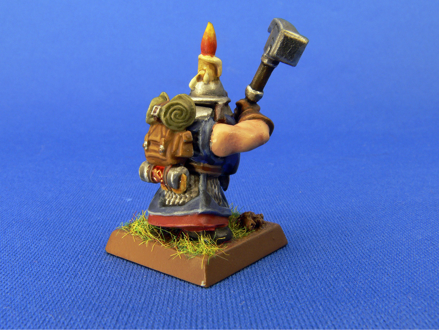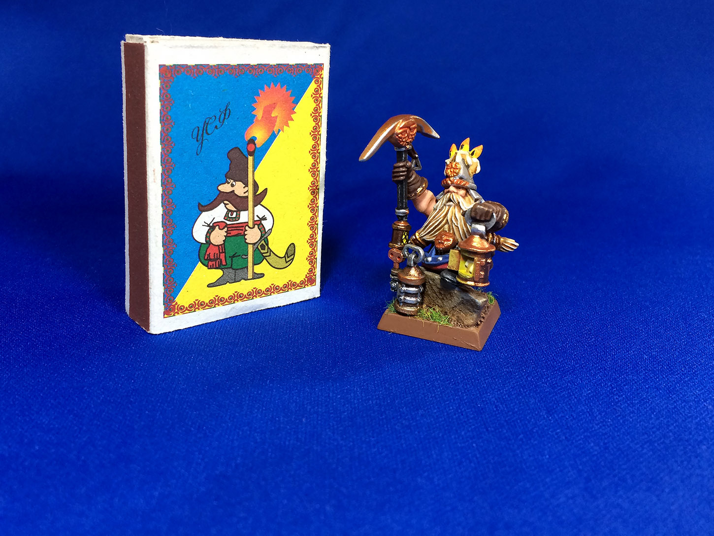 Красить гномов не так уж тяжело, но есть свои сложности. Сначала грунтуем гнома (тамиевской грунтовкой из баллона). Затем красили в базу: бороду, кольчугу, рубашку, оружие и т.д. После этого красили смывкой. Краску и смывку использовали Citadel.