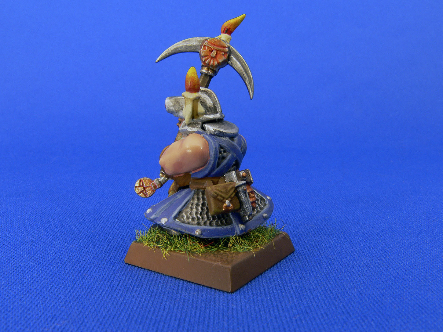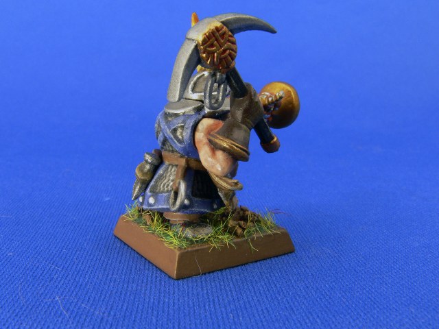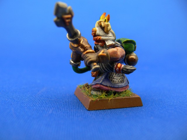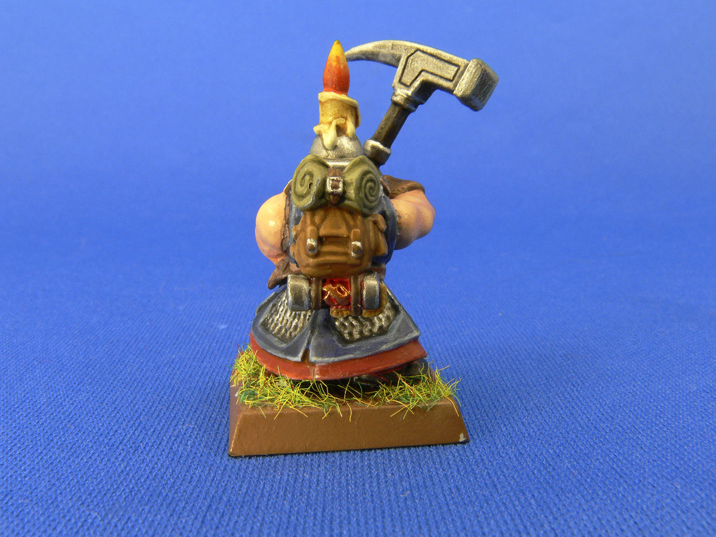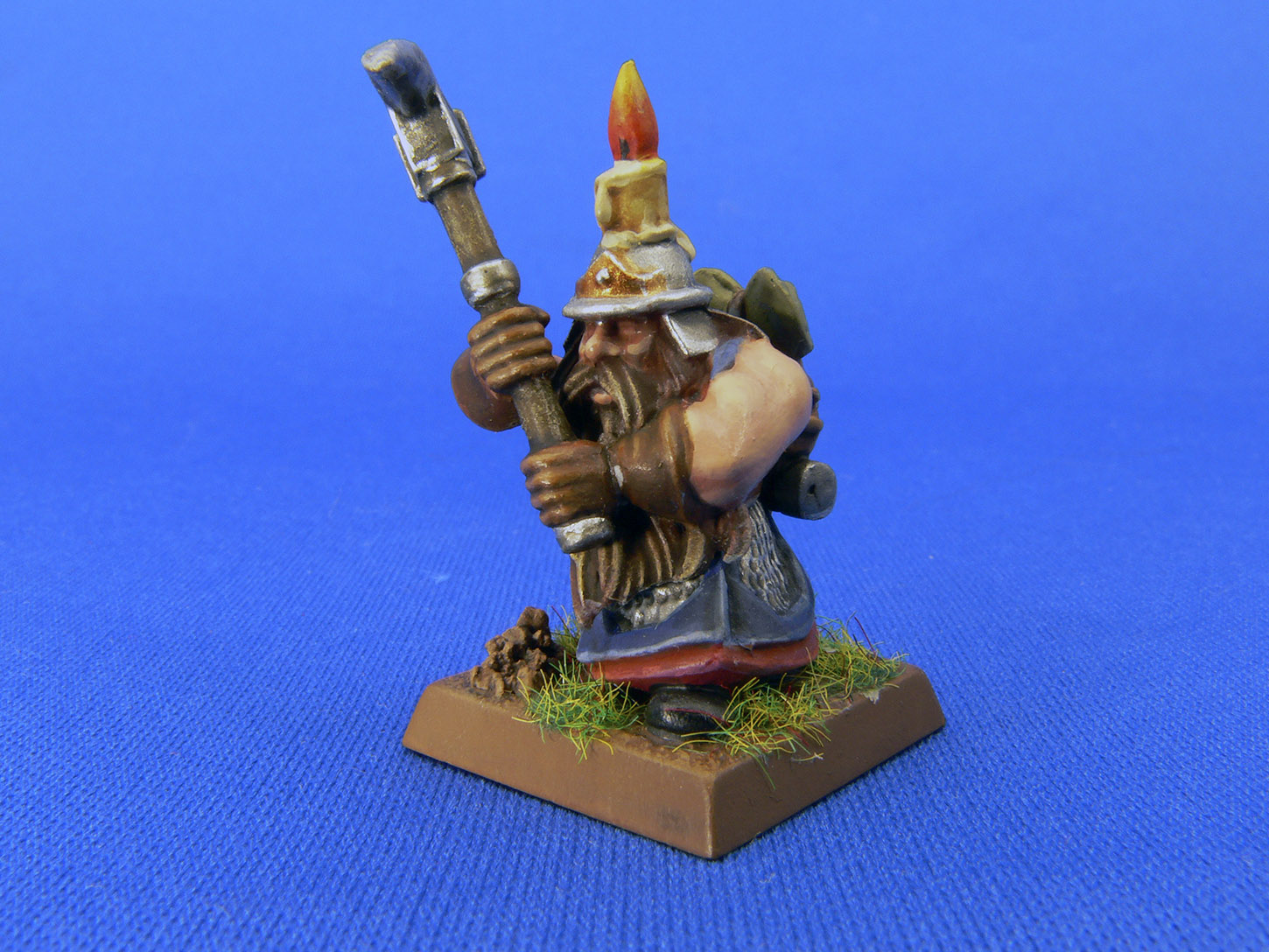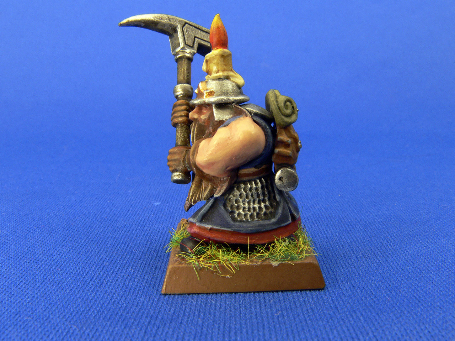 Красить гномов не так уж тяжело, но есть свои сложности. Сначала грунтуем гнома (тамиевской грунтовкой из баллона). Затем красили в базу: бороду, кольчугу, рубашку, оружие и т.д. После этого красили смывкой. Краску и смывку использовали Citadel.