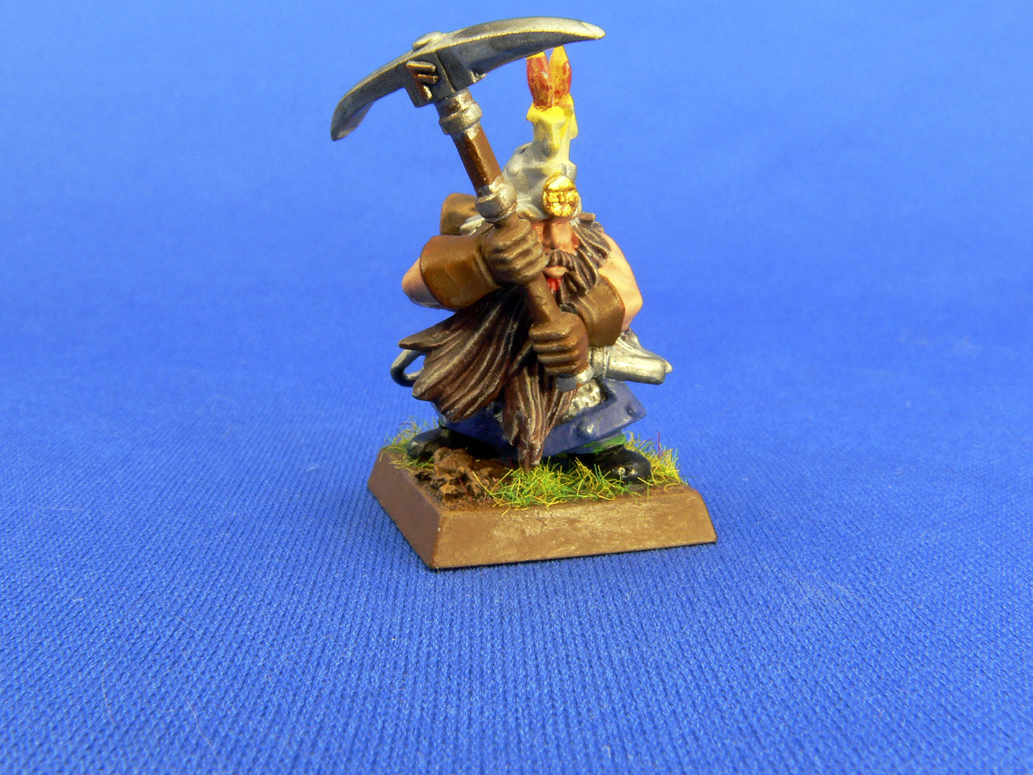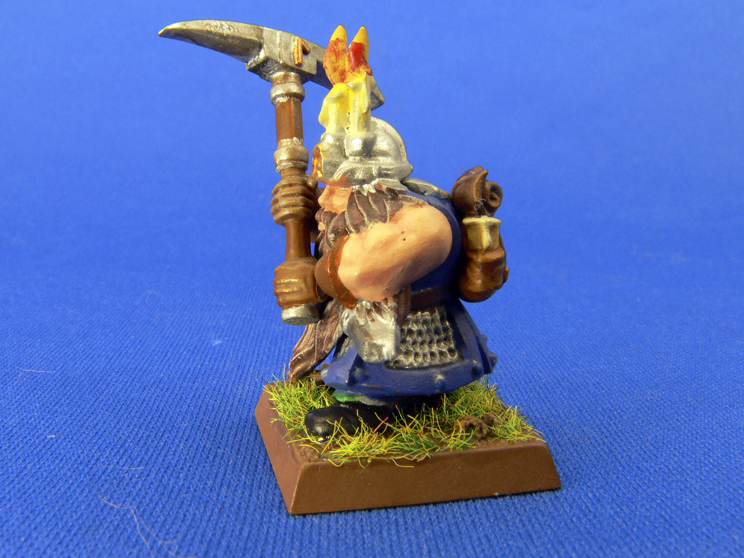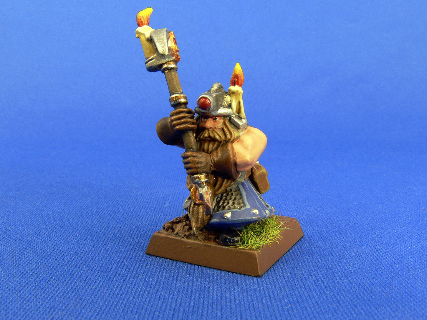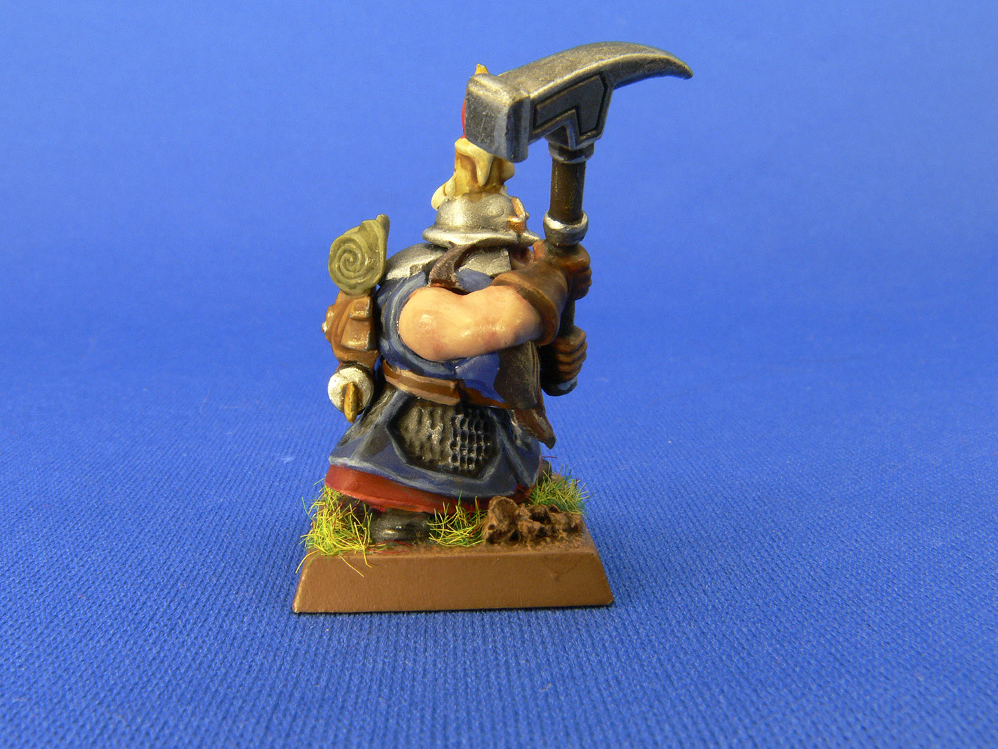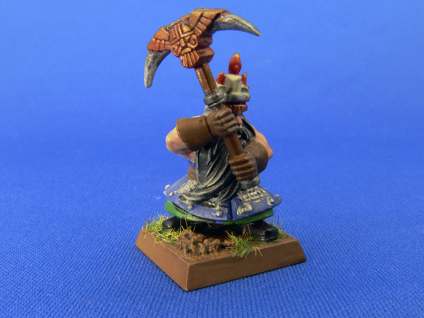 Красить гномов не так уж тяжело, но есть свои сложности. Сначала грунтуем гнома (тамиевской грунтовкой из баллона). Затем красили в базу: бороду, кольчугу, рубашку, оружие и т.д. После этого красили смывкой. Краску и смывку использовали Citadel.