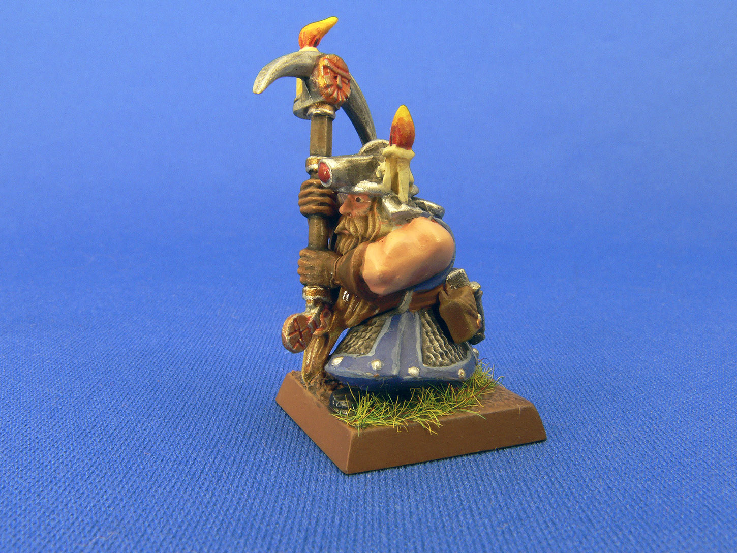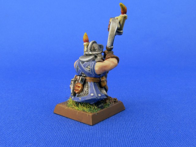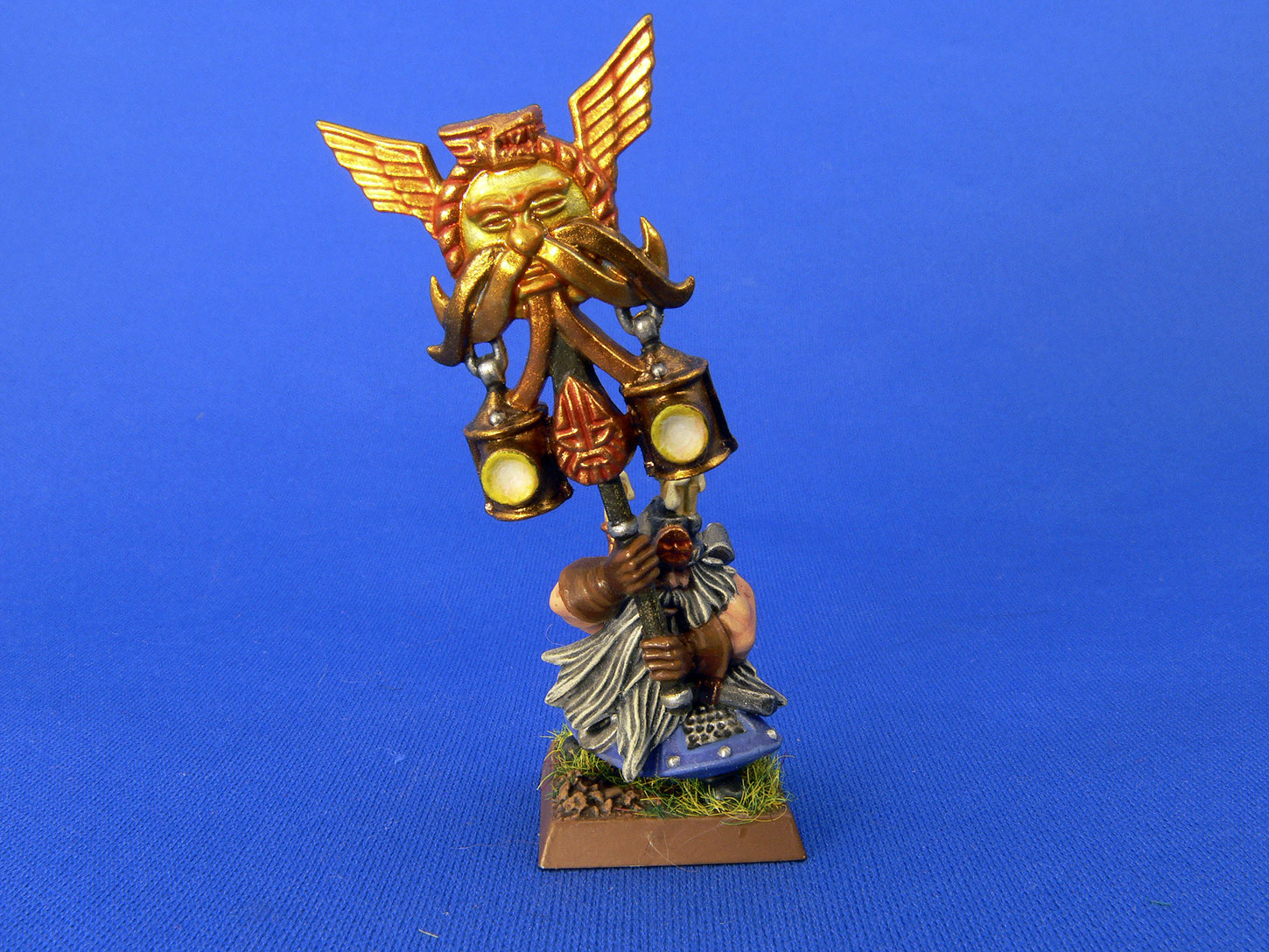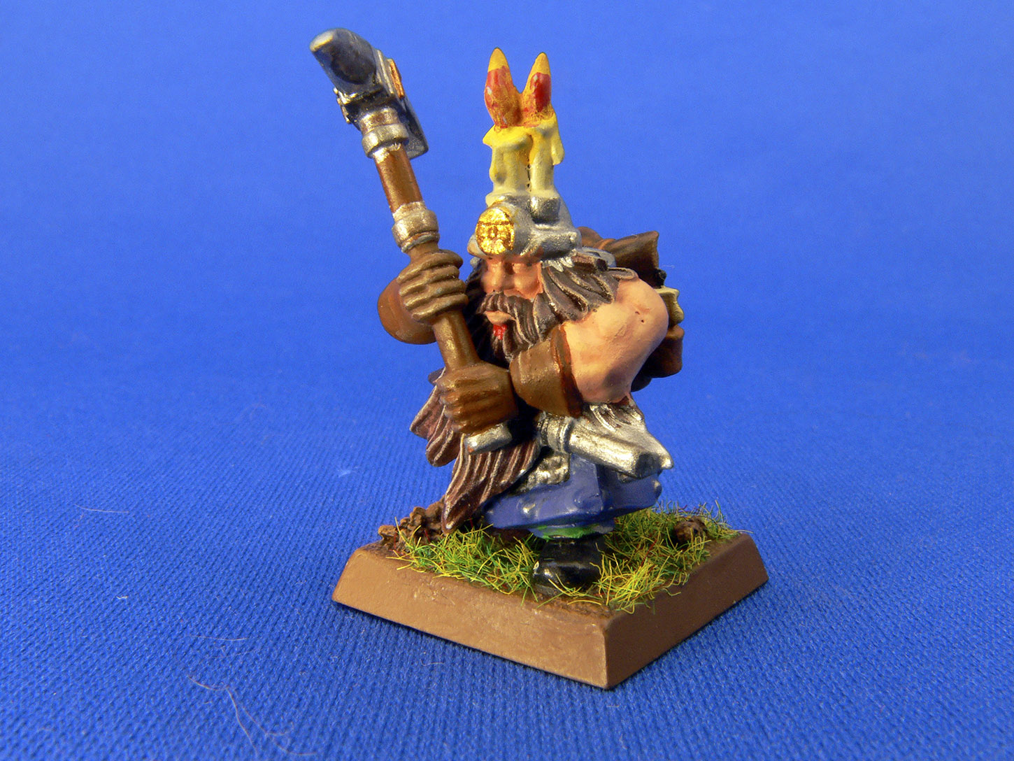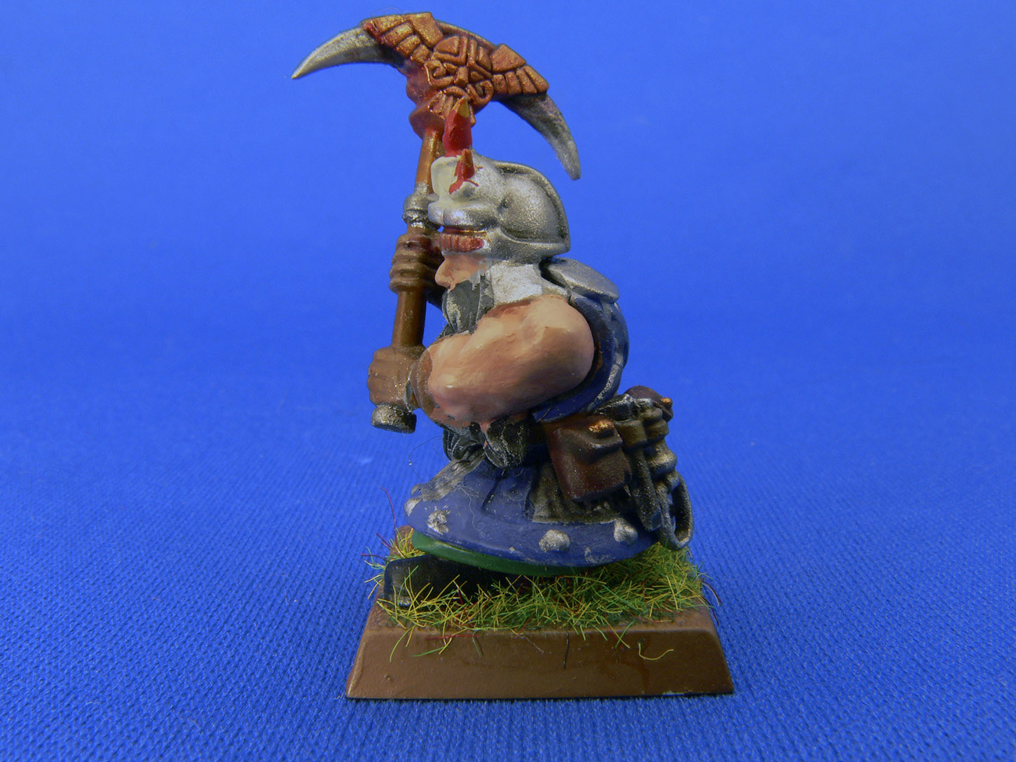 Красить гномов не так уж тяжело, но есть свои сложности. Сначала грунтуем гнома (тамиевской грунтовкой из баллона). Затем красили в базу: бороду, кольчугу, рубашку, оружие и т.д. После этого красили смывкой. Краску и смывку использовали Citadel.