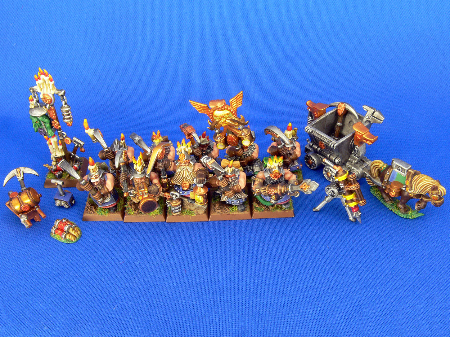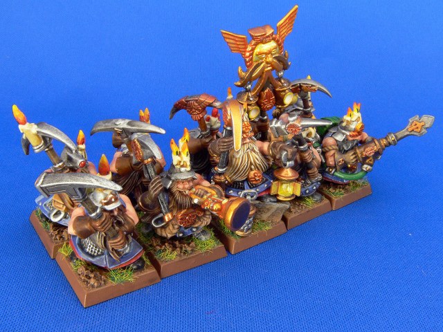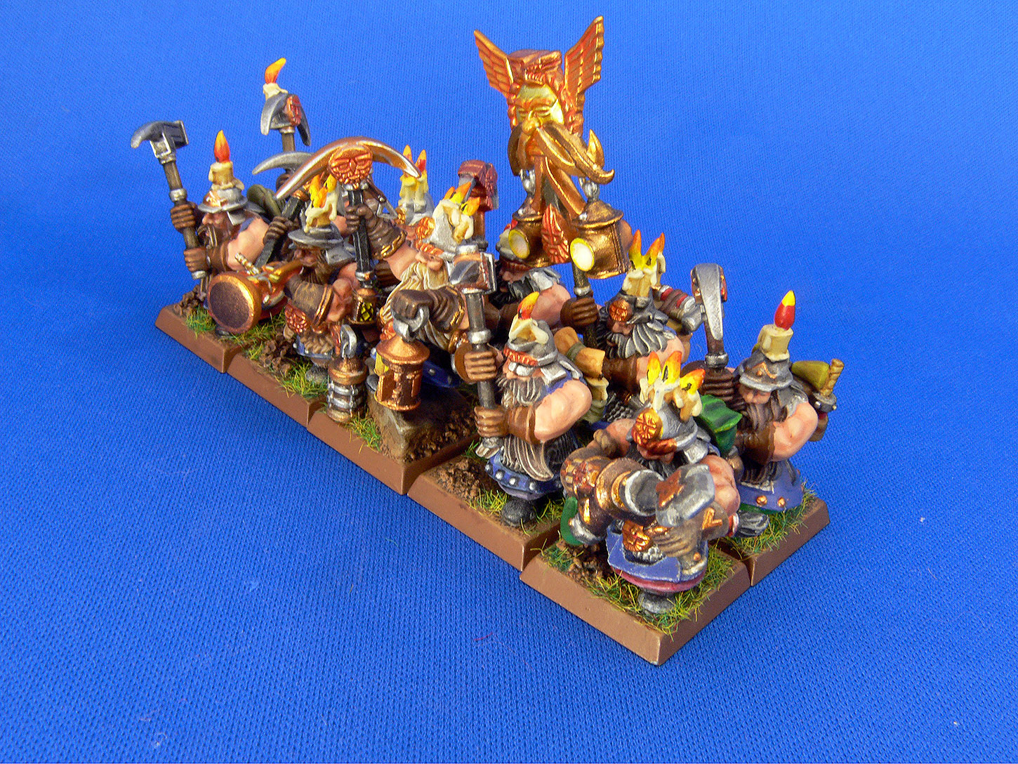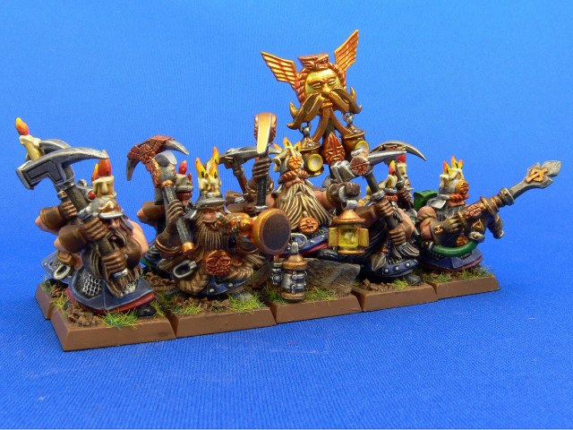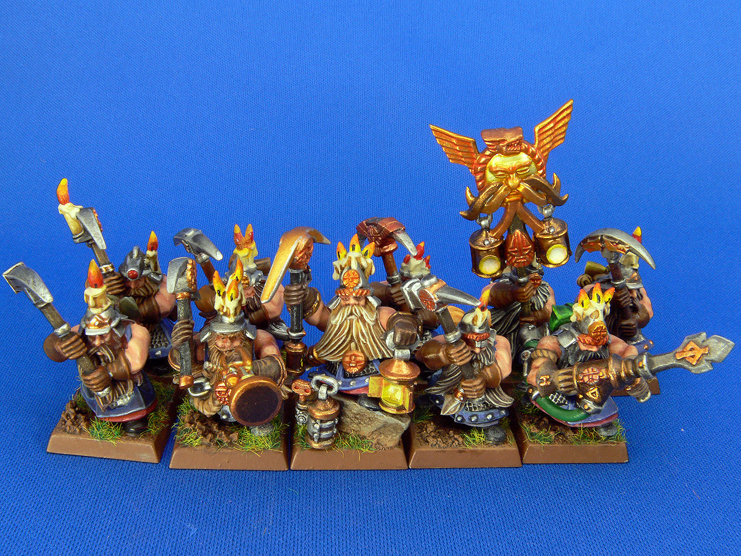 Я покрасил полностью всех гномов, кроме командира, знаменосца, музыканта и еще парочки гномов, которых покрасил папа. Следующий отряд, который мы собираем - Гномы Воины (Dwarf Warriors).
