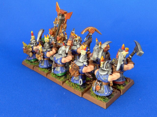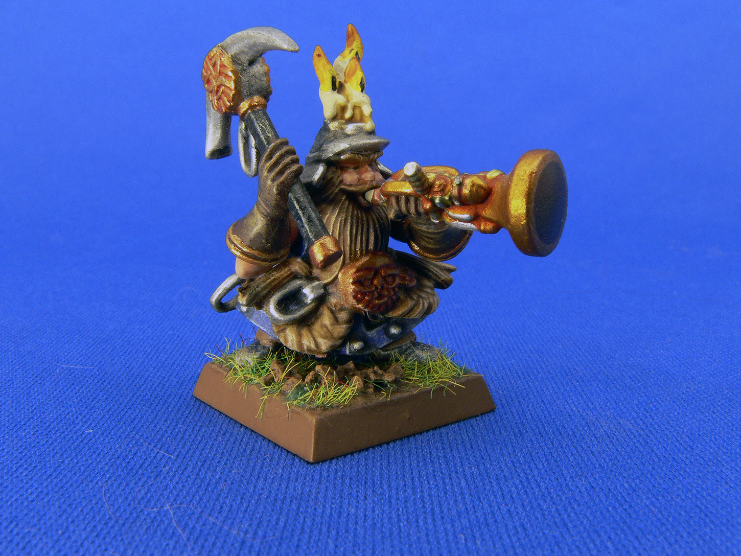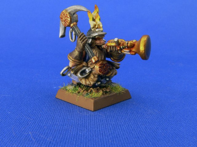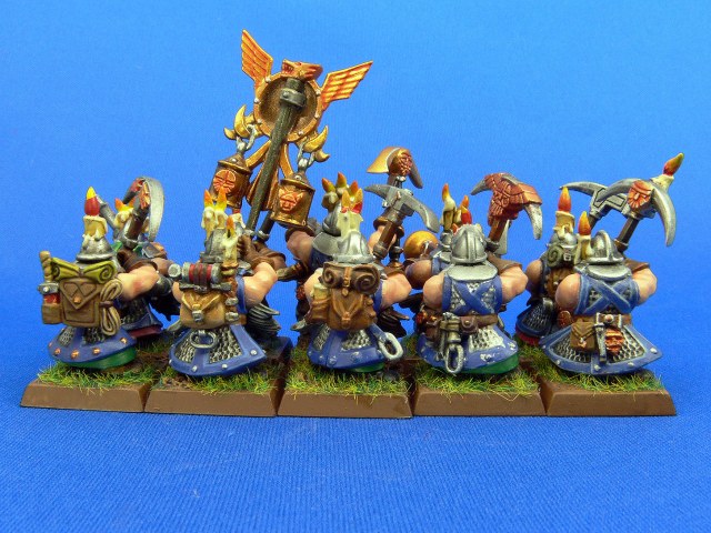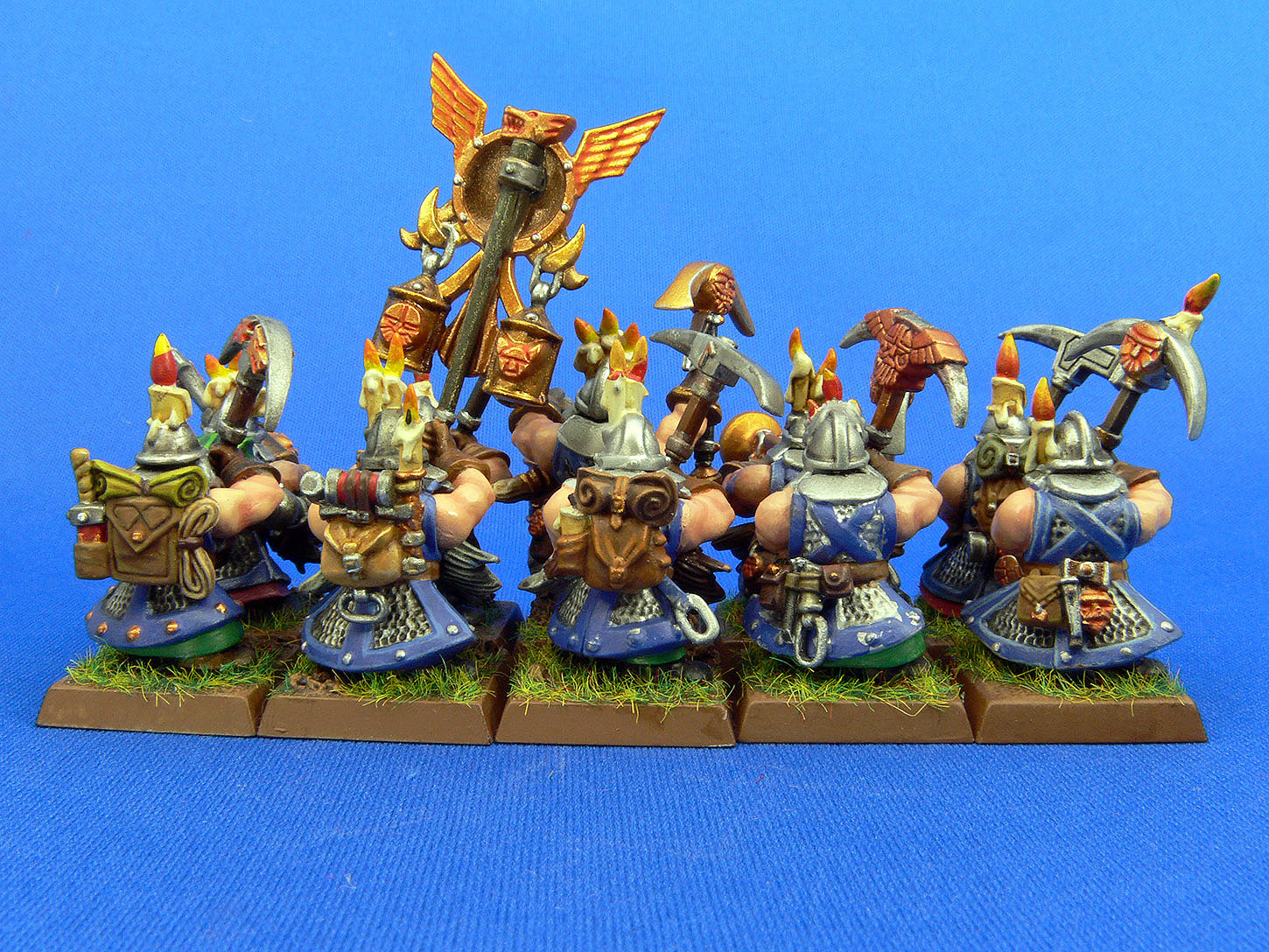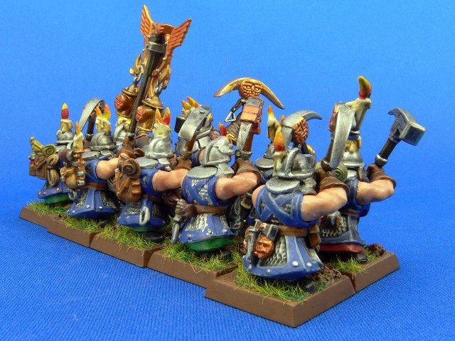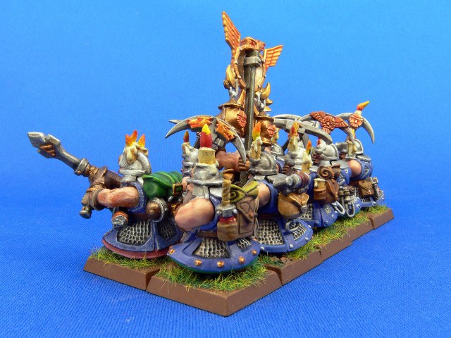 Я покрасил полностью всех гномов, кроме командира, знаменосца, музыканта и еще парочки гномов, которых покрасил папа. Следующий отряд, который мы собираем - Гномы Воины (Dwarf Warriors).