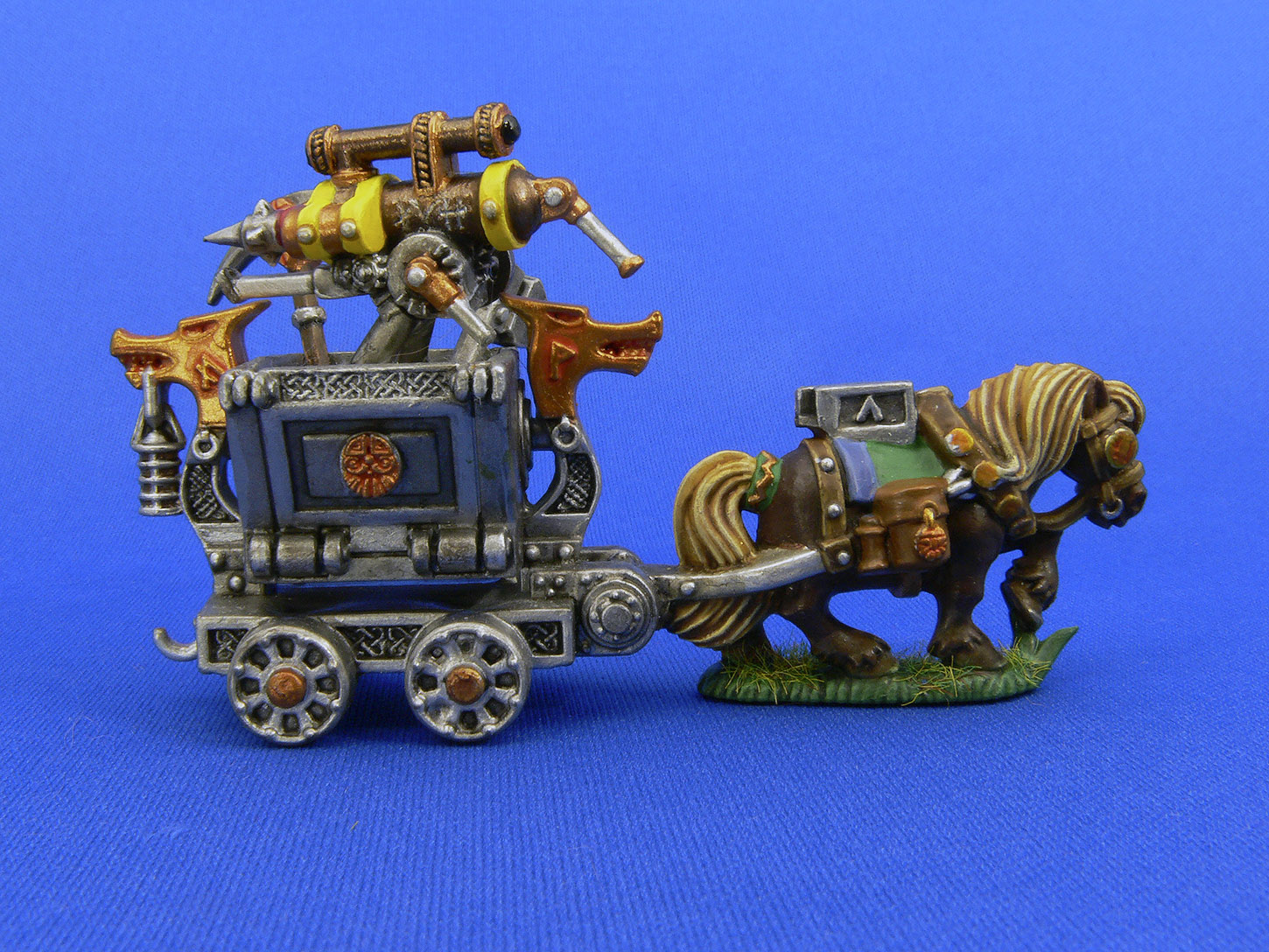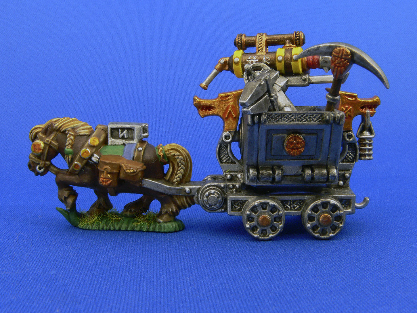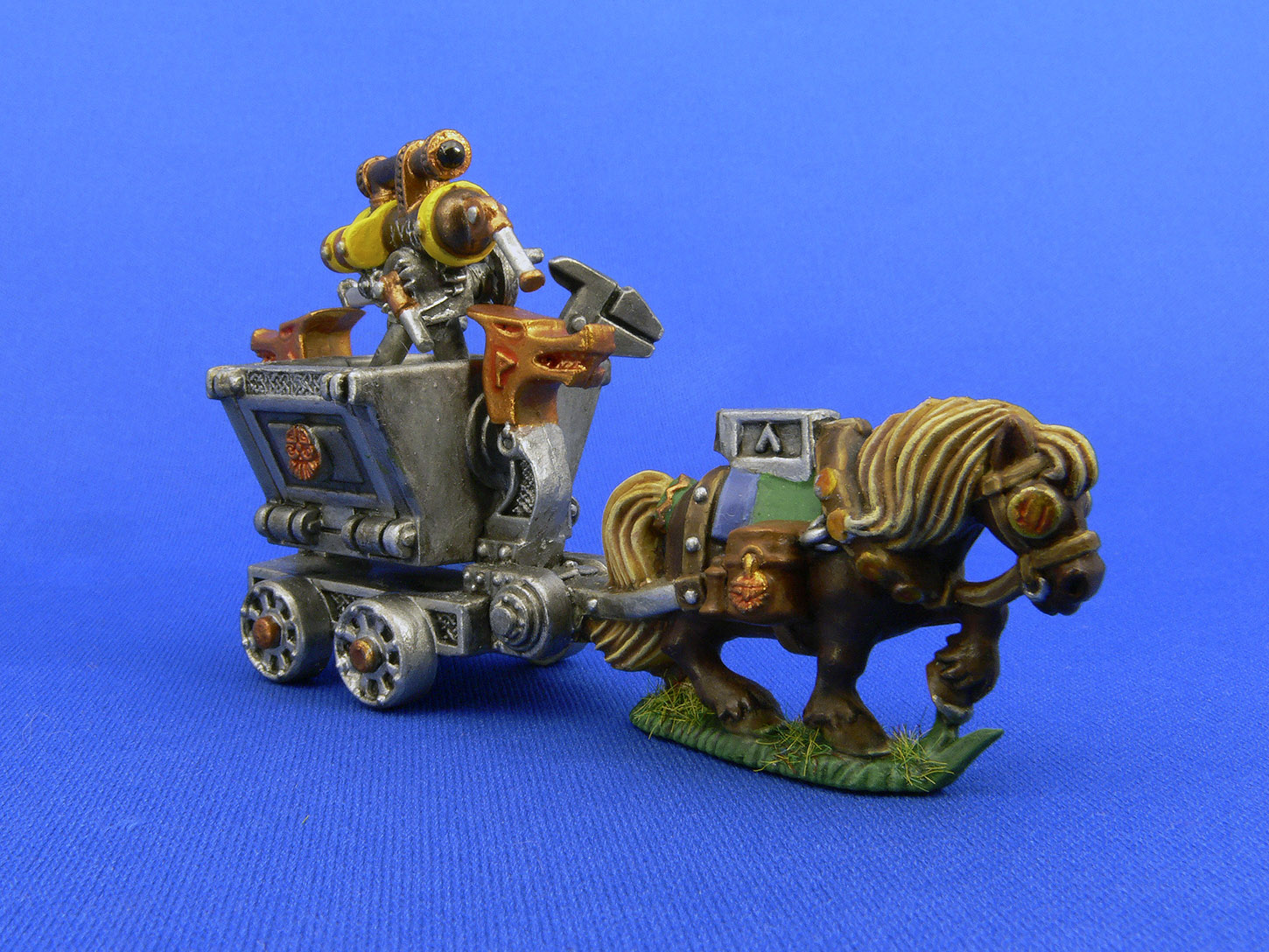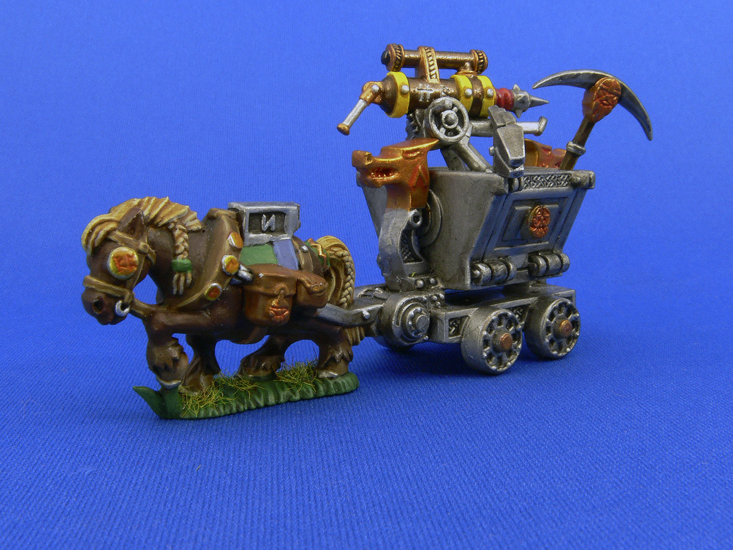 В отряде один из гномов является музыкантом-трубачом, а один - флагоносцем (он может нести флаг армии или штандарт отряда). У этого отряда есть лошадка, которая тащит вагонетку с инструментами, бурильной установкой и со всем гномьим скарбом. У отряда Гномов Рудокопов есть одна важная способность: владея знаниями горных туннелей, во время боя они могут перемещаться через все игровое поле и оказаться в тылу противника!