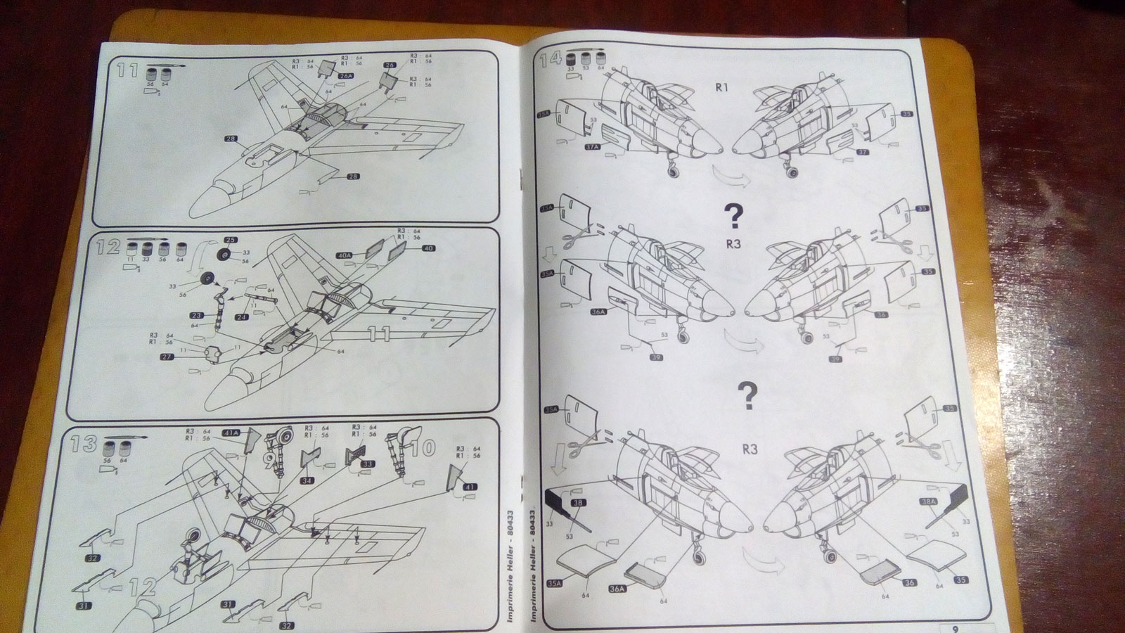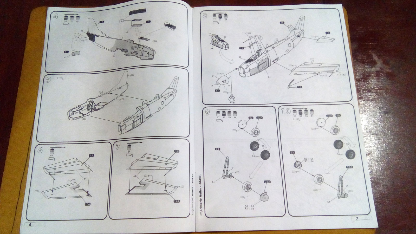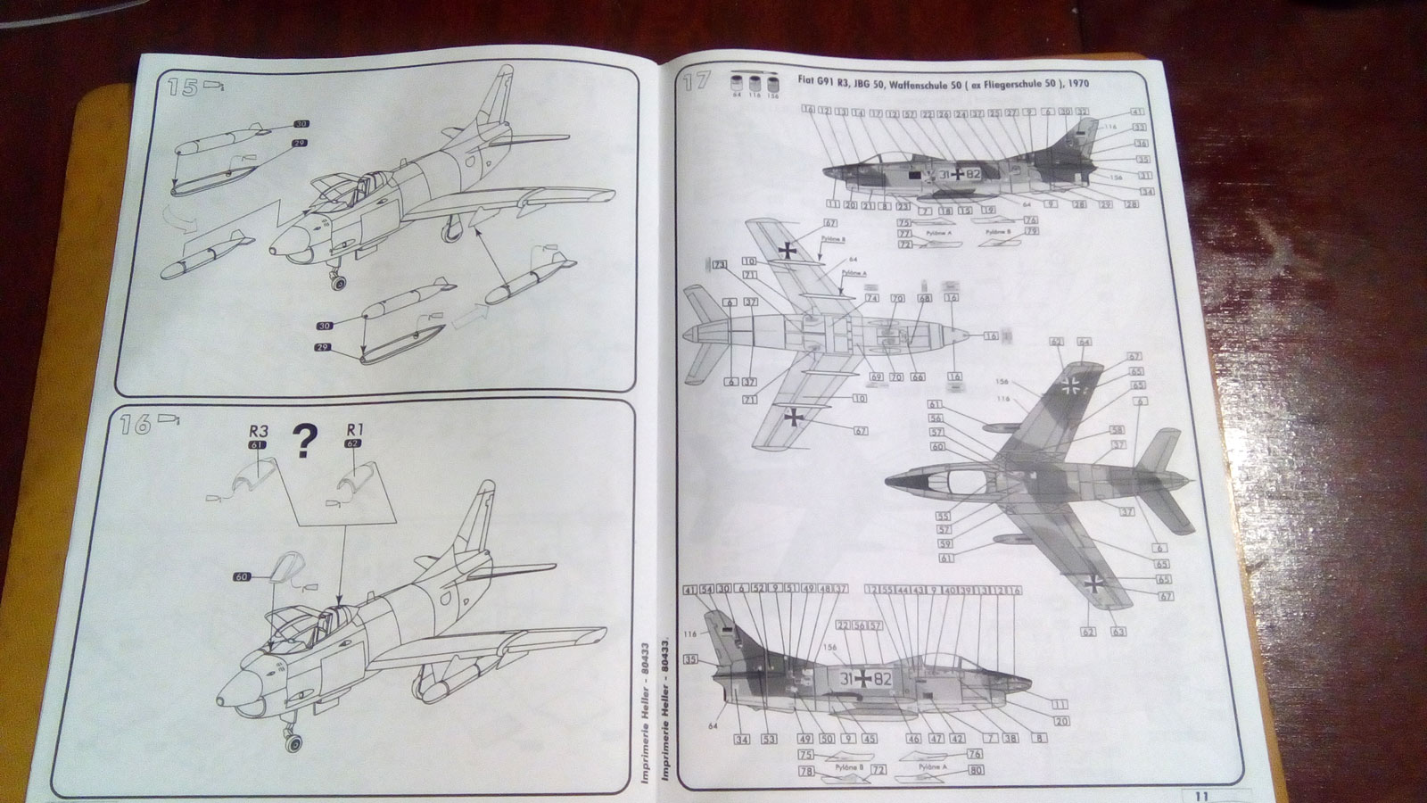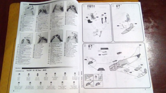 Теперь о модели: Коробка выполнена в картоне с самолетом на обложке. Внутри находится 1 пакет с 3 литниками два из которых выполнены из серого пластика и один из прозрачного (фонари). Далее в боксе находится инструкция выполнена в серых тонах в виде книжки формата А4, стандартный вариант фирмы Heller. Инструкция предлагает нам 3 варианта окраски и обдекаливания.