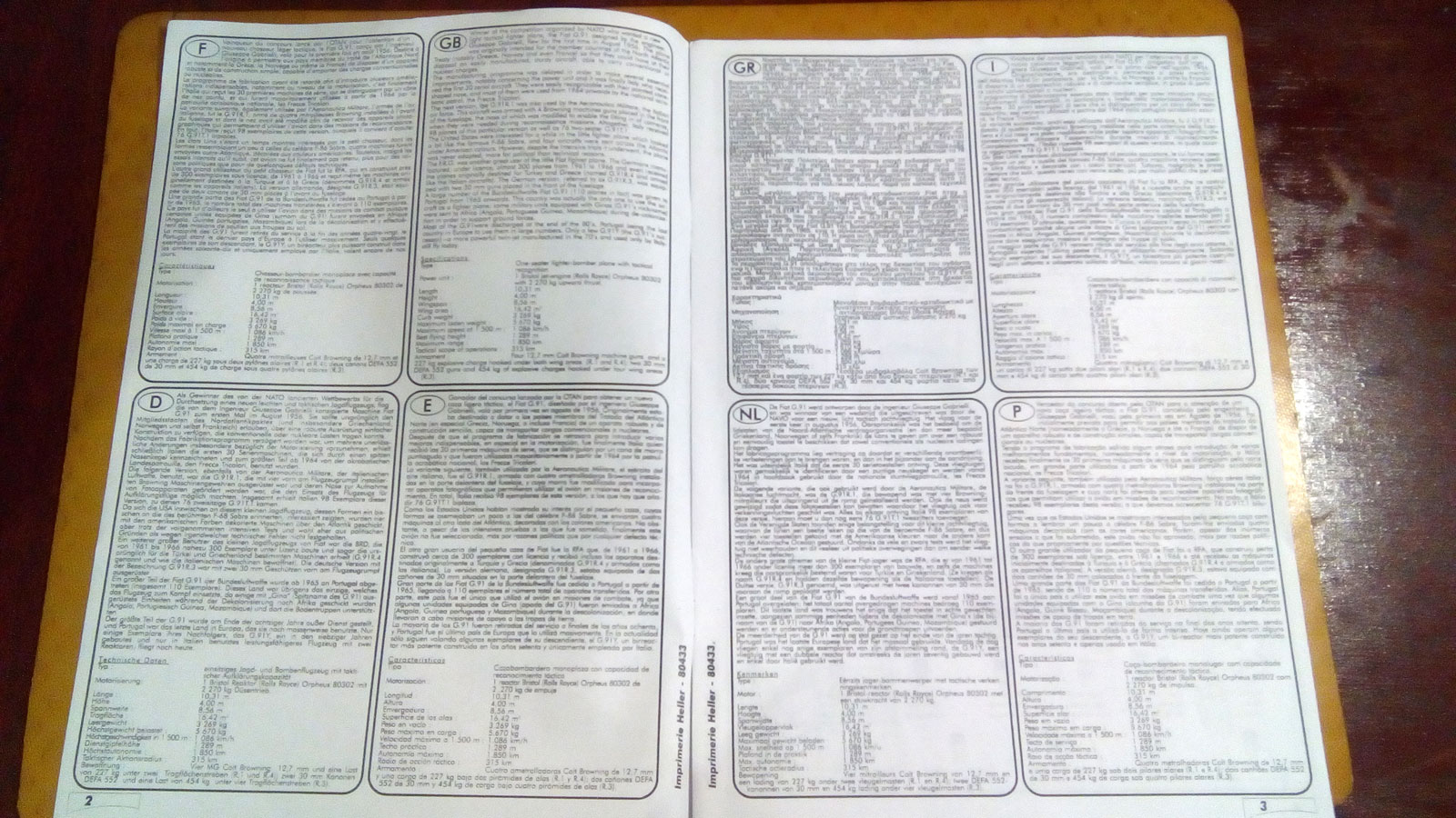 Немного истории из wiki: В 1953 году проект G.91 выиграл конкурс по созданию нового лёгкого истребителя-бомбардировщика НАТО. Его конкурентами в конкурсе были Northrop F-5, Dassault Étendard, Sud-Est Baroudeur, Aerfer Sagittario и Breguet Taon. G.91 совершил первый полёт 9 августа 1956 года. Впервые был принят на вооружение в 1961 году ВВС Италии. В 1962 году взят на вооружение ВВС Германии. Чуть позже был принят и ВВС Португалии. Греция и США также рассматривали возможность закупки этих самолётов, но до реальной сделки дело так и не дошло. До реформы американской армии 1966 года (когда все армейские самолёты были переданы ВВС), Армия США планировала использовать этот самолёт в локальных войнах. Самолёт производился 17 лет (производство было остановлено в 1977 году), всего построено 770 самолётов, включая лицензионное производство в ФРГ (это был первый боевой самолёт, закупленный Германией после Второй мировой войны). Последний самолёт был списан в 1995 году.