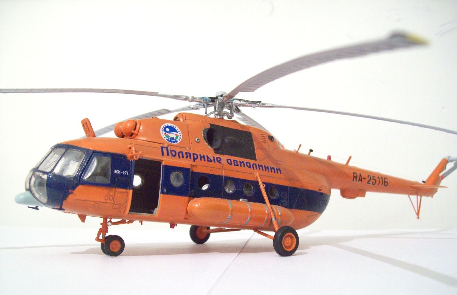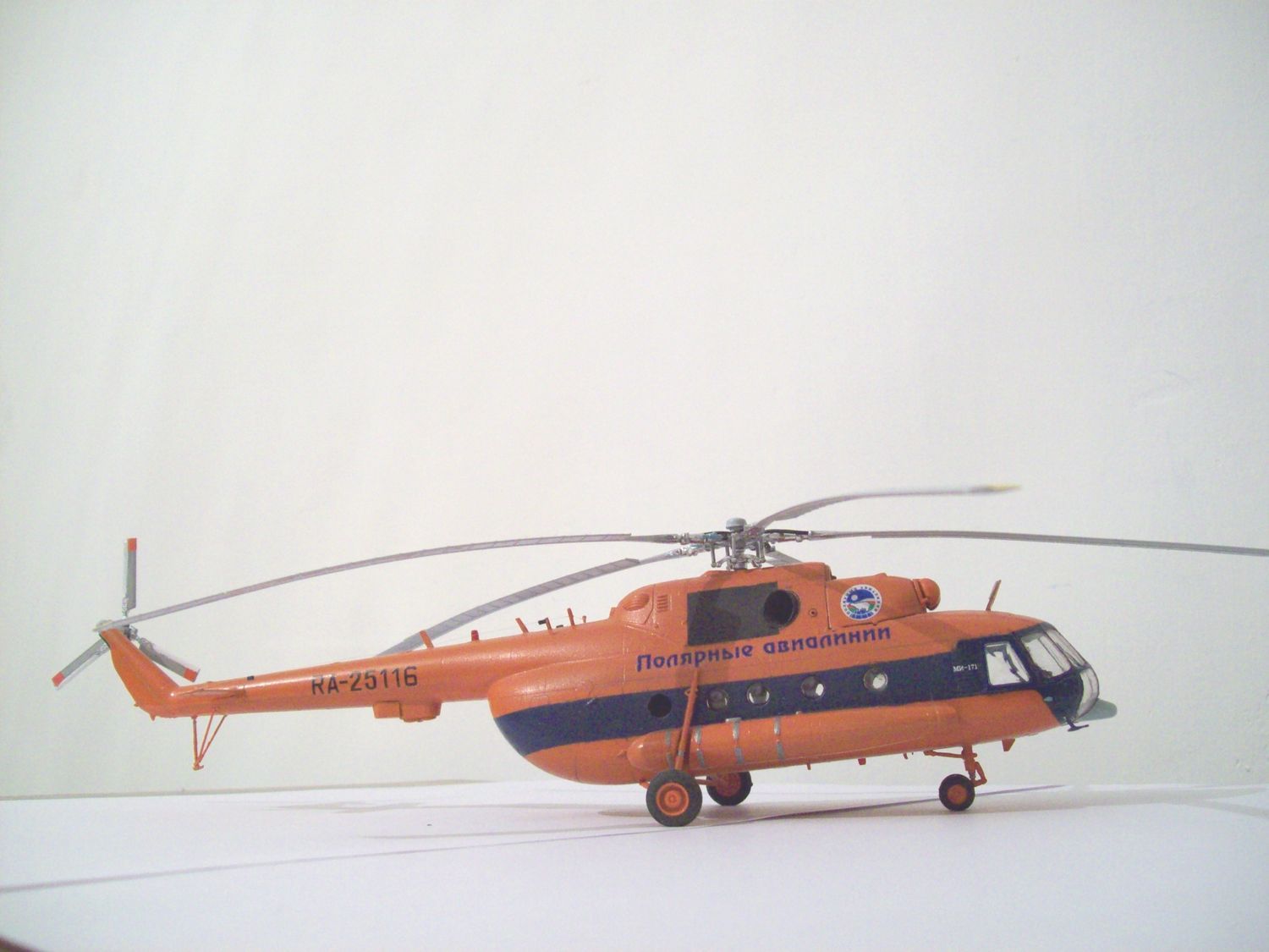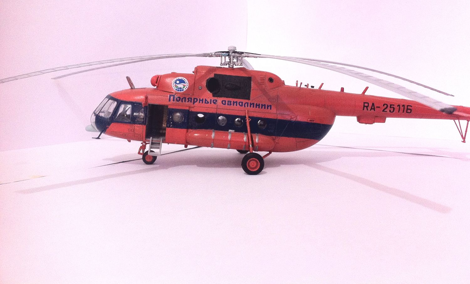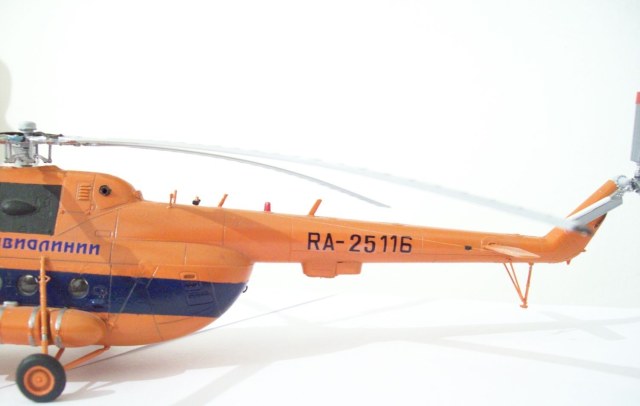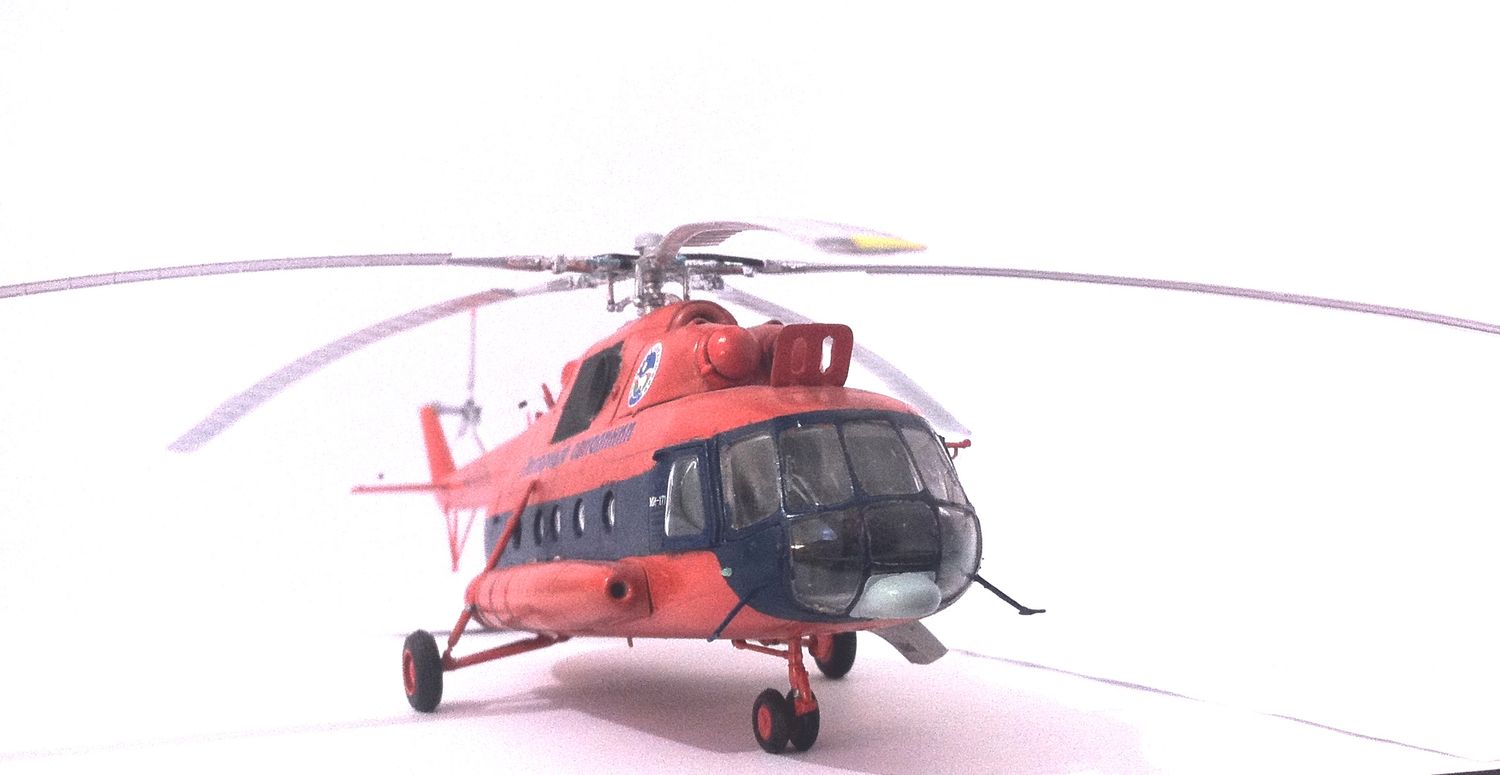 Здравствуйте уважаемые коллеги хочу представить на Ваш суд свою первую осознанную модель))) Восьмерку люблю с детства, очень много воспоминаний связано с этим вертолетом. Набор всем известен, считаю его самым оптимальным в указанном масштабе, так как альтернативны никакой. Модель в основе из коробки с небольшими доработками: колеса "Экипаж" очень понравились, тросовые антенны, бано выточены вручную, из красных и зеленых прозрачных кусочков пластика, декаль "Бегемот" окрашена модель краской спрей фирмы "Тамия" в мат часть не углублялся, собрал как душе было угодно, готов выслушать Ваши ценные советы!!! Прошу прощения за фотографии, никак не могу поймать фокус, хваленая камера iPhone не желает этого делать(