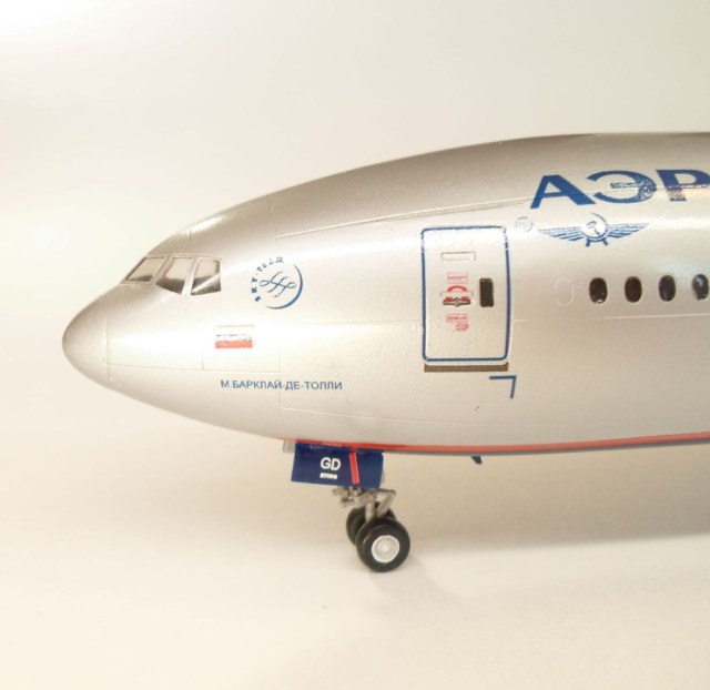 Дмитрий, не считаю надпись задранной, нижняя граница АЭРОФЛОТ у прототипа на уровне дверей, я это пытался соблюсти и отчасти это удалось, может на 1,5мм выше, что не считаю критичным для 144 масштаба. С фото прототипа я порой работаю не по одному месяцу, так что думаю не стоит меня в этом упрекать.