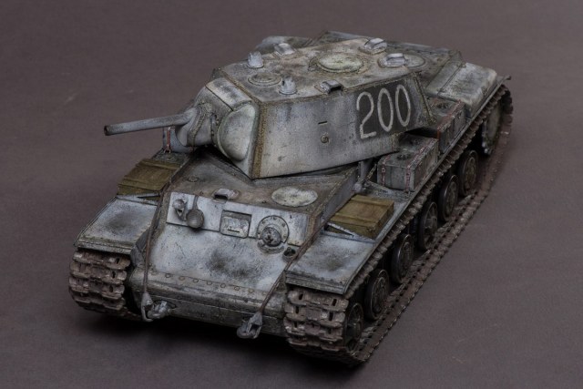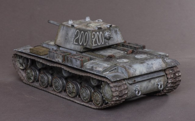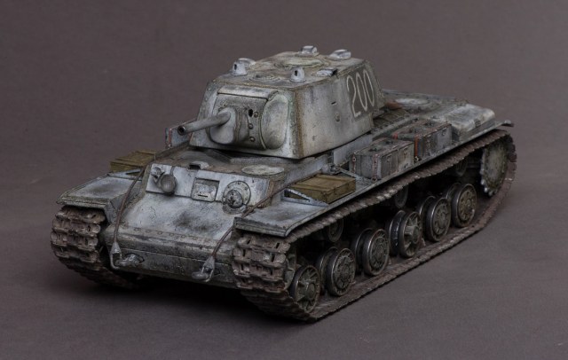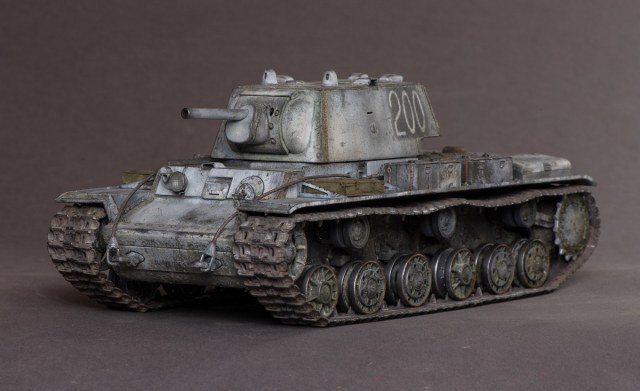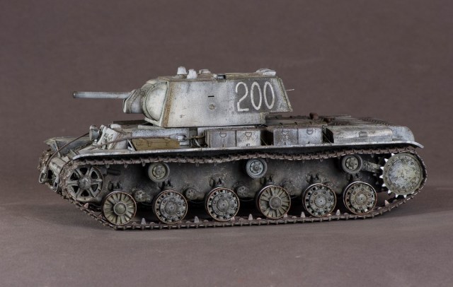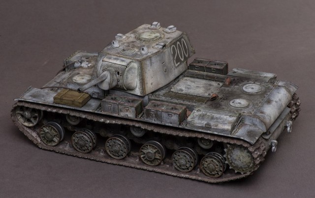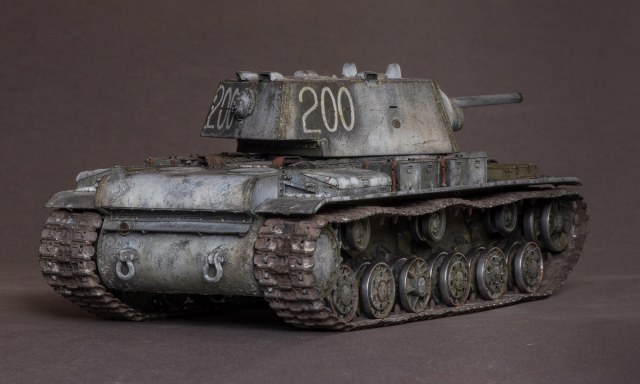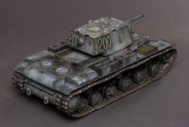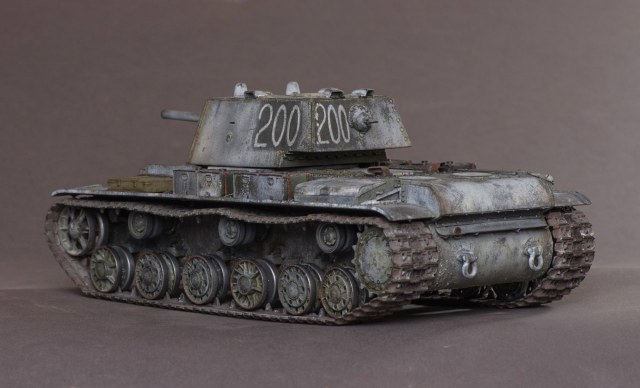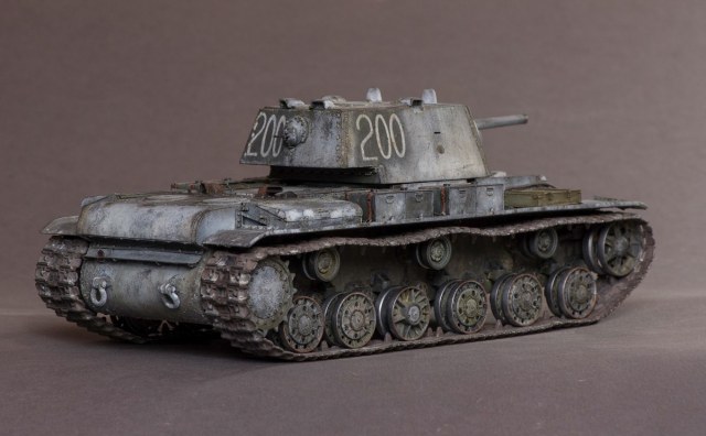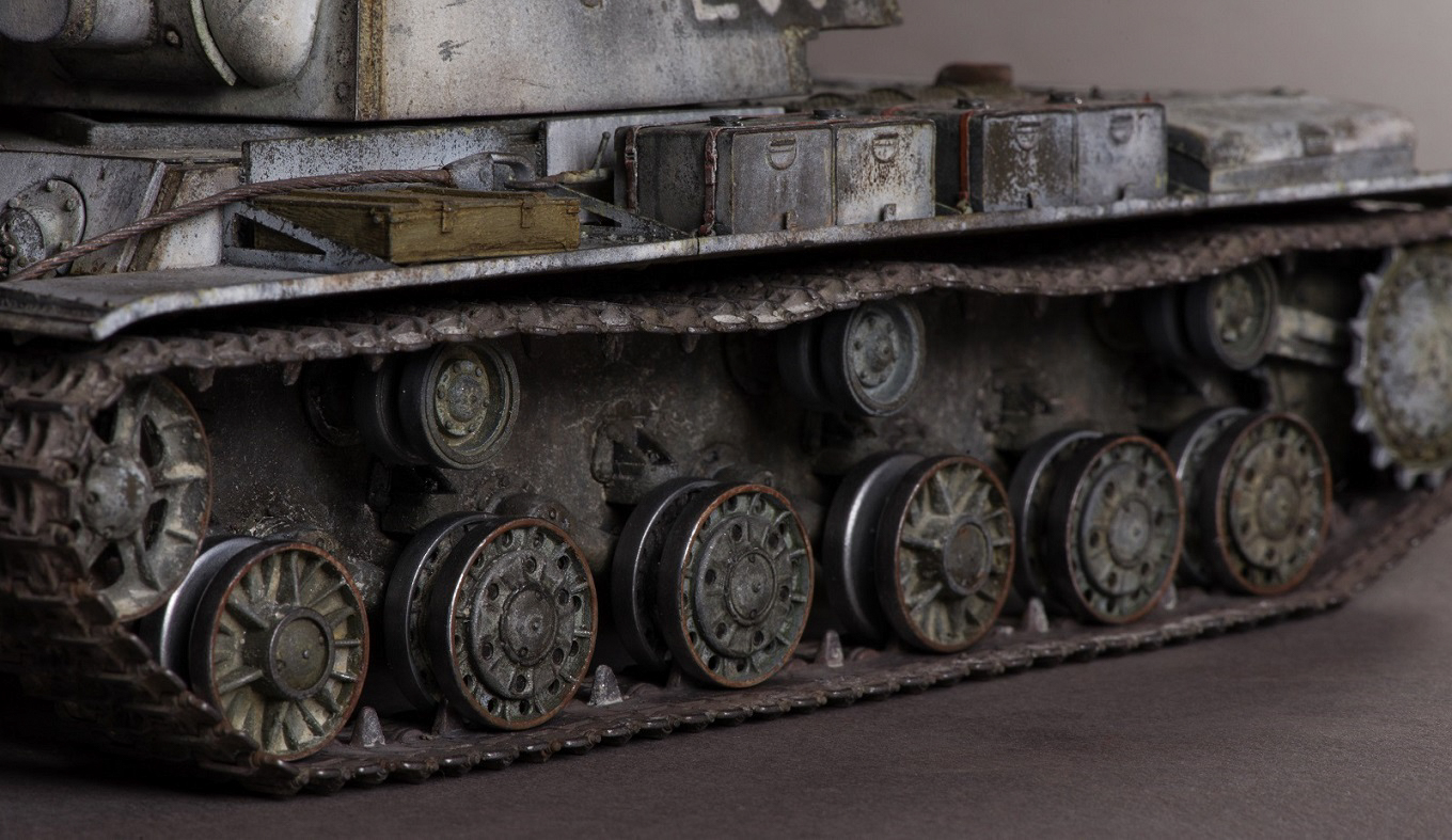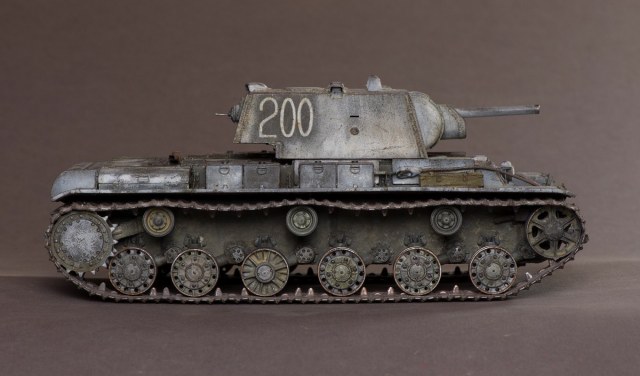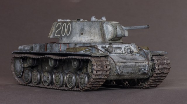 Доброго времени форумчанам и с праздниками! Завершил тут ещё один проект - КВ-1 выпуска Ленинградского Кировского завода с упрощенной башней завода №371 в период боёв за блокадный Ленинград. Ранее я уже строил подобную модель, но то было давненько и теперь подошёл уже с более серьёзным подходом к матчасти и сборке-окраске. Согласно пожеланиям человека, для которого модель строилась, были добавлены коробчатые топливные баки, несколько "челябинских" катков обр. 1942 г. и гусеницы заменены на металлические обр. 1942 г. с полугребневыми траками. По доработкам постараюсь вкратце отразить:
