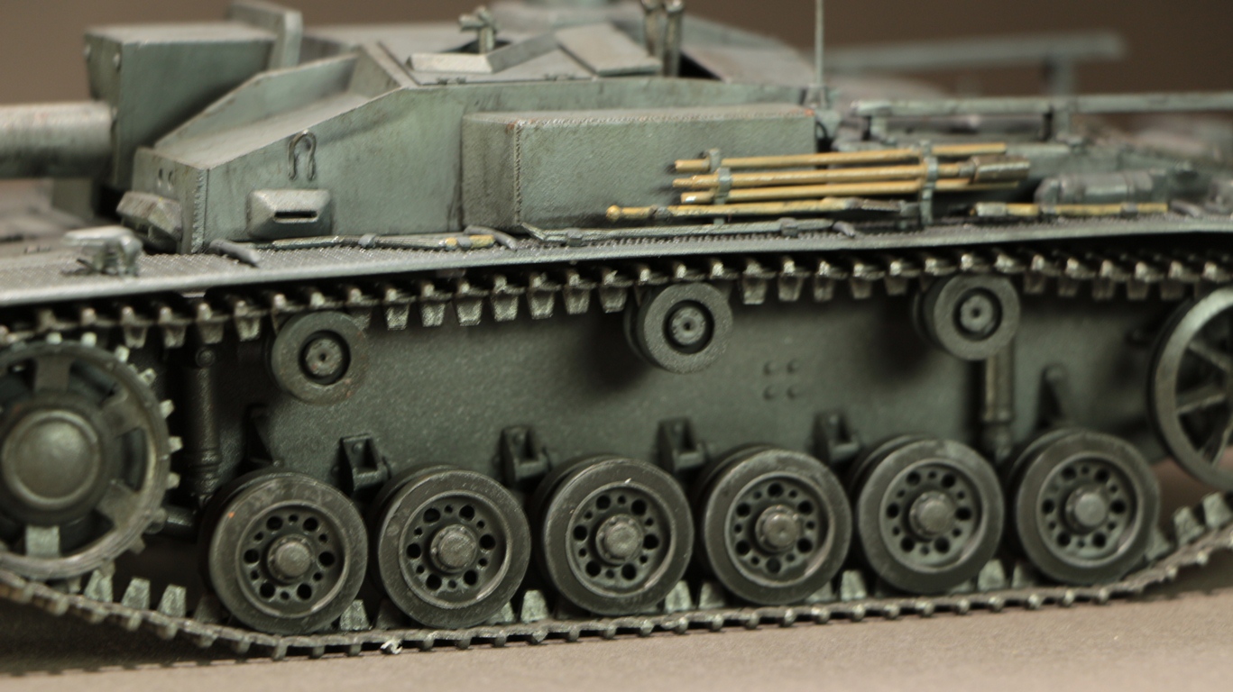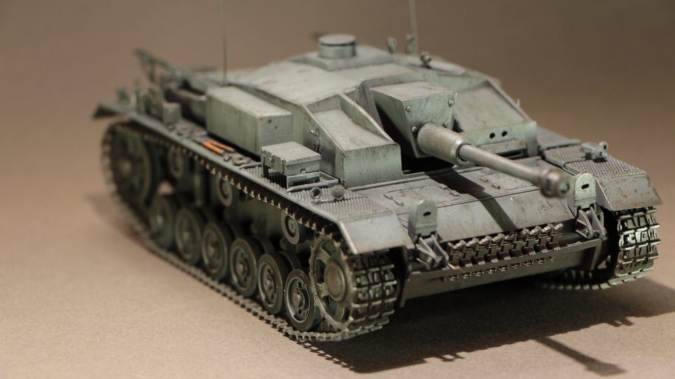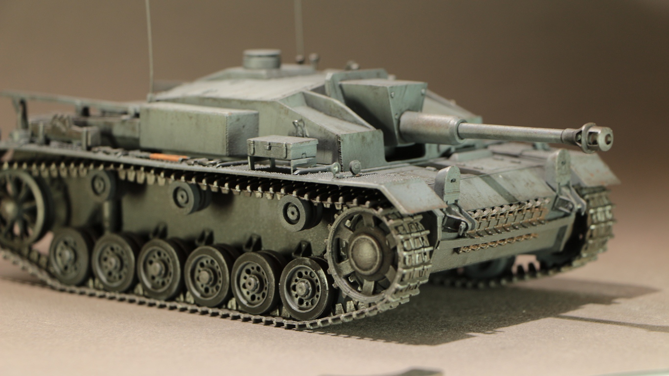 Модель данного Штуга относиться к модификации F, таких машин было построено 366 штук с марта по сентябрь 1942 (номера шасси 91035-910400) .