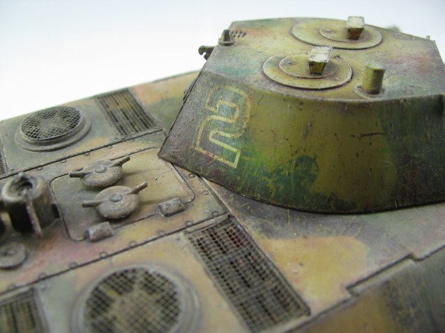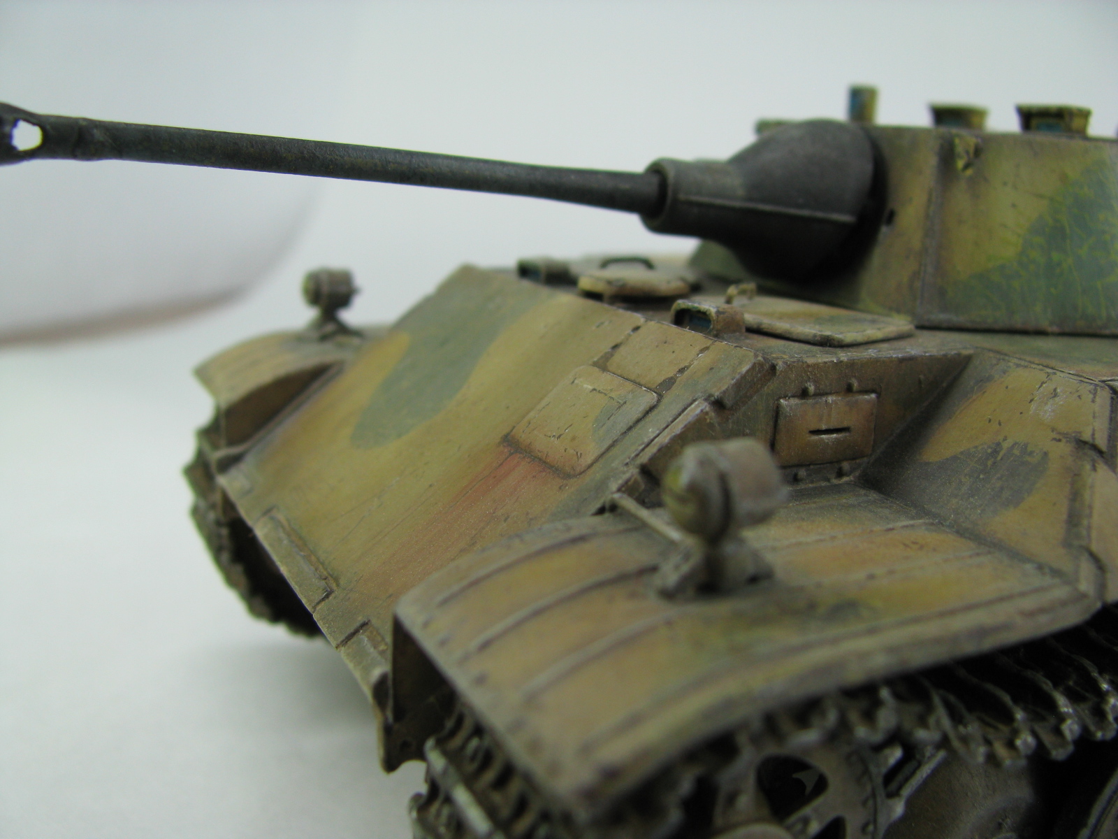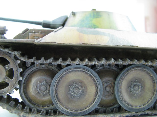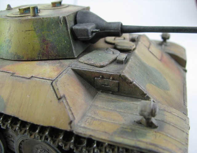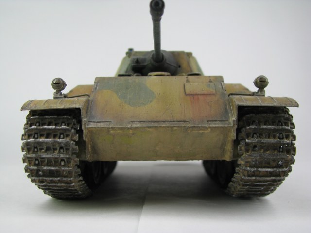 Может на фото так получается,НО камок на башне немного отличается по цвету.Учитывая длину траков-провис спереди,как по мне,не очень реалистично,а выхлопухи толстоваты и цветом не выделены.В целом работа понравилась,покраска оживляет,царапины и следы эксплуатации-прям здорово выглядят.С уважением
