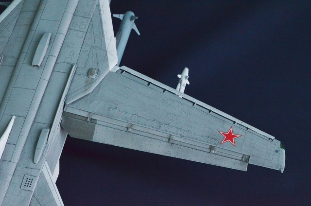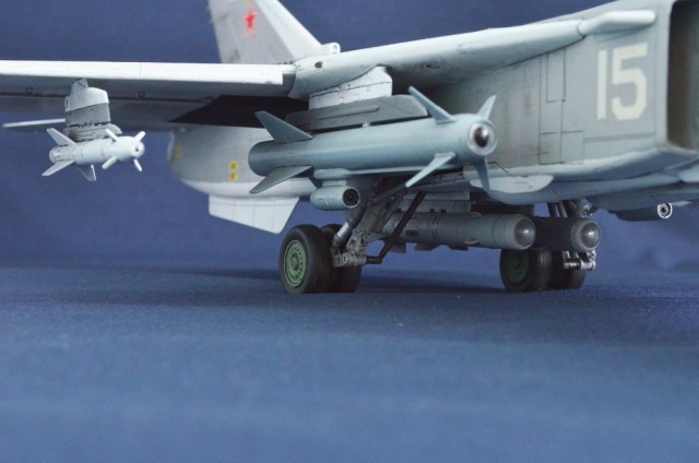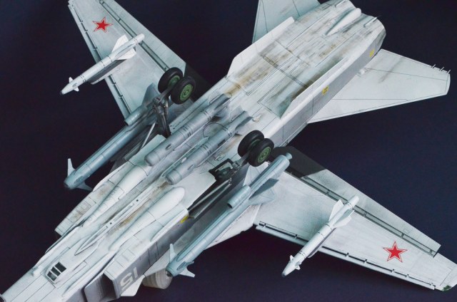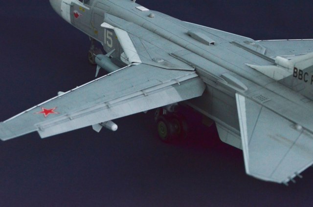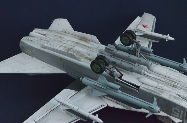 Хорошее начало года! Модель очень впечатляет и выглядит весьма реалистично, цвета весьма похожи на реальные. Потёки на брюхе тоже в тему. Один вопрос: если самолёт несёт ракеты Х-59, то разве не должен к ним быть подвесной контейнер управления?