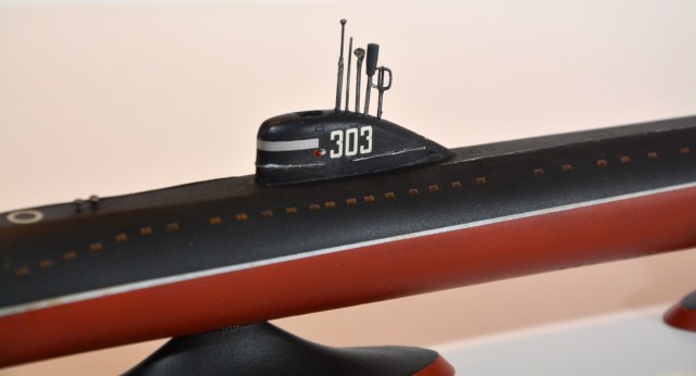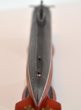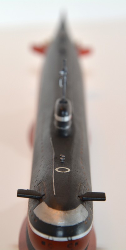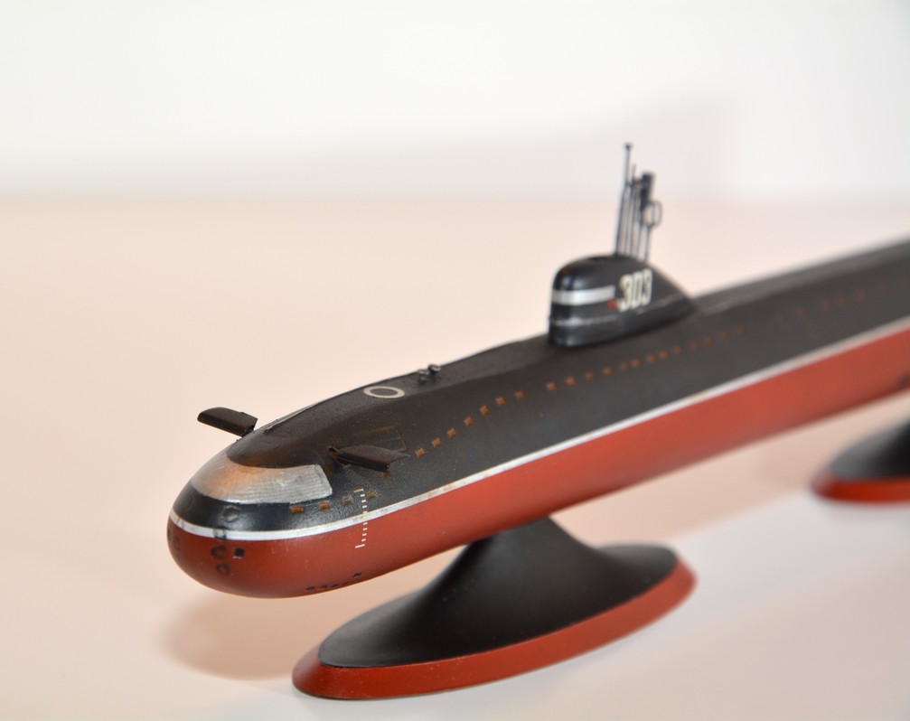 Делал подобную лодку ,только немного дорабатывал да набор предлагает два проекта ,лично я делал подлодку К-8 погибшую в Бискайском заливе из за пожара в центральном посту и посту ГЭУ во время маневров океан ,суть в том что у лодки передняя часть рубки отличалась от обоих проектов - она была под углом ,а не прямая