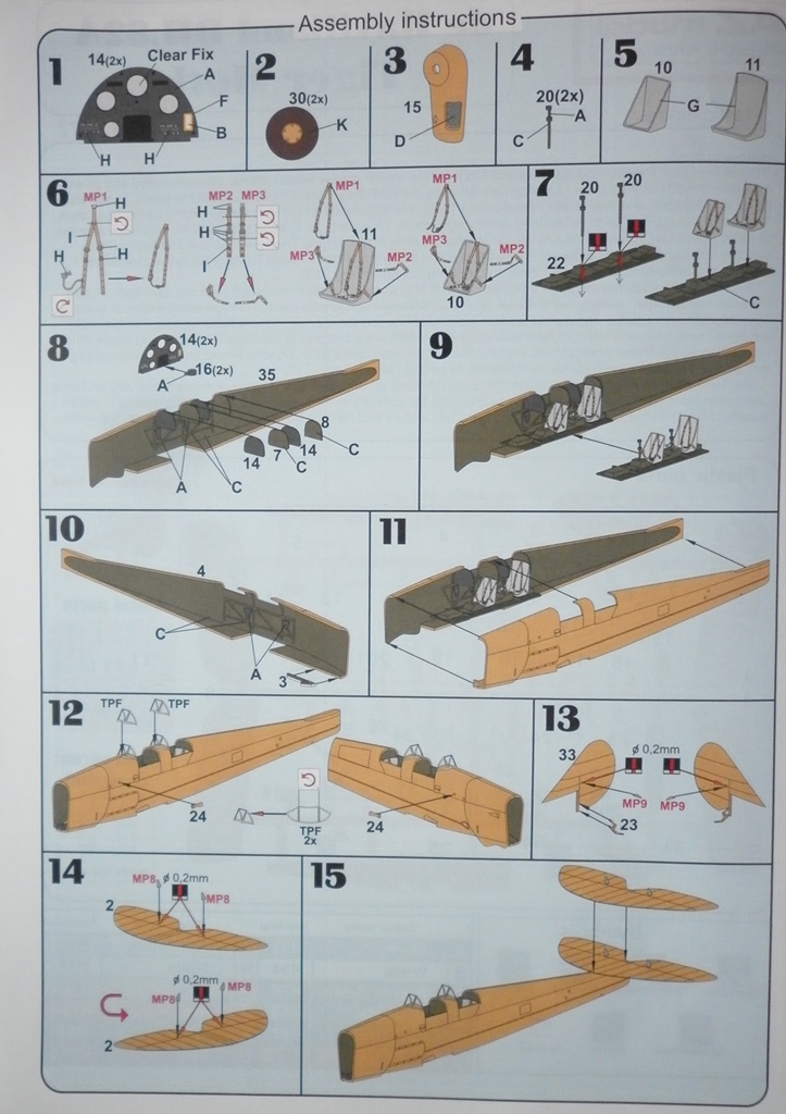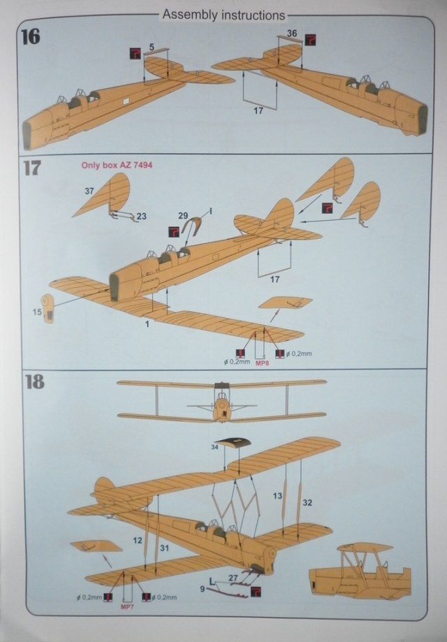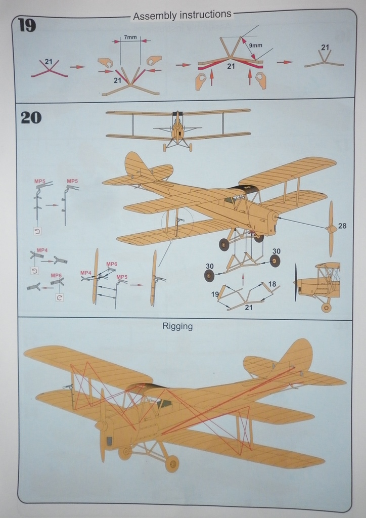 Инструкция ( для этой модели их две - стандартная для "Тайгер мотов" и индивидуальная для "королевы пчел". ) Цветная , на мелованной бумаге с подробнейшим описанием процесса сборки и даже с трассировкой расчалок... - идеал.
