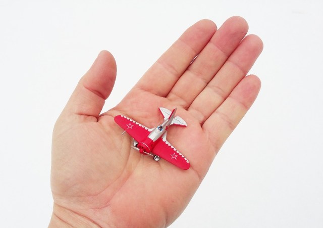 Яркая, красивая модель Ишачка. О масштабе догадался увидев самолет на ладони.