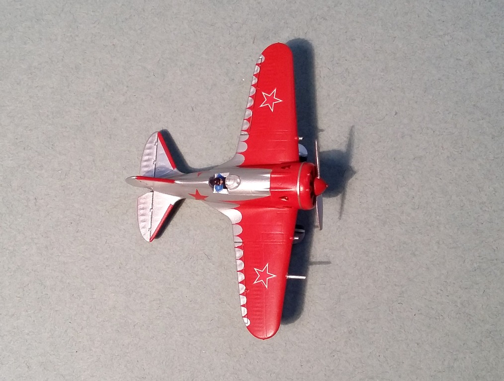 Художник, что рисовал коробку, видимо глядел на фото этого И-16 с выставки в Милане, да немного решил пофантазировать. А модель-то всё равно эффектно выглядит.