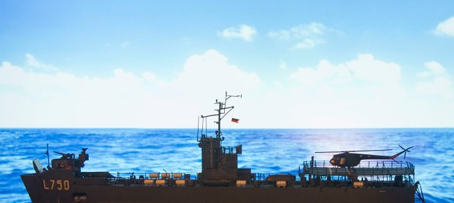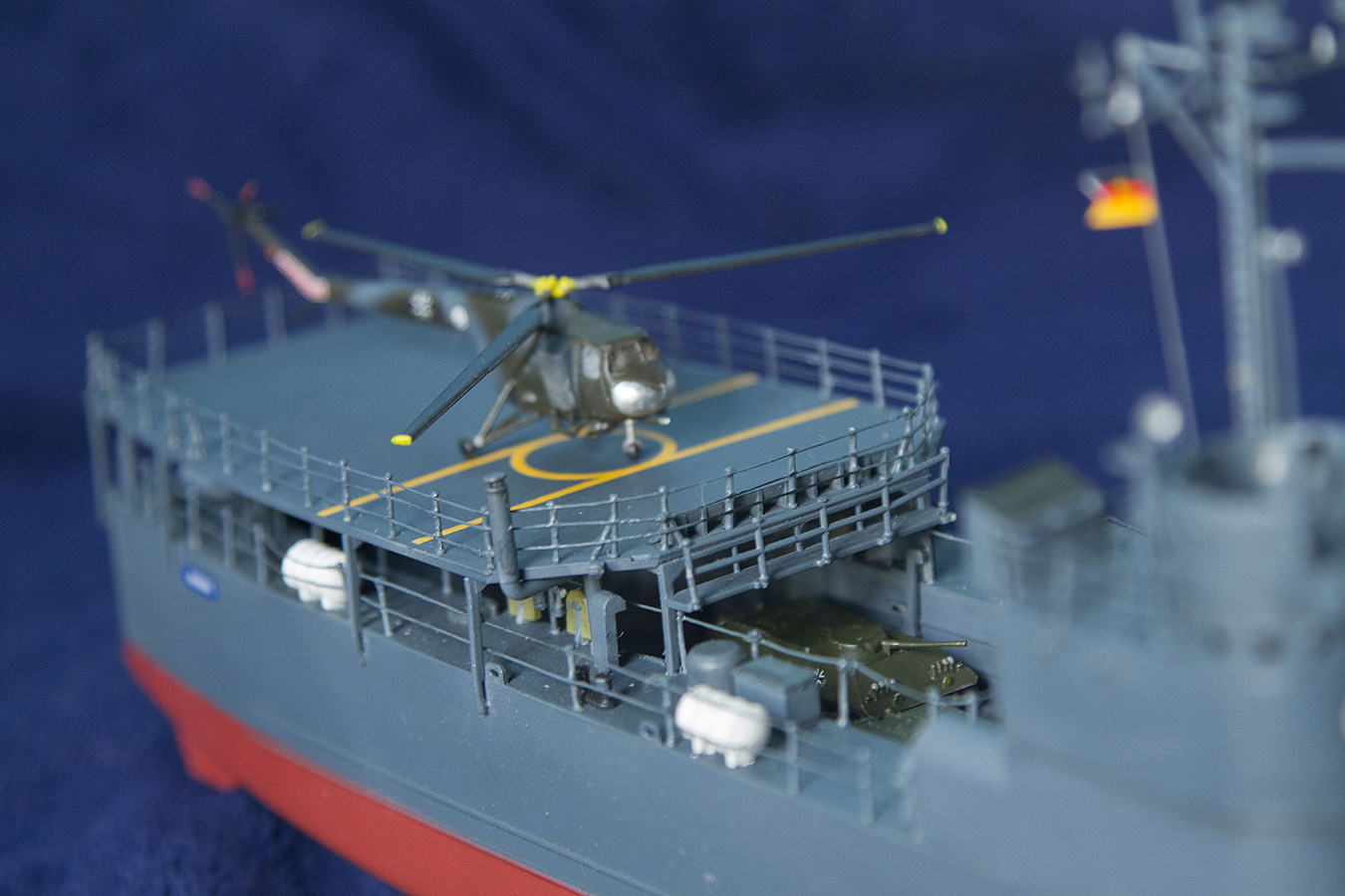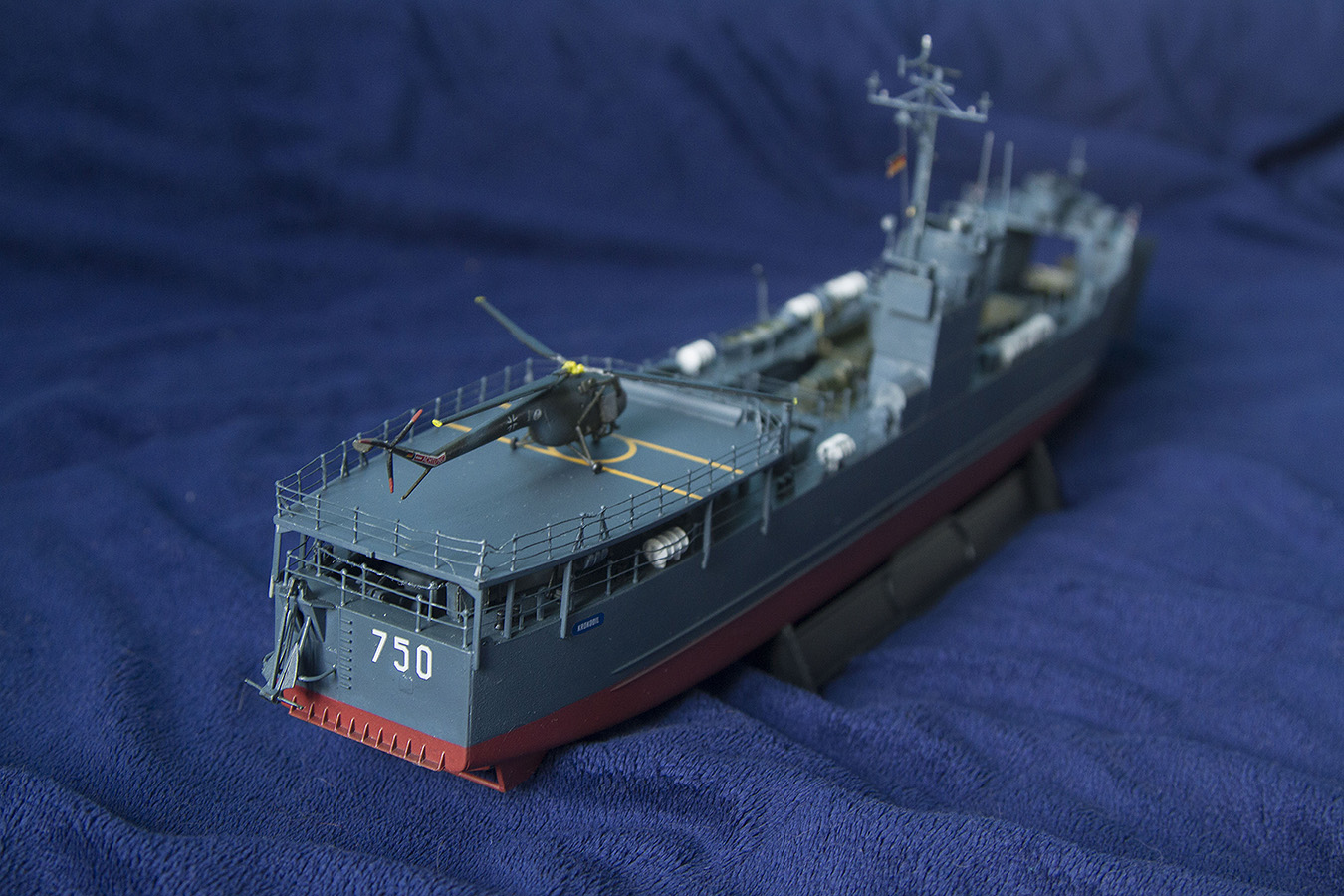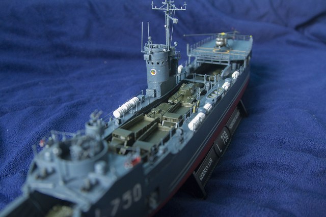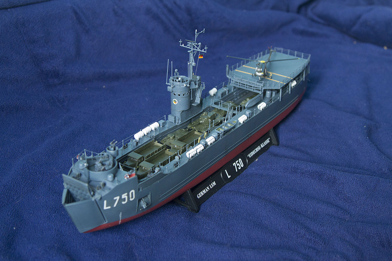 Данная сборная модель от Revell состоит из 485 пластиковых деталей, она представляет собой уменьшенную копию немецкого десантного корабля Eidechse-Klasse, переданного Германии от ВМС США в 1958 году. Собранная модель в длину достигает 44 см, на ее борту есть открытая палуба со стоянкой для военной техники, а также вертолетная площадка.