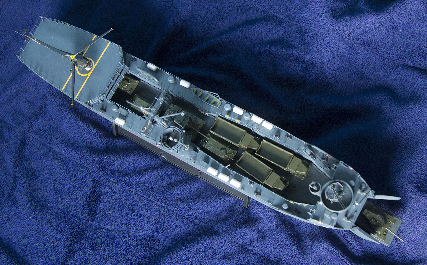 Да тут не мелкие придиризмы...Грубоватая работа,залито краской безбожно,лопасти у гелика на стоянке обвисают довольно сильно,леера, а точнее их стойки,даже облой не убран и сдвиг штампа не замаскирован,трапы никакие....Нет моего одобрямса.Масштаб-то серьезный.