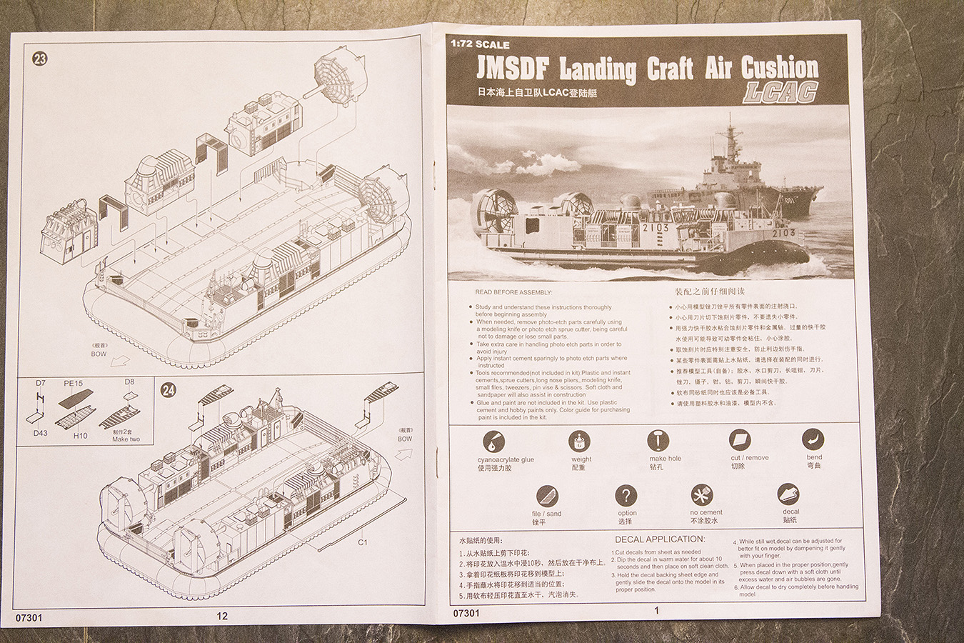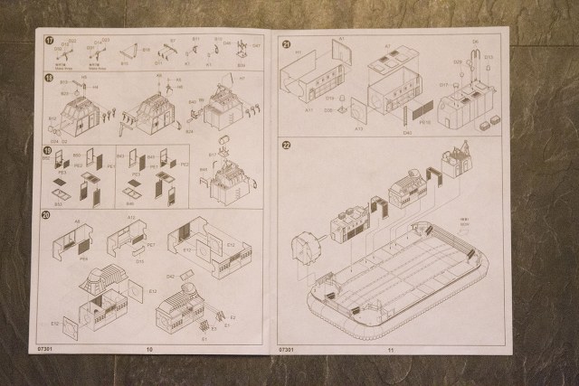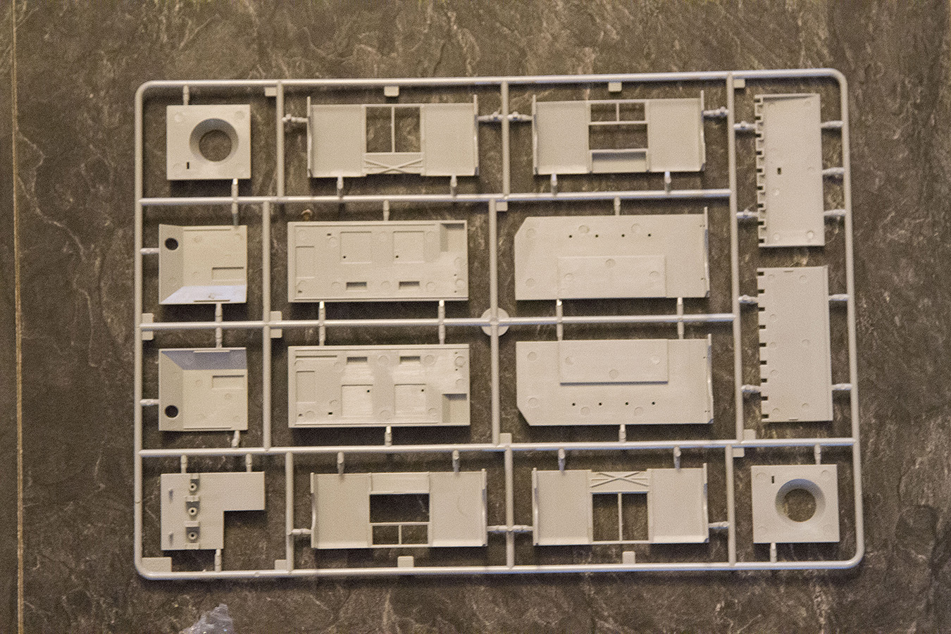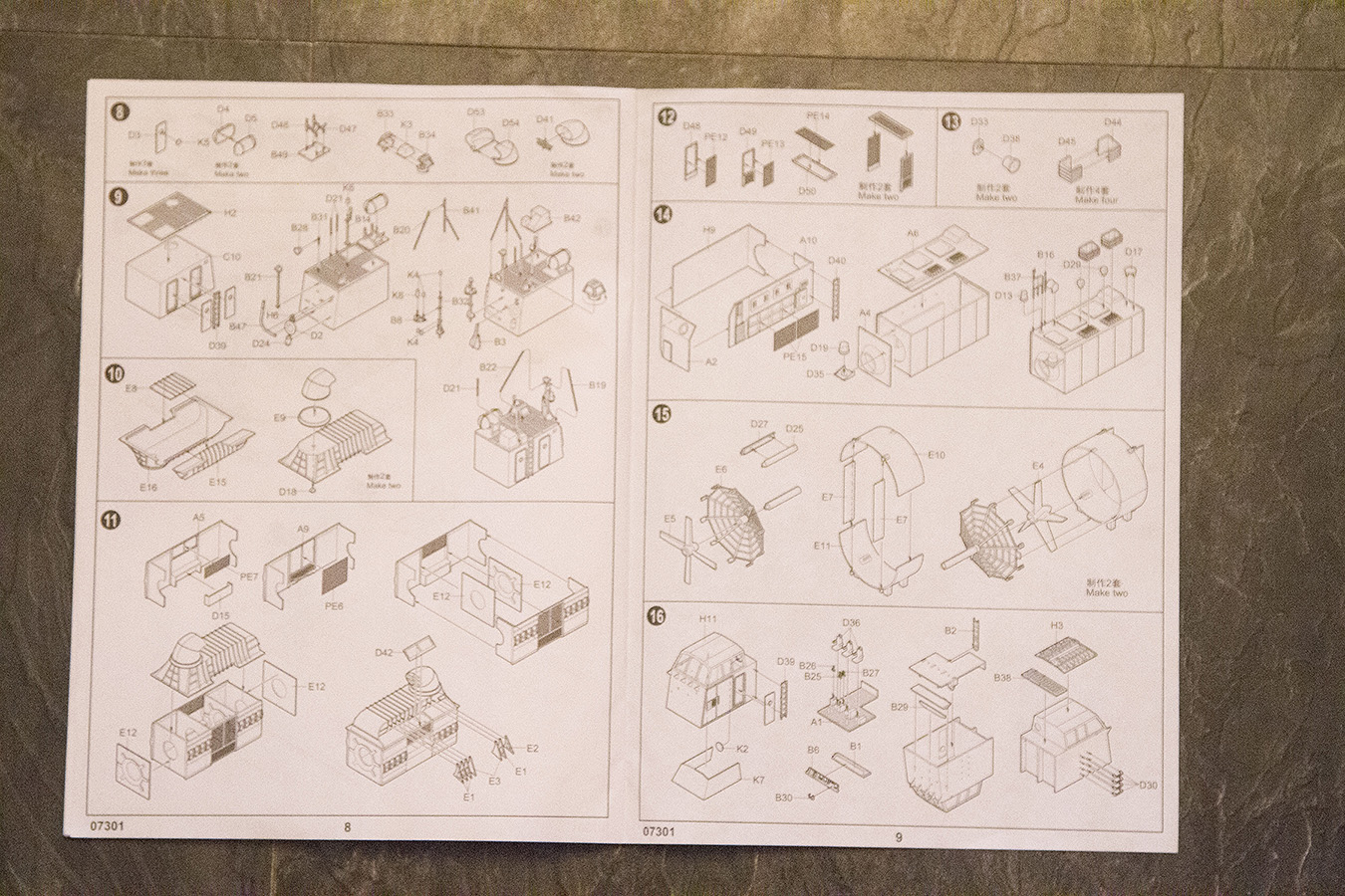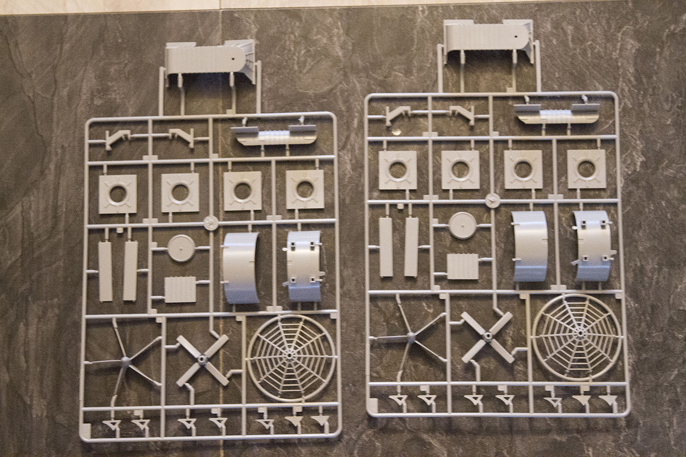 Впервые купил Trumpeter. Любопытно было распаковывать. Пластик весь отдельно в пакетиках, фототиснение в пакете и в коробке, чтоб не поломалось. Резинка в пластике, чтоб сохраняла форму. Корпус в отдельных пакетах, без литья и заусенцев. Декали тож в отдельном пакете с подложкой. Инструкция и схема окраски отдельно. Это не совсем удобно. Т.е. схема конечно хорошо. Но неплохо бы обозначить и в инструкции т.к. некоторые детали сложно окрашивать после приклеивания и их можно пропустить. Rewellовскою цветную инструкцию считаю совершенной.