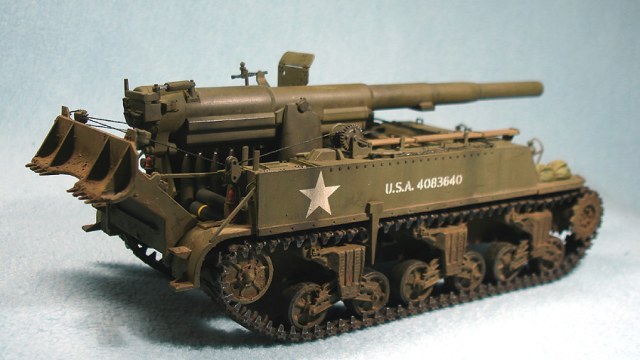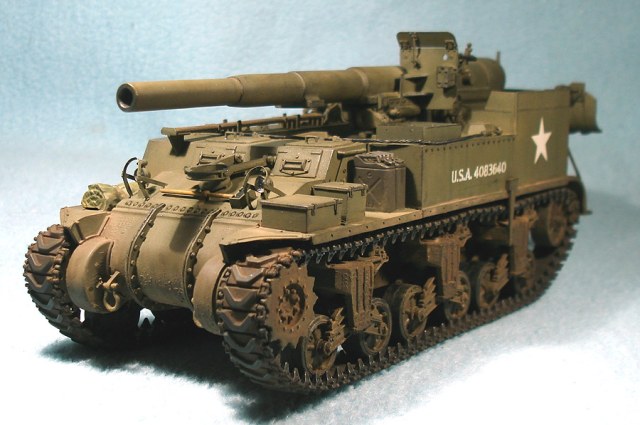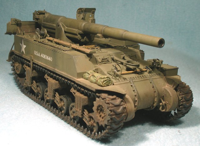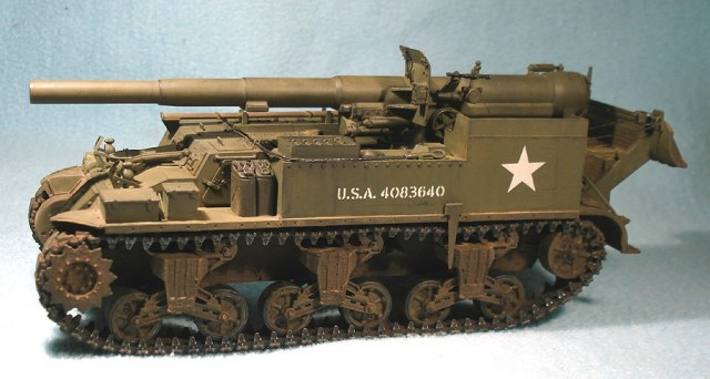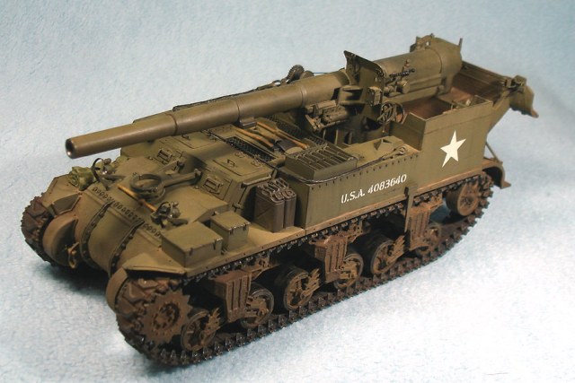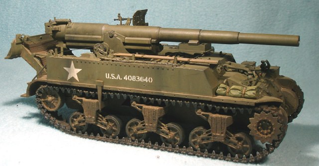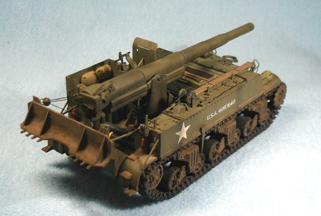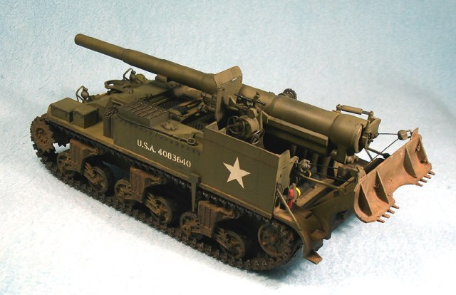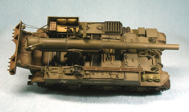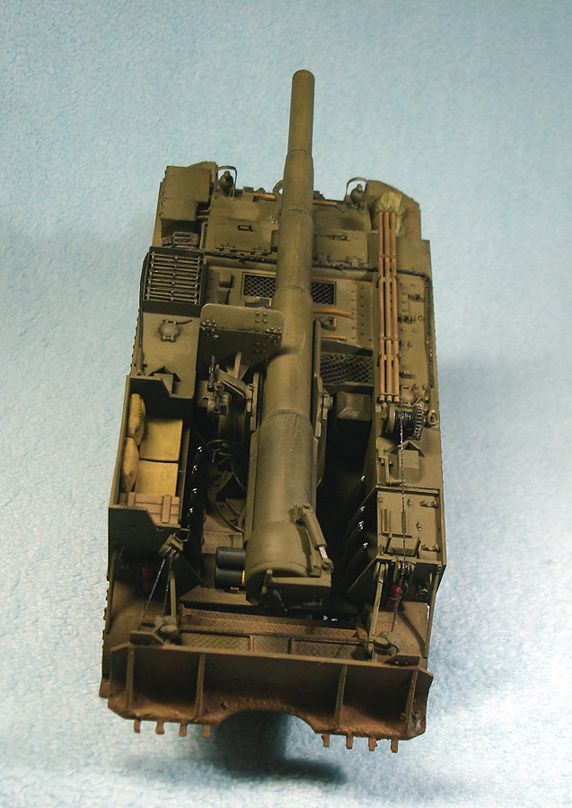 Модель от «Академии» с минимальными доработками. Снаряды заменил на смоляной набор от Legend, контейнеры для зарядов сделаны из толстой пластиковой вязальной спицы, добавил металлический трос. Переделал ящик для грунтозацепов, сами грунтозацепы – из набора М10. Гусеничные ленты – ТАМИЯ. Стандартно использовал свинцовую фольгу, жесть, проволоку.