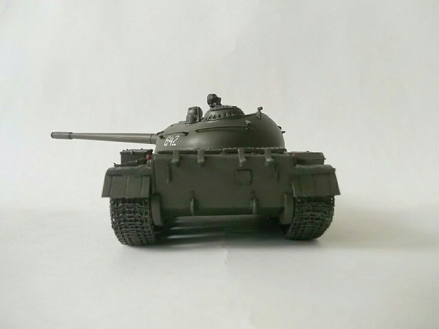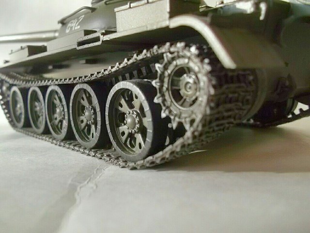 Траки одеты не правильно, натяжение отсутствуют, на настоящем танке, с таким натяжением, траки со звёздочки слетают на первом повороте. Сильно видно шагрень и волосы по модели. А вообще такие модели надо очень много дорабатывать до необходимого качества по мат. части. А если просто на полку, то нормально.