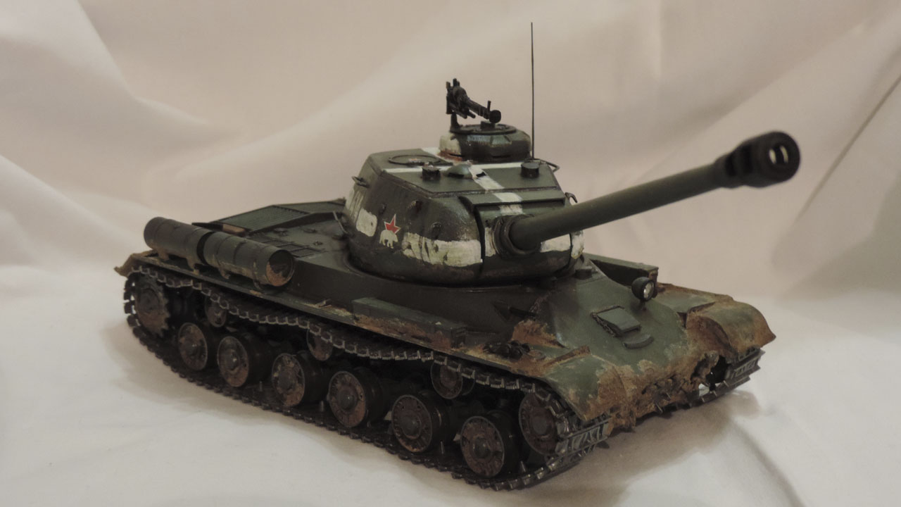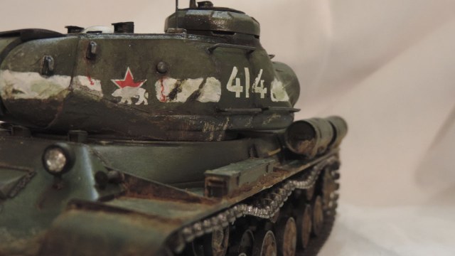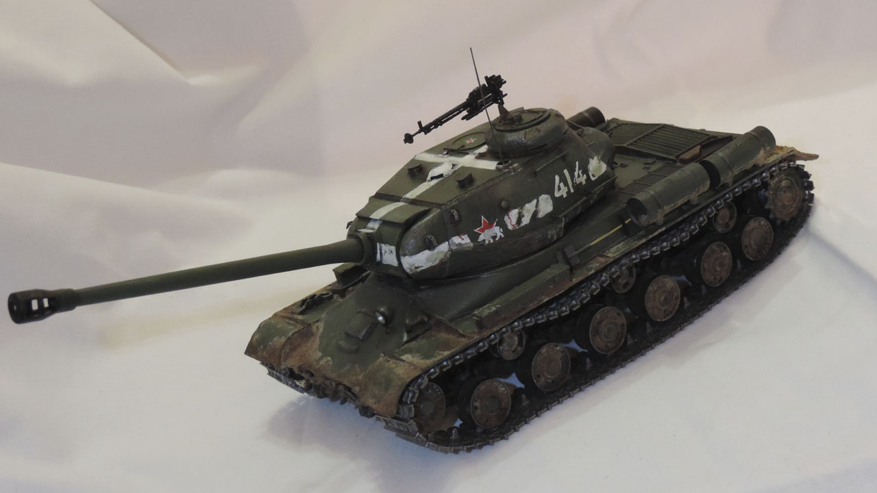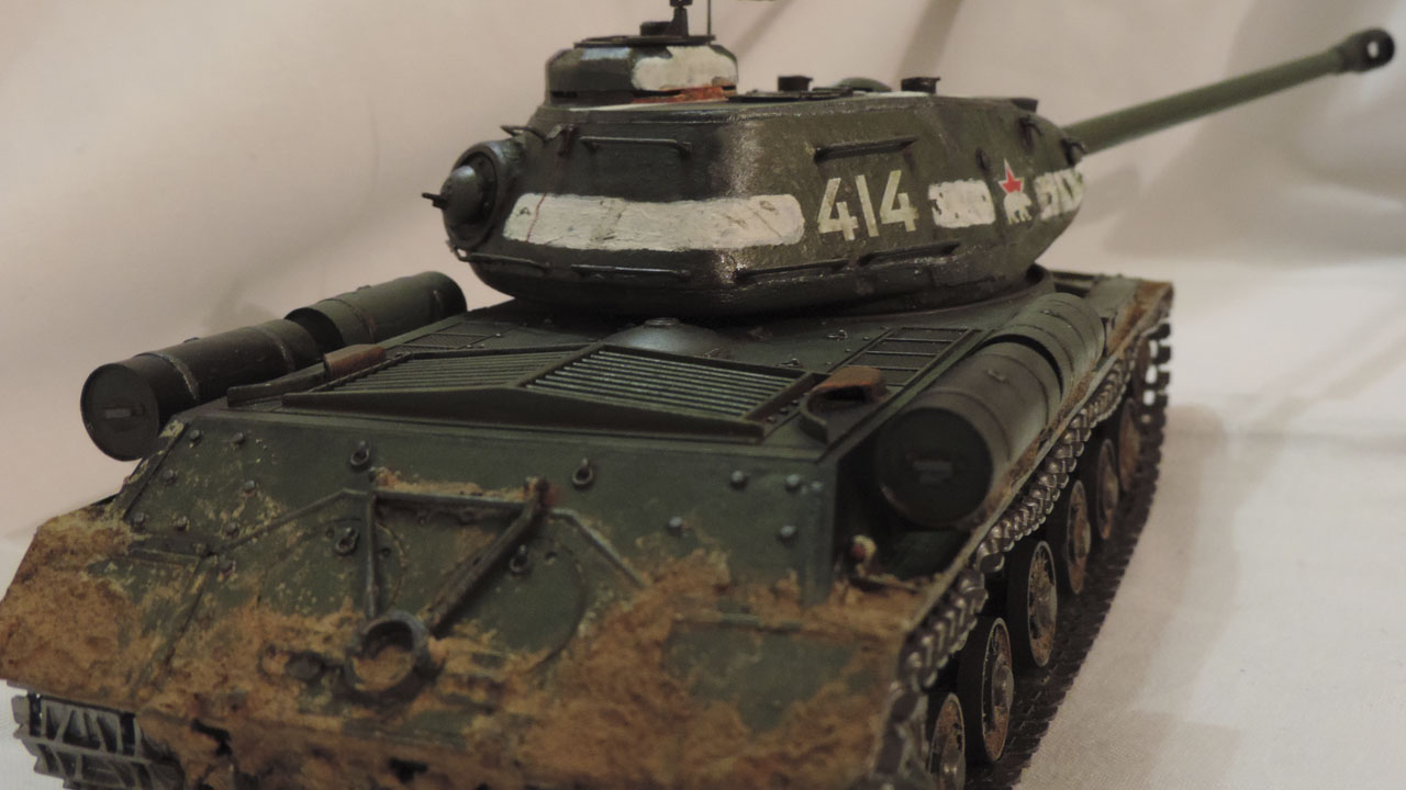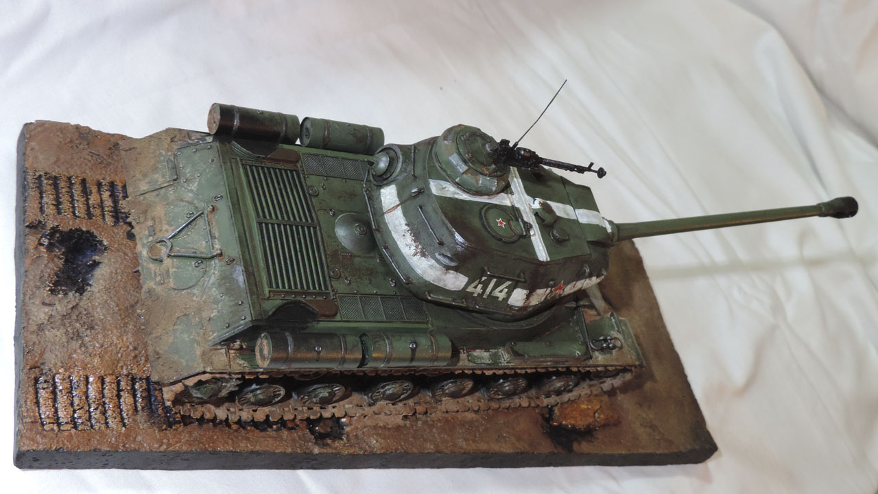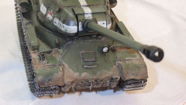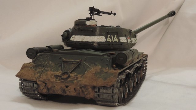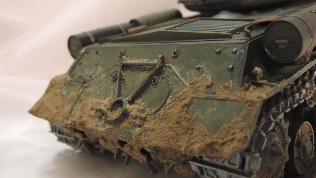 У Вас на модели гусеницы установлены по разному... По моему мнению - с грязью перебор; точнее, она имеет слишком четкие границы и контрастирует с остальным окрасом.