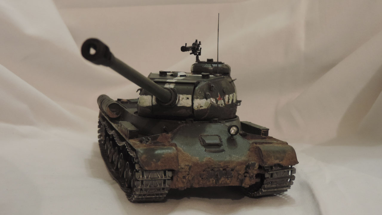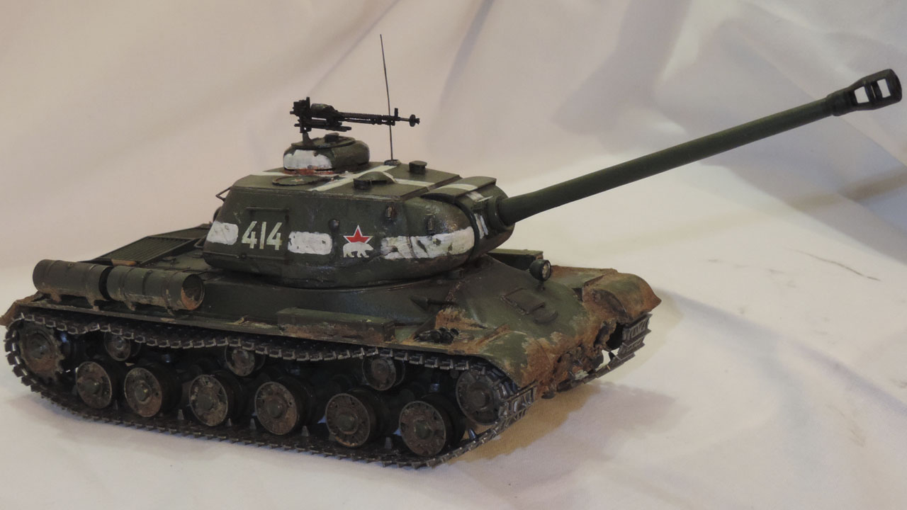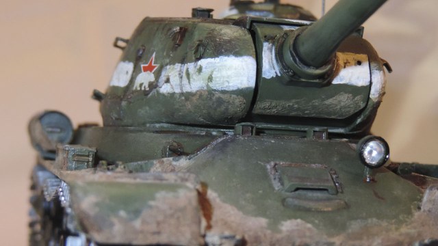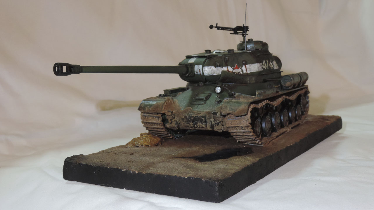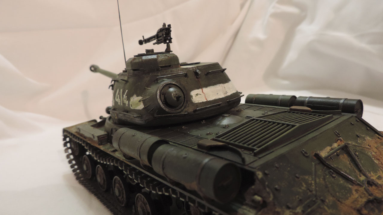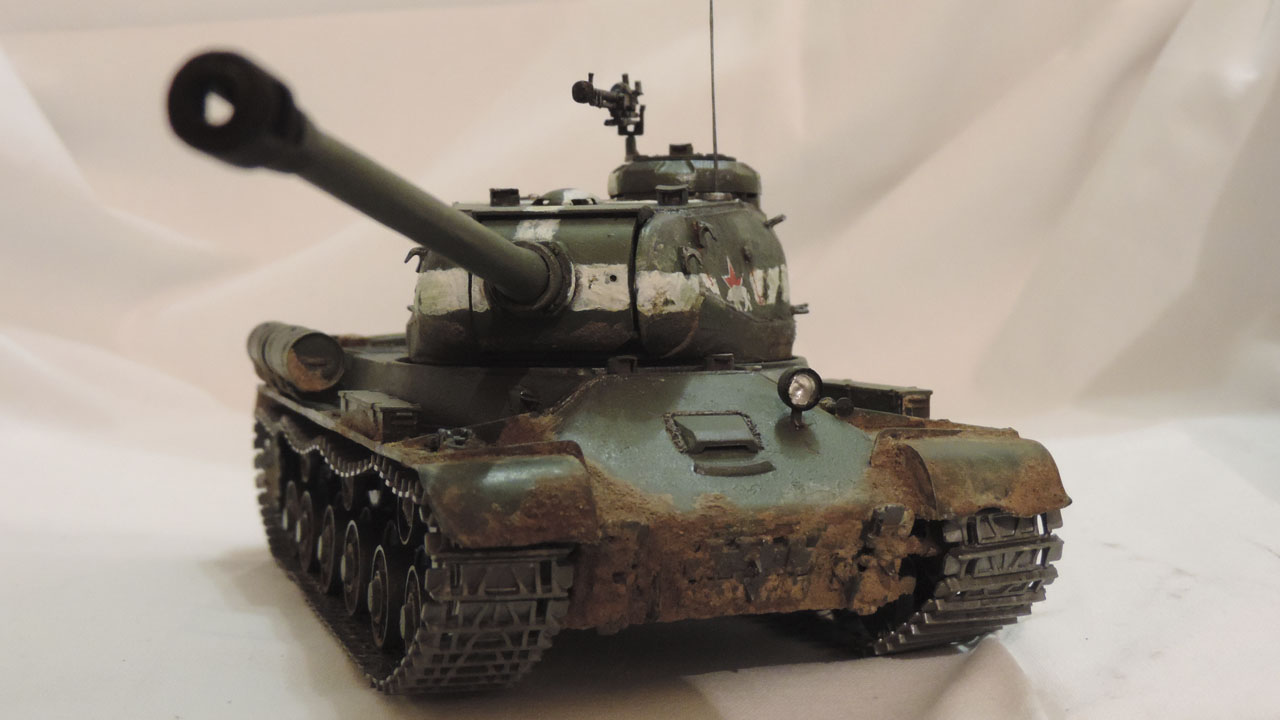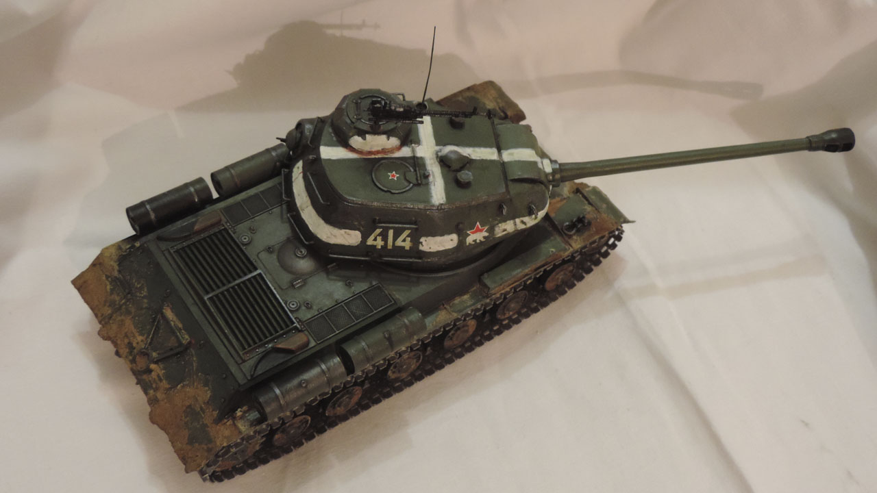 У Вас на модели гусеницы установлены по разному... По моему мнению - с грязью перебор; точнее, она имеет слишком четкие границы и контрастирует с остальным окрасом.